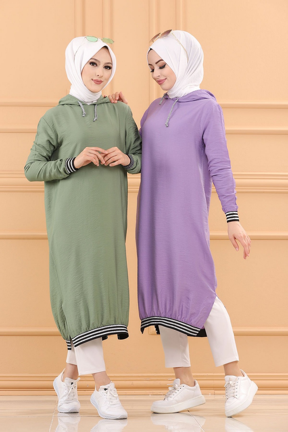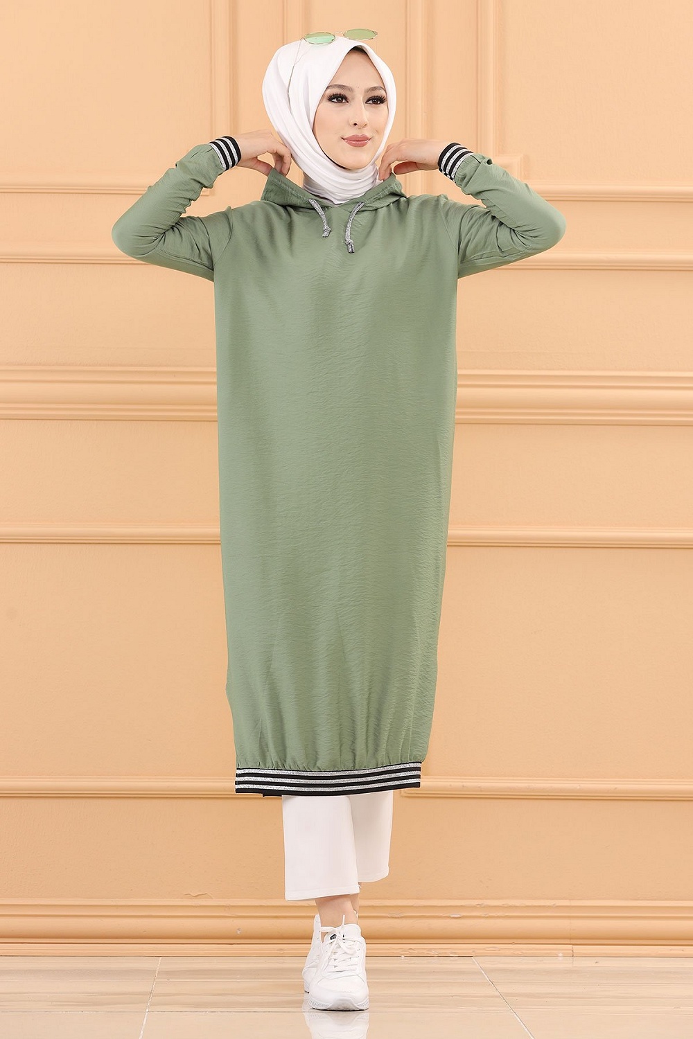 Tunique decontractee avec capuche (Vetement hijab pour femme) - Couleur menthe