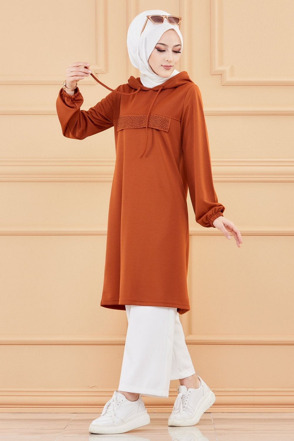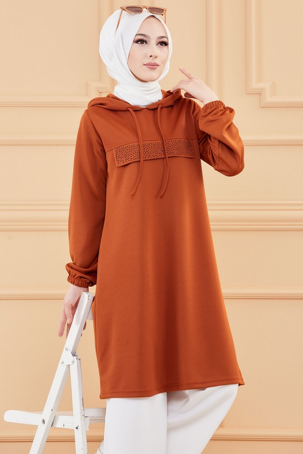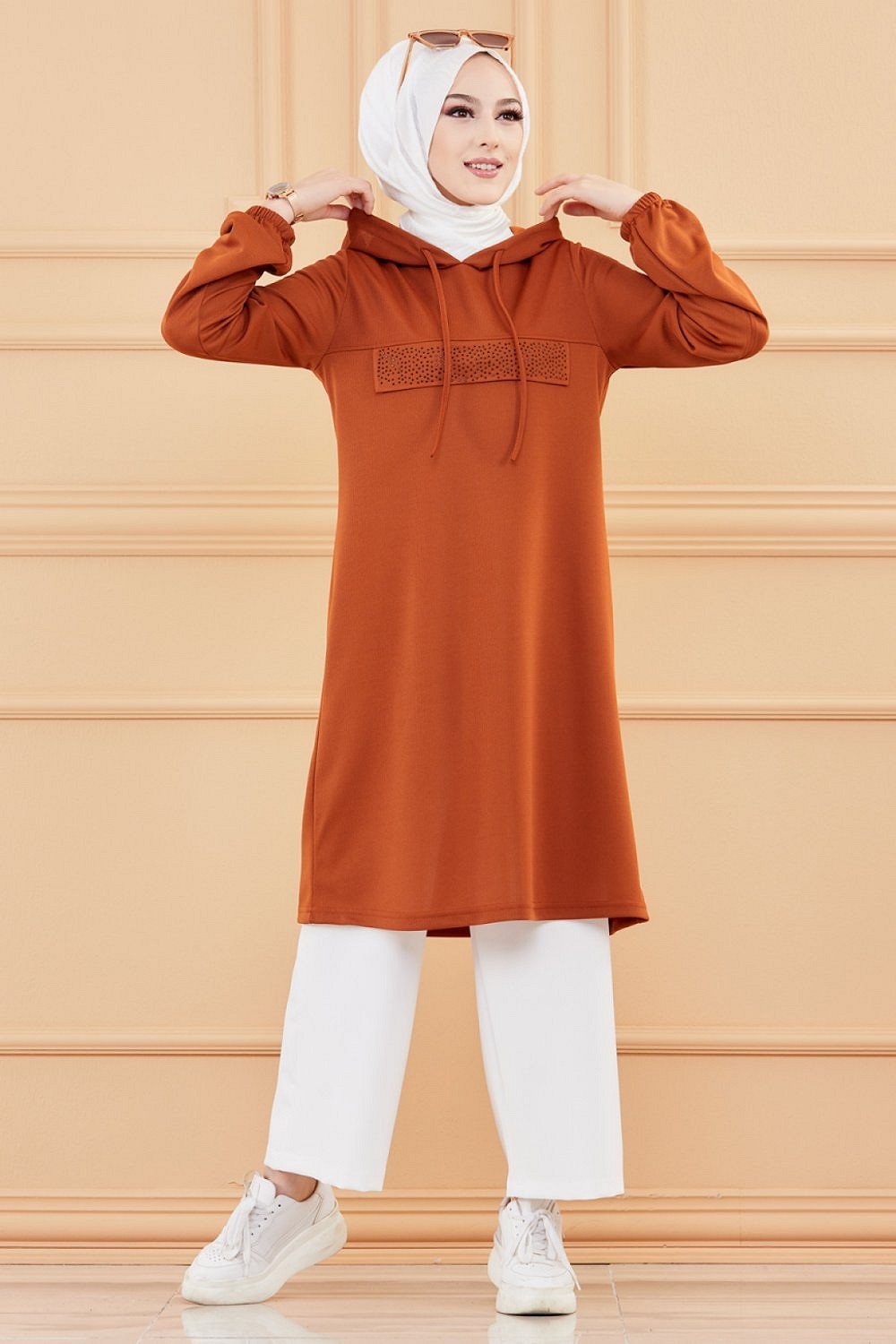 Tunique décontractée avec strass et capuche (Vêtement moderne pour jeune musulmane) - Couleur brique Vetement & Accessoire