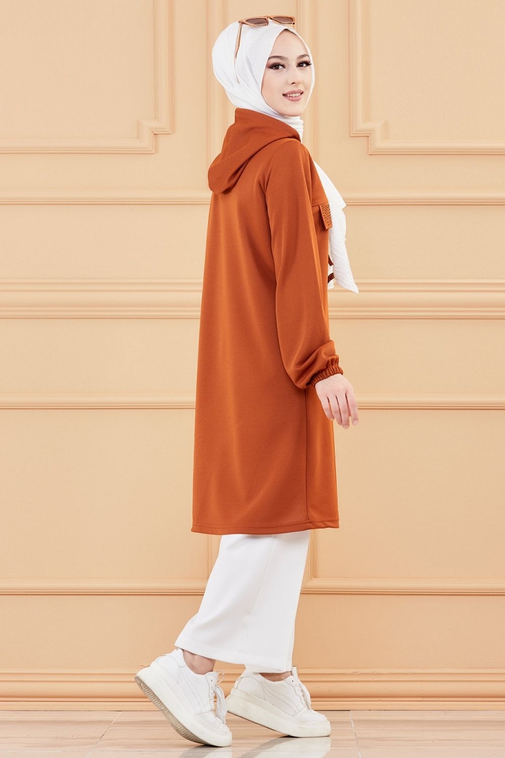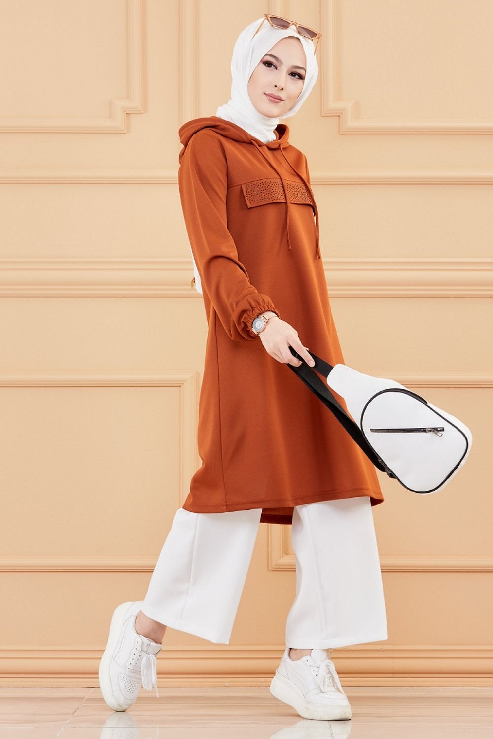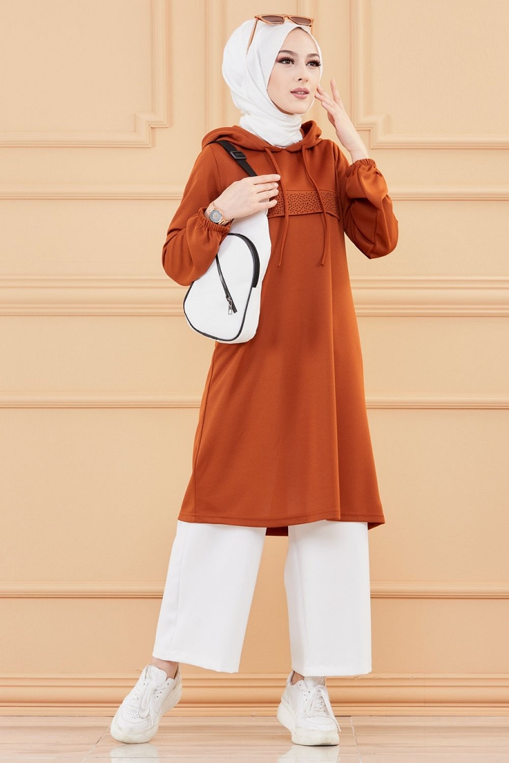 Tunique décontractée avec strass et capuche (Vêtement moderne pour jeune musulmane) - Couleur brique Vetement & Accessoire