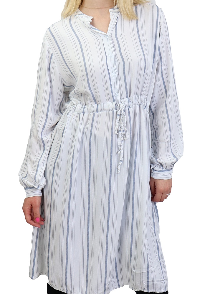 Tunique ample à manches longues, col mao, élastique au dos avec un lien de serrage à la taille, son tissu doux fluide.