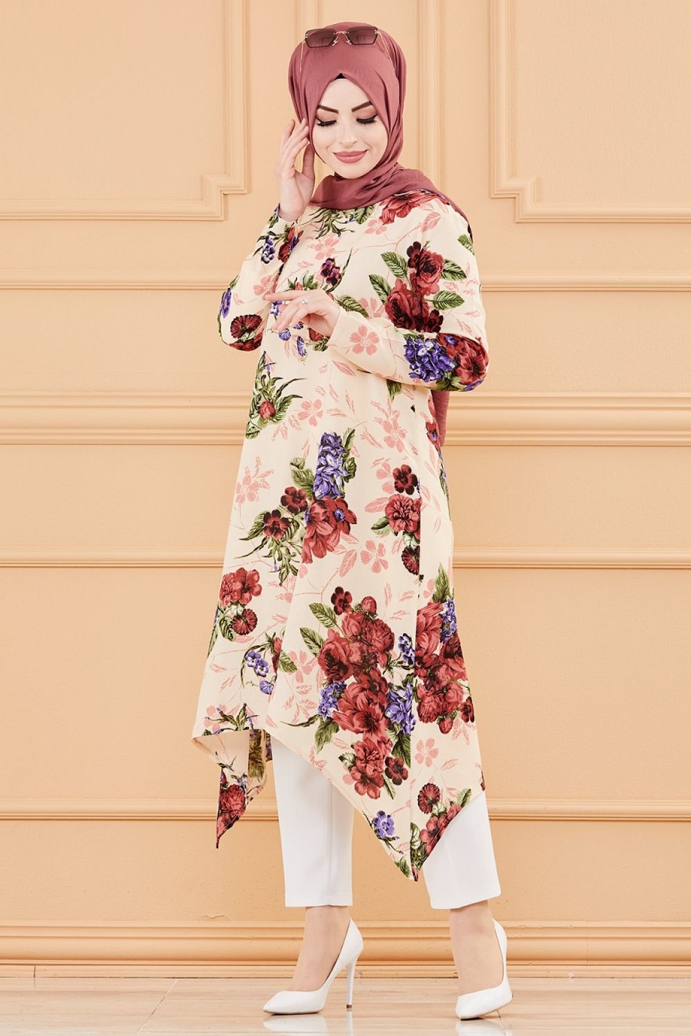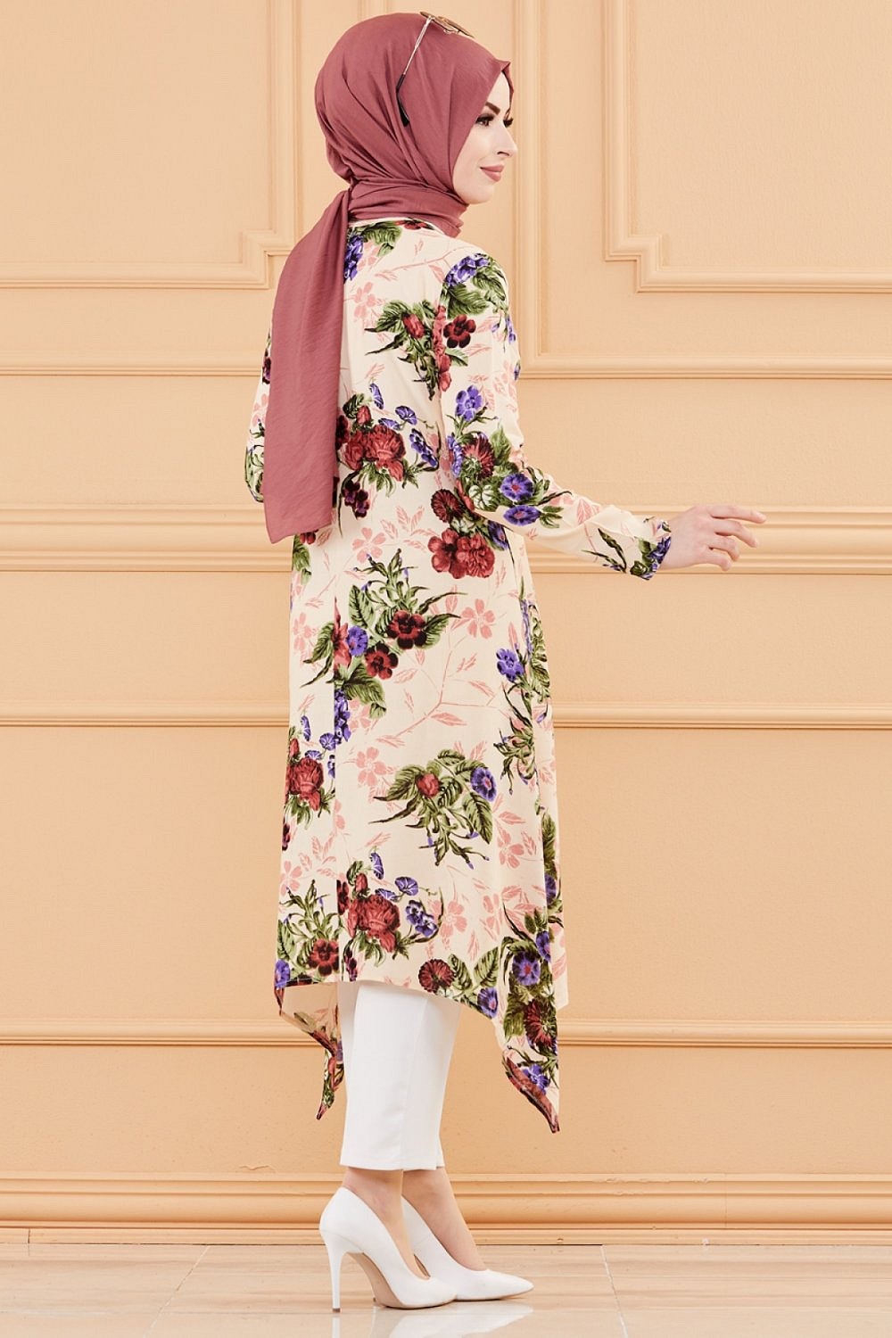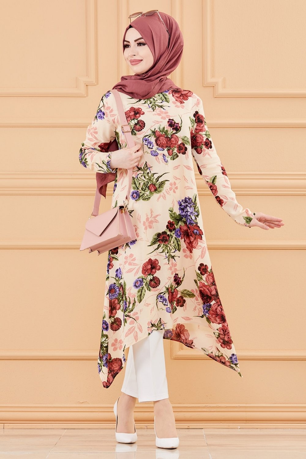Tunique fleurie ample (Vêtement chic pour femme voilée - Nouveauté) - Couleur beige Vetement & Accessoire