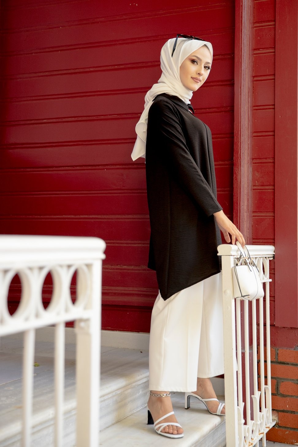Tunique habillee pour femme (Vetement hijab) - Couleur noir