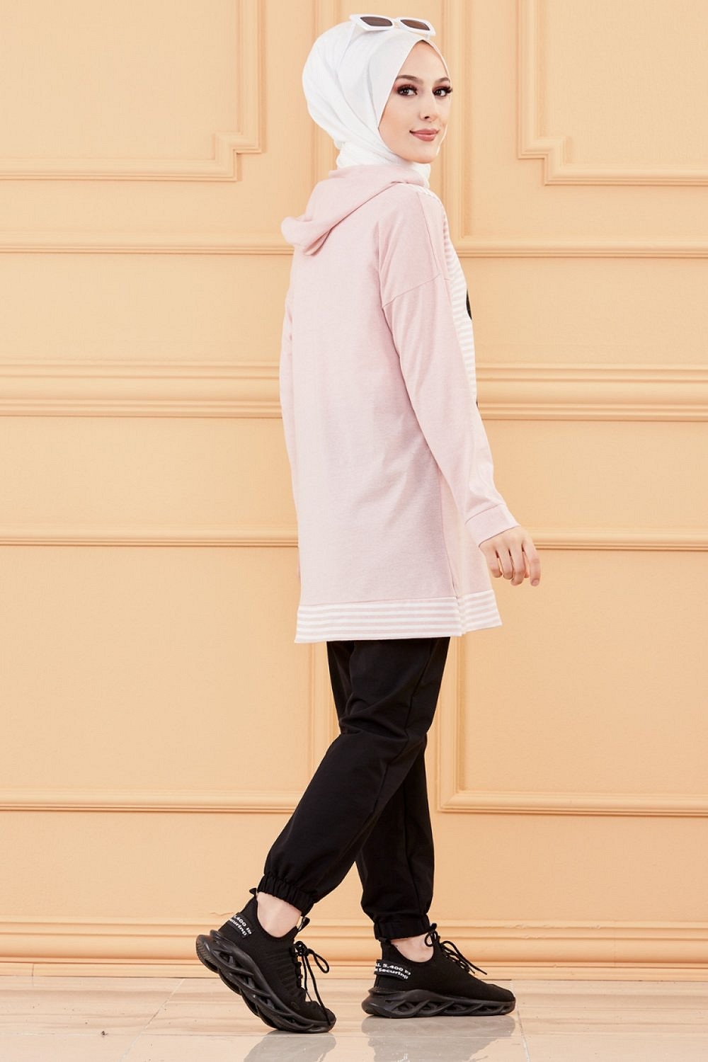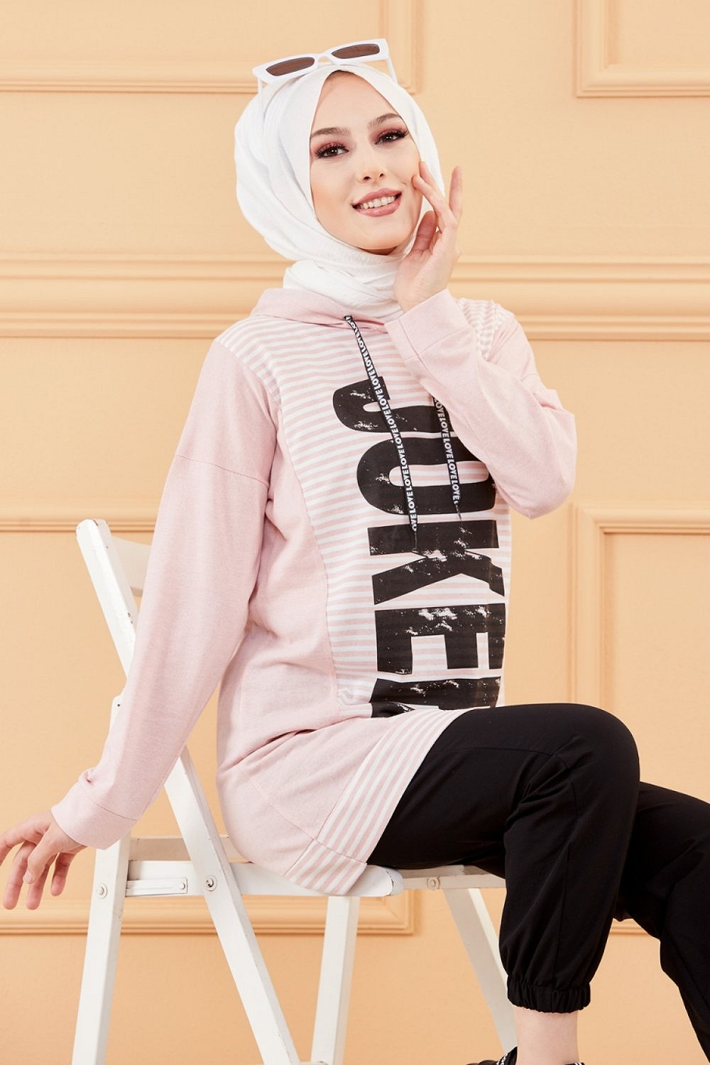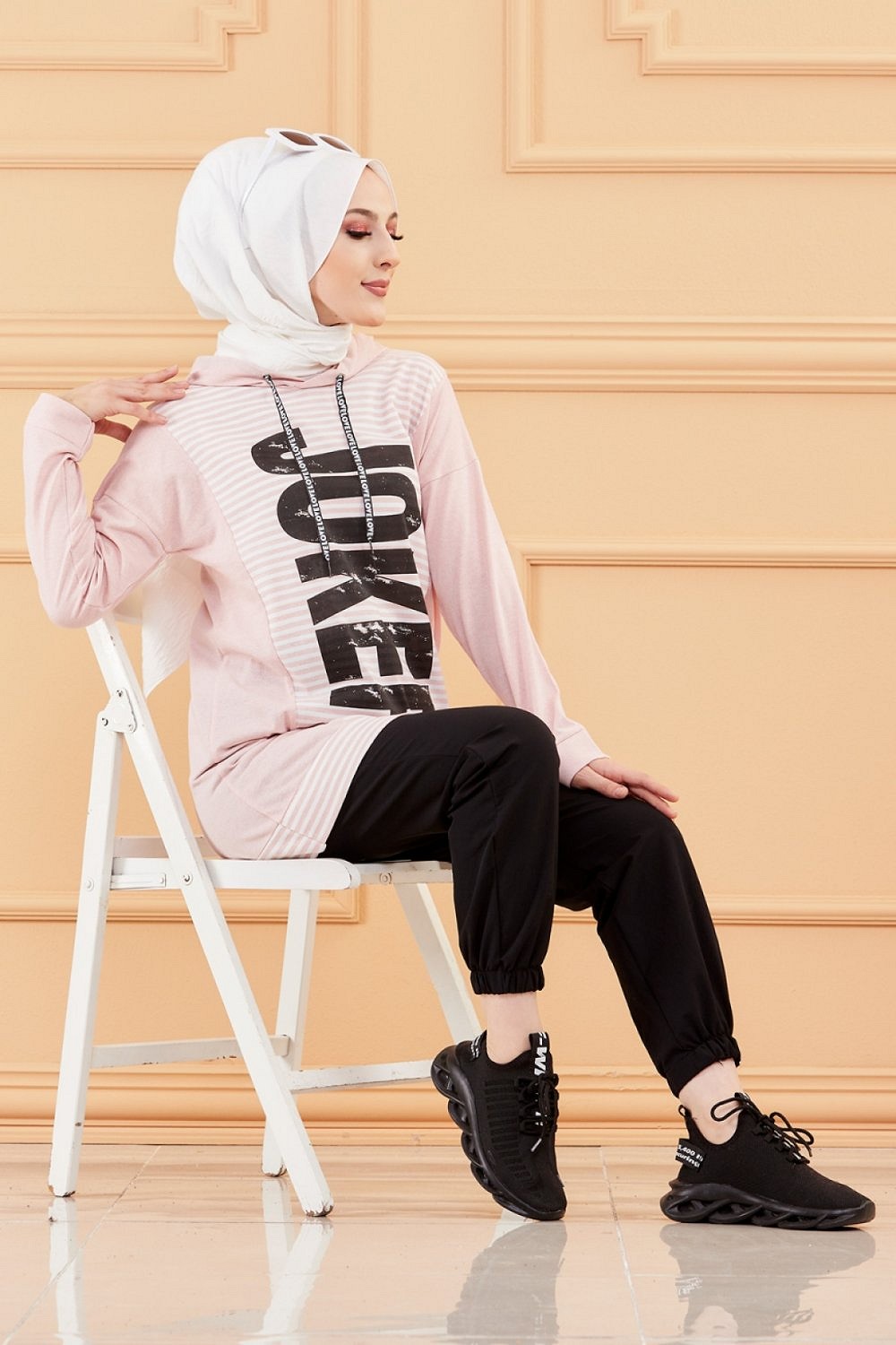 Tunique imprimée Joker - Sweat long à capuche (Mode pour jeune femme musulmane) - Couleur rose poudré Vetement & Accessoire