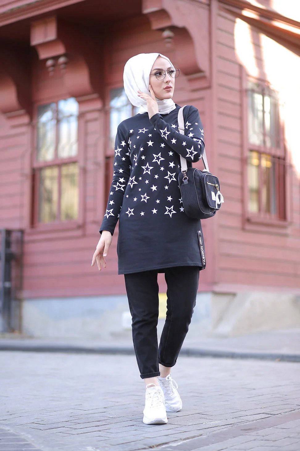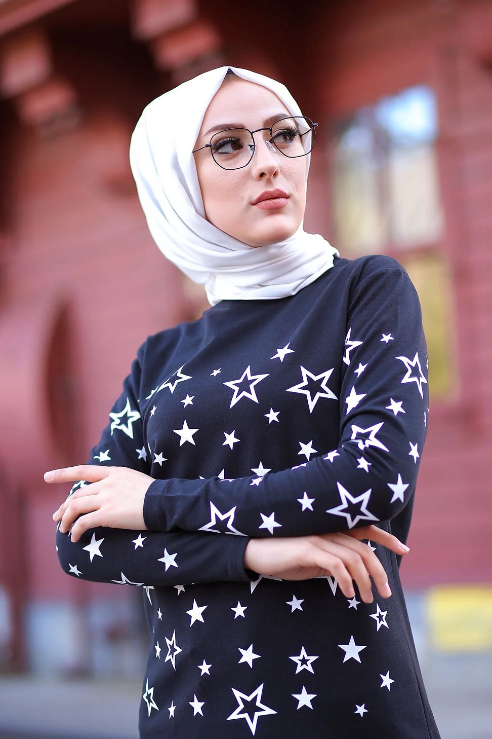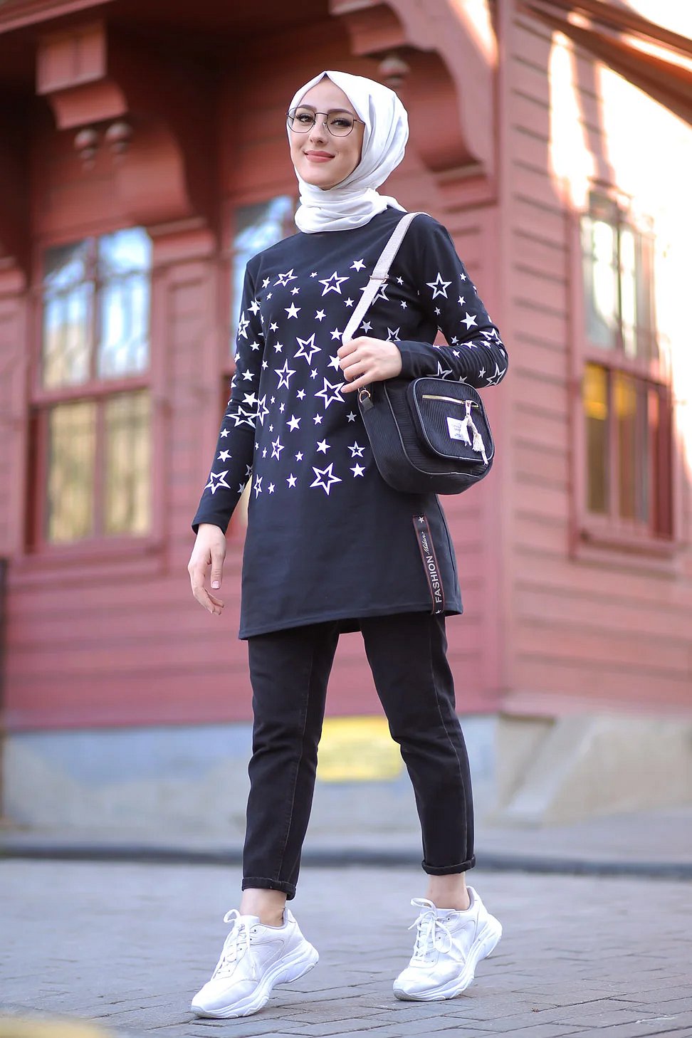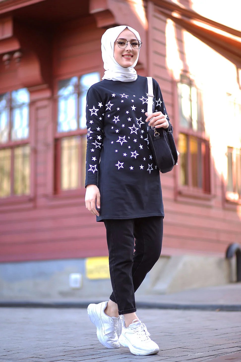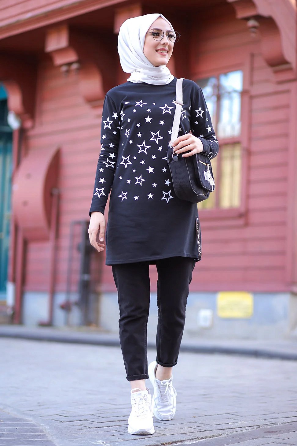Tunique imprimée avec motifs étoiles (Star Modest Fashion- Mode Musulmane pour femme voilée) - Couleur noir Vetement & Accessoire