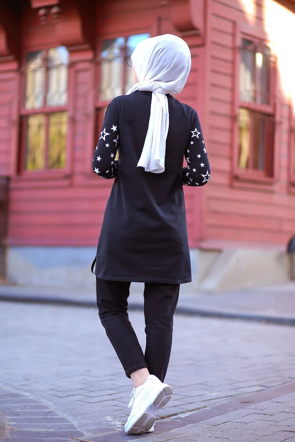 Tunique imprimee avec motifs etoiles (Star Modest Fashion- Mode Musulmane pour femme voilee) - Couleur noir