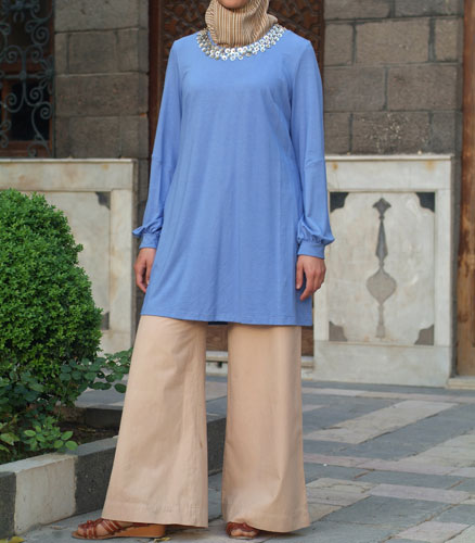 Tunique habillée avec dentelle pour femme (Tenue hijab classique) - Couleur bleu indigo - REF. 36552 (24.90 €)