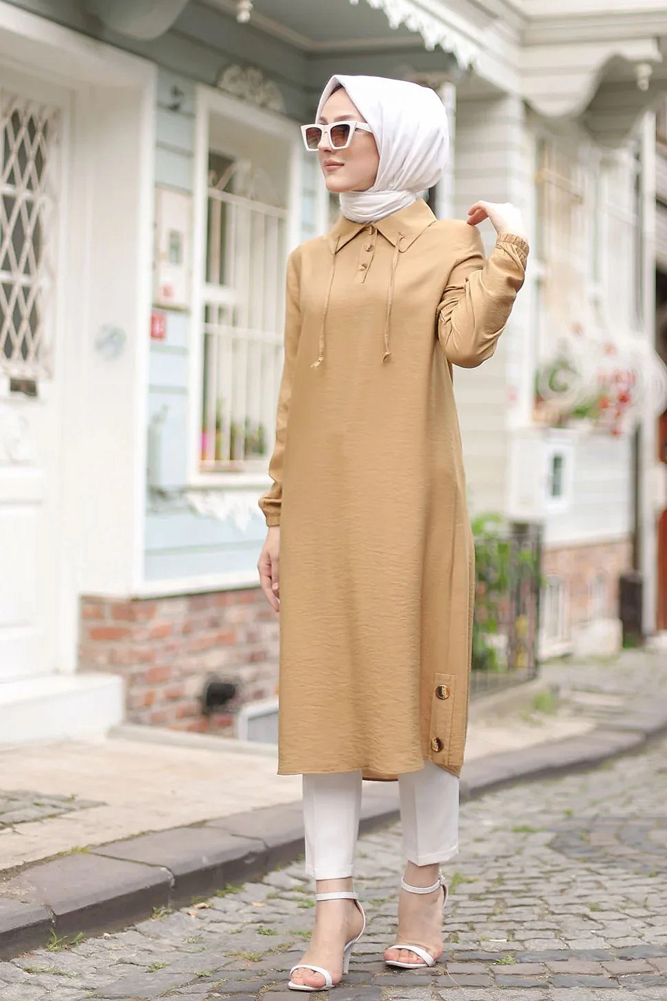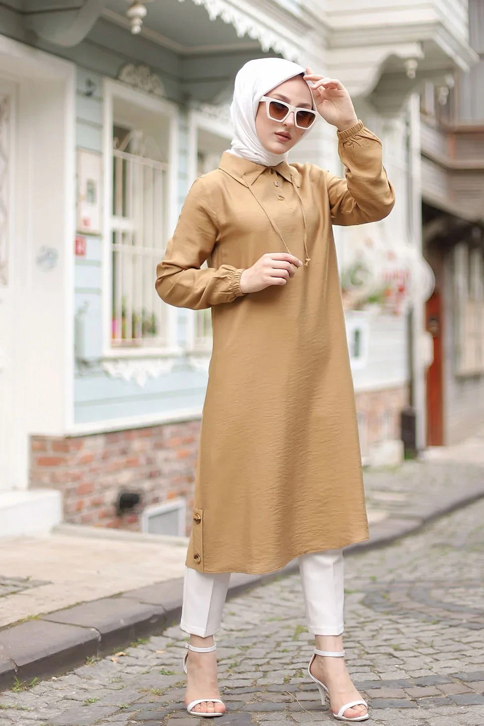 Tunique longue (Tuniques Hijab pour femme voilée) - Couleur camel Vetement & Accessoire