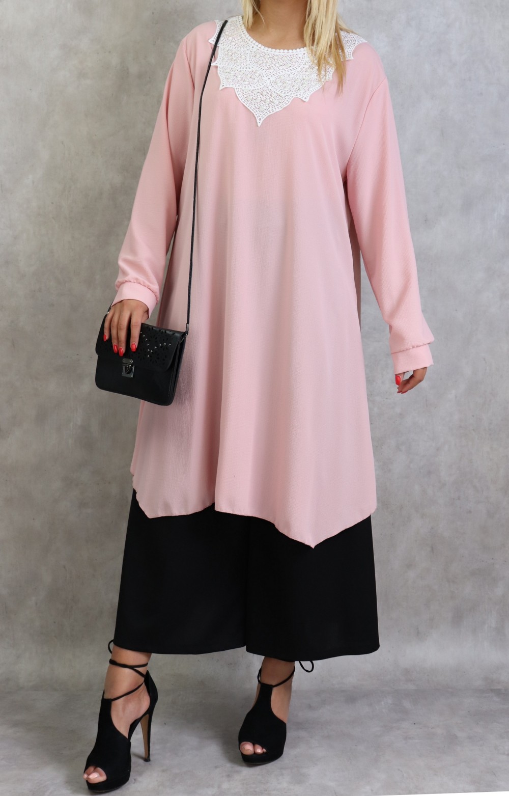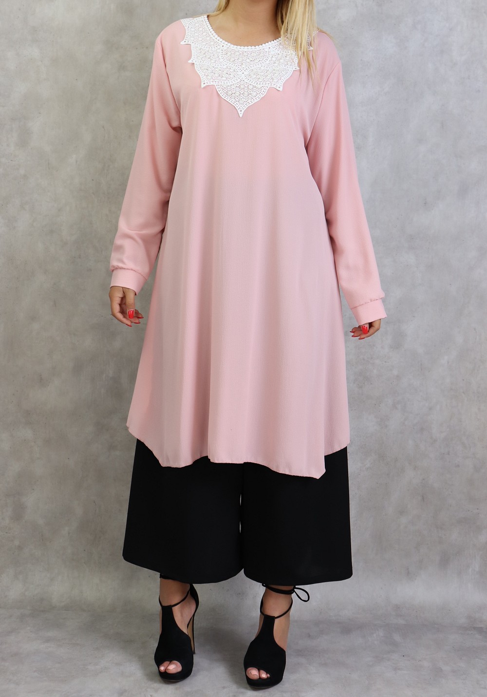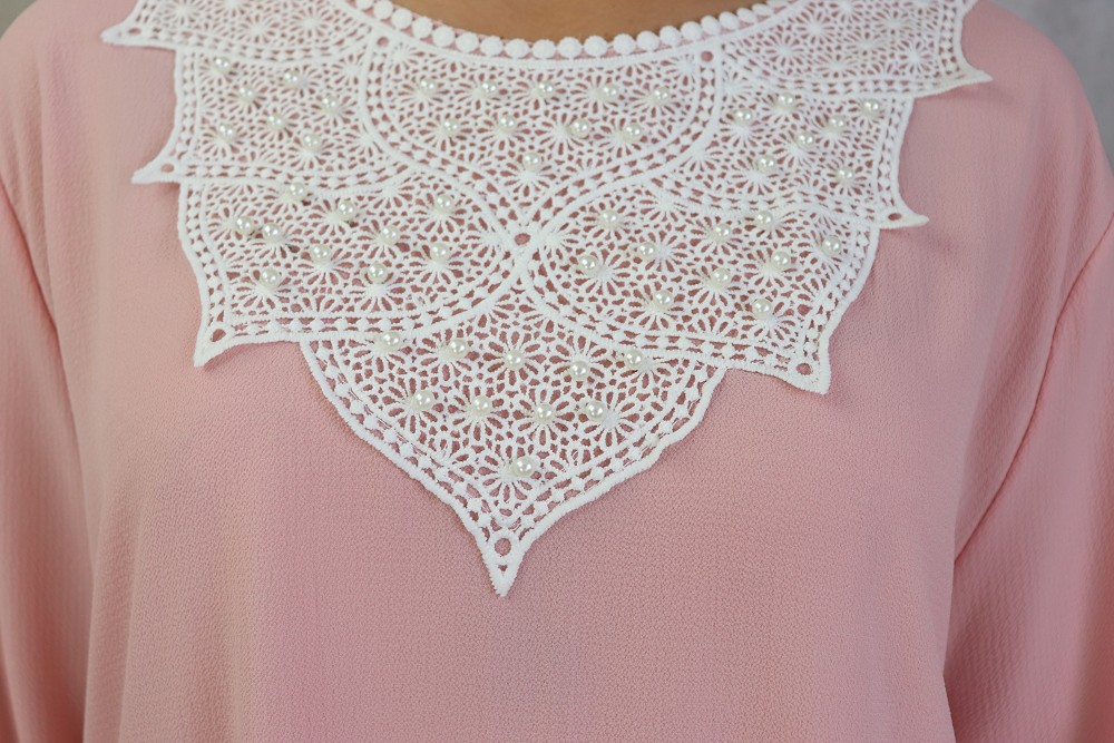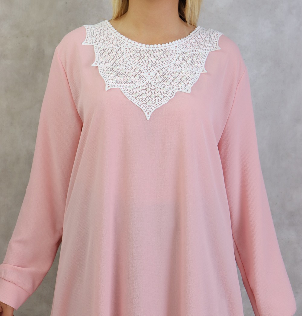 Tunique longue avec broderies et perles pour femme - Couleur rose Vetement & Accessoire
