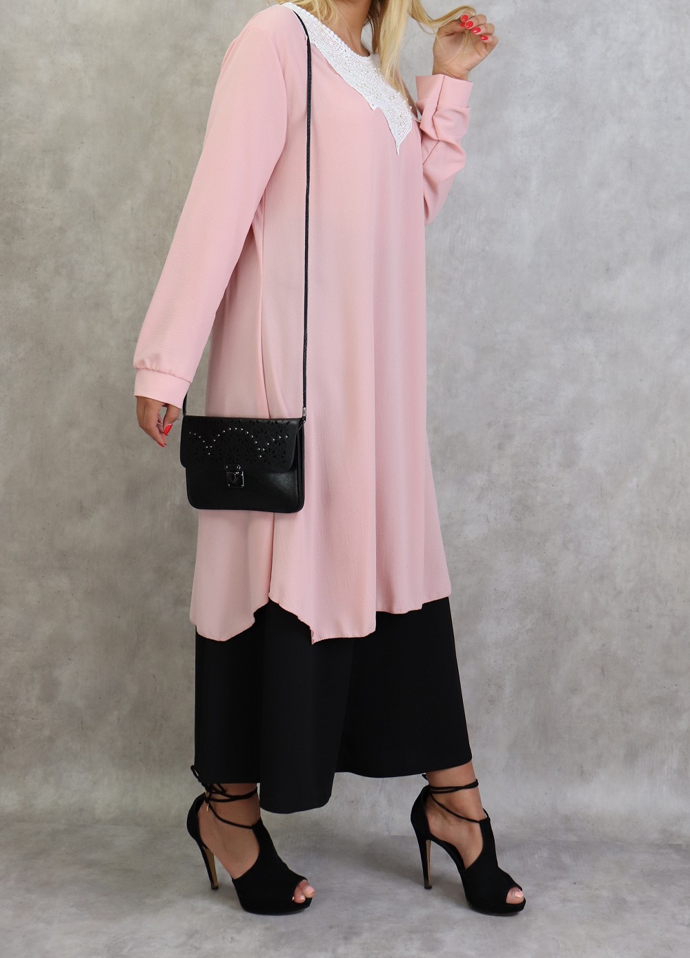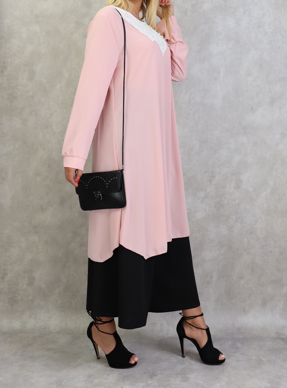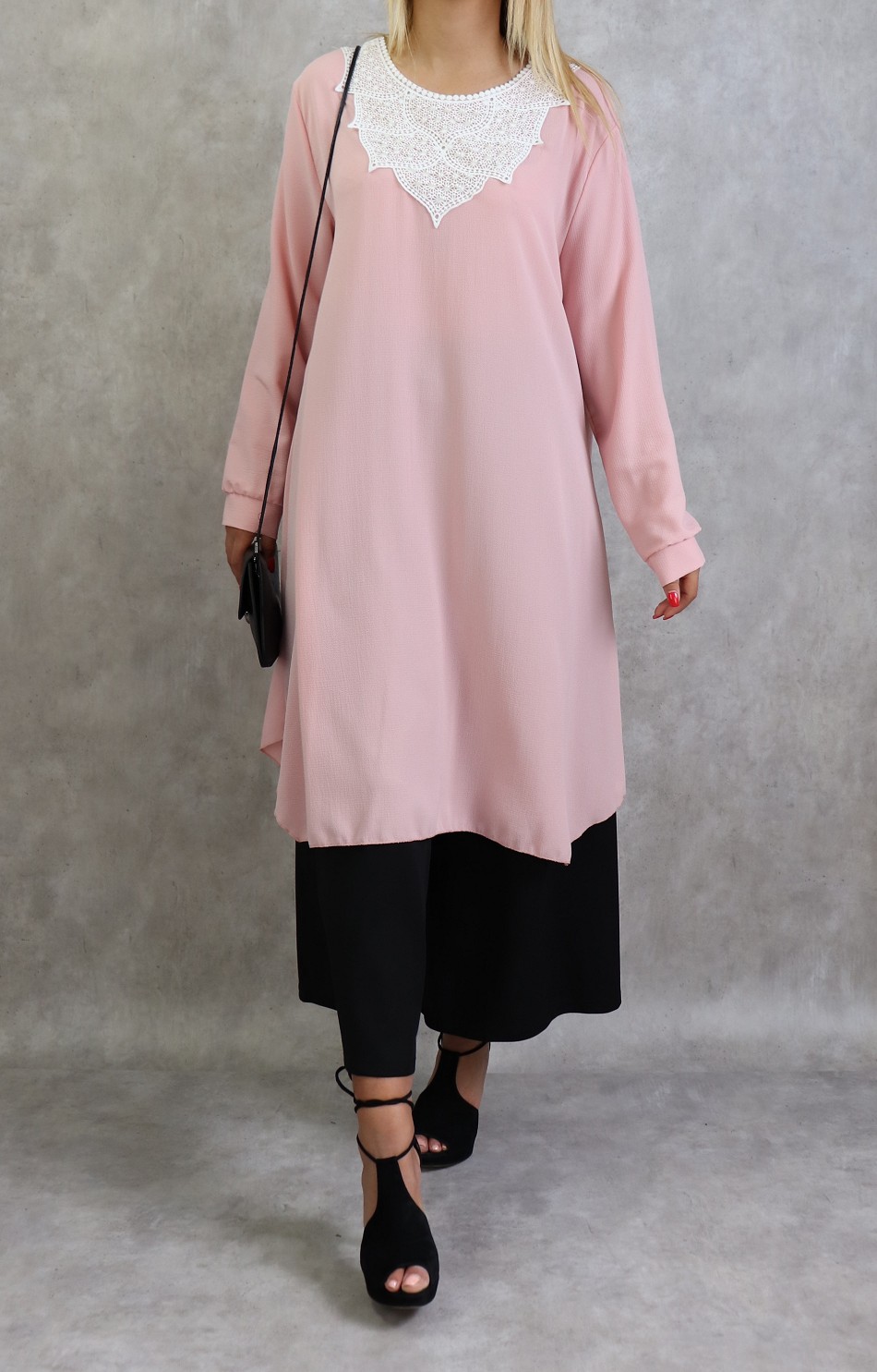 Tunique longue avec broderies et perles pour femme - Couleur rose Vetement & Accessoire