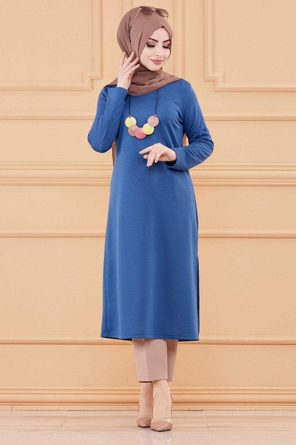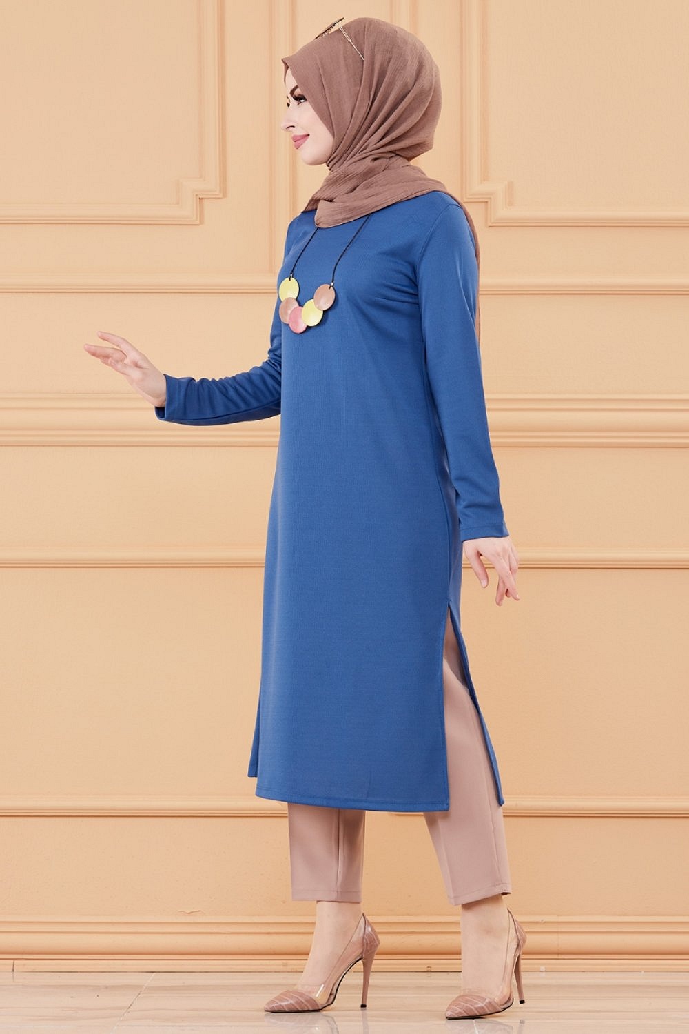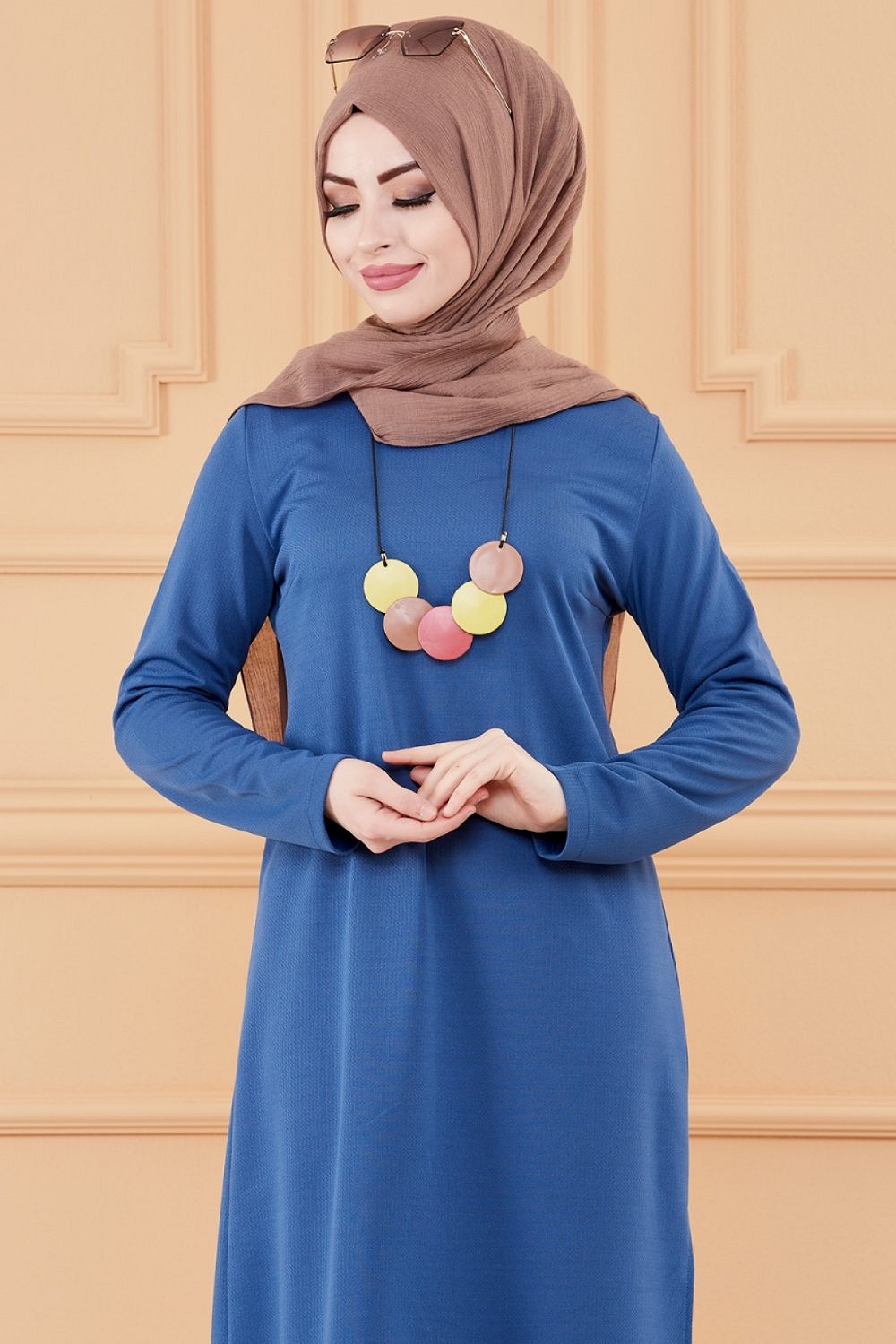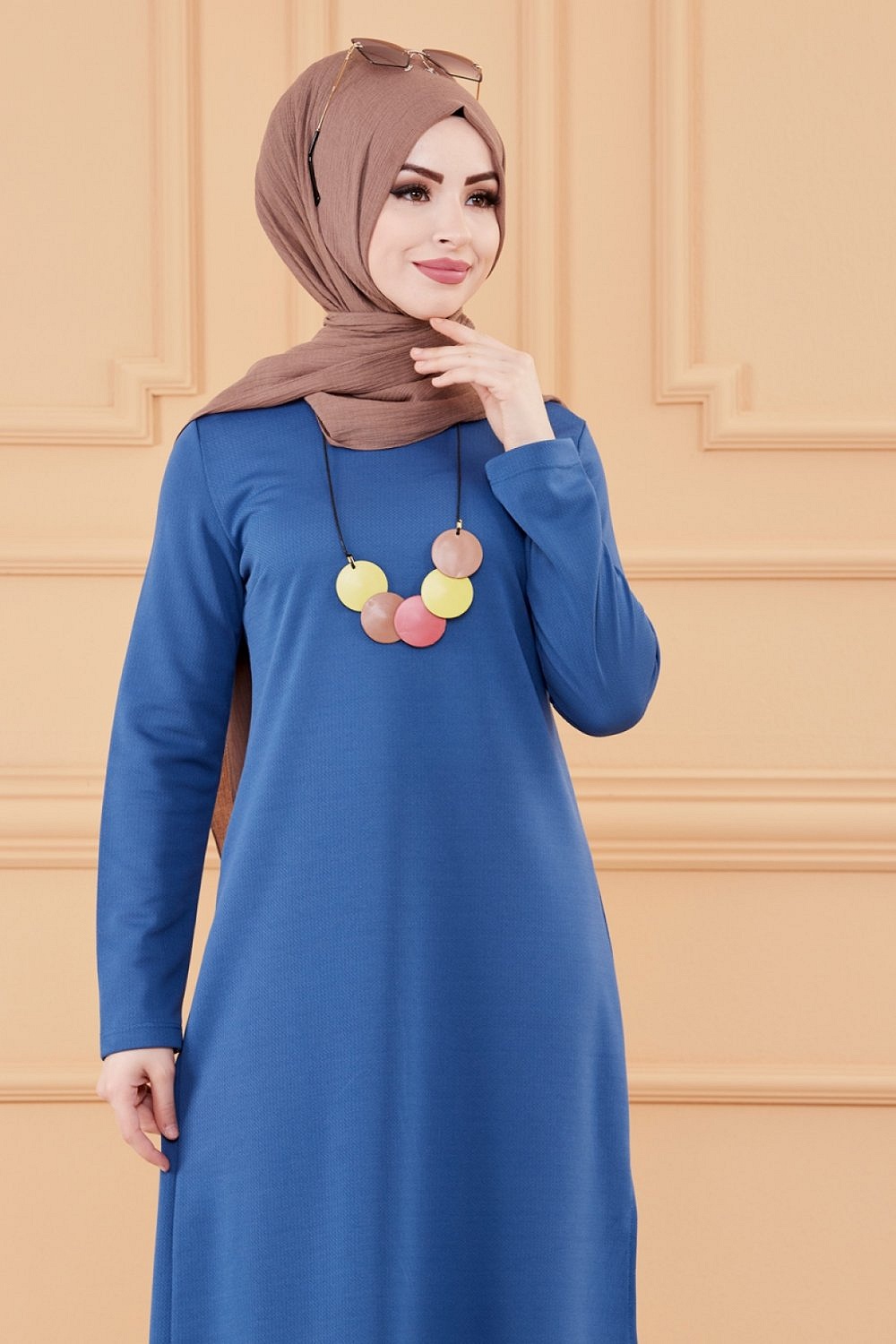 Tunique longue avec collier offert (Vetement hijab femme chic) - Couleur bleu indigo Vetement & Accessoire