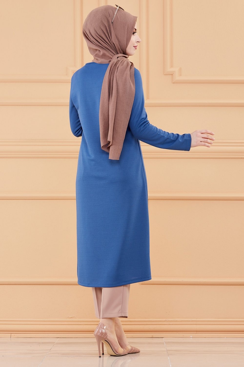 Tunique longue avec collier offert (Vetement hijab femme chic) - Couleur bleu indigo