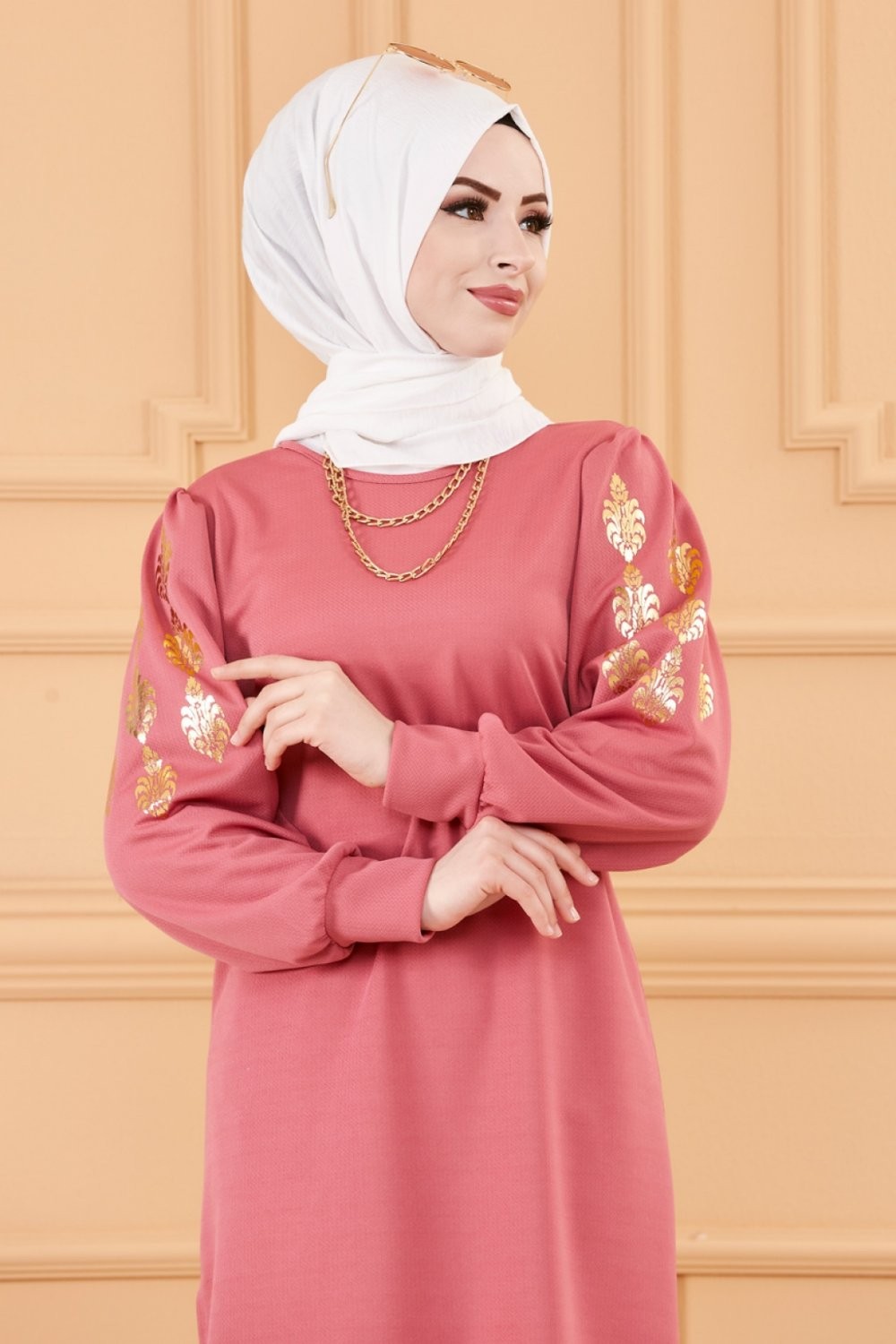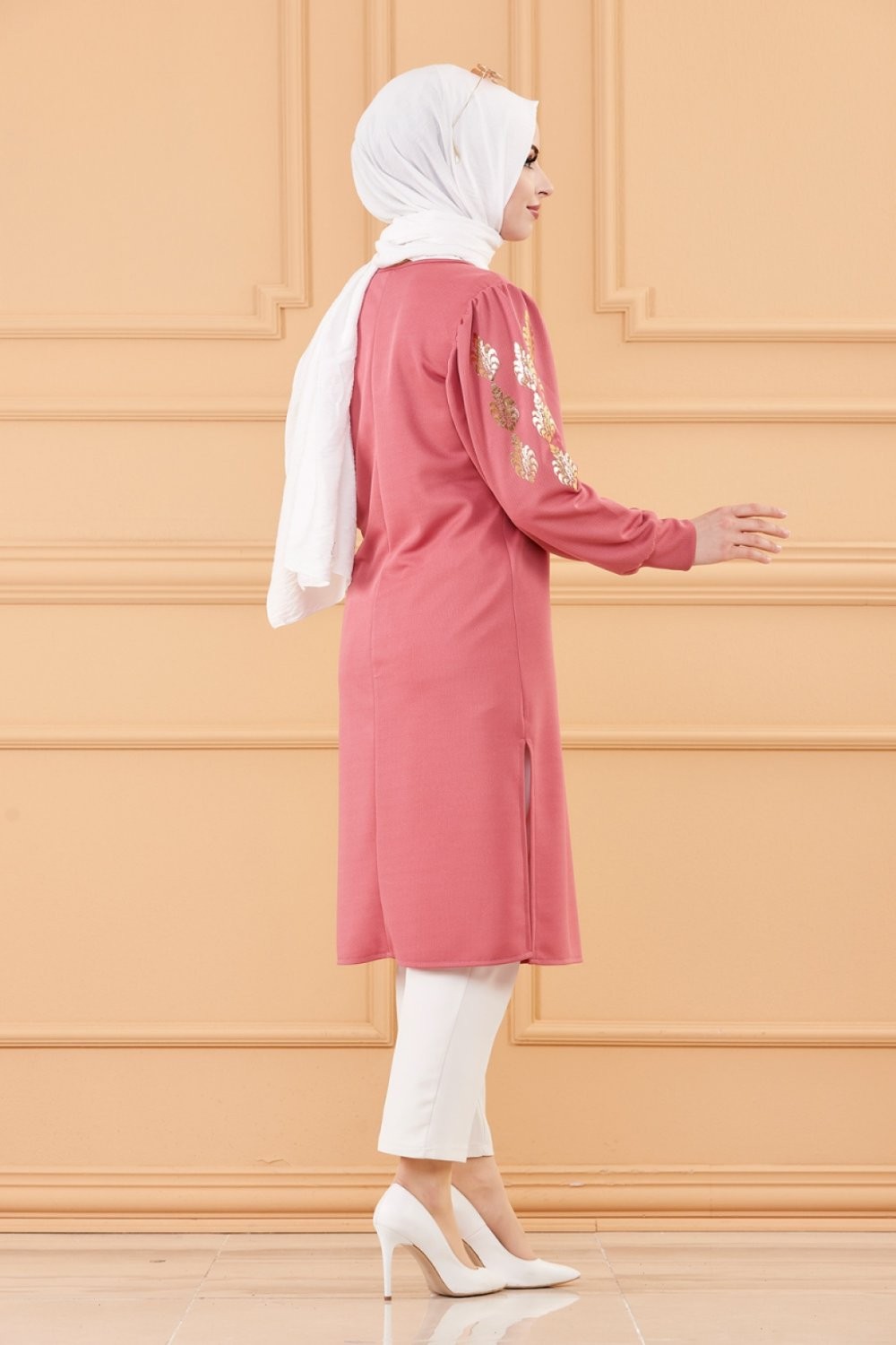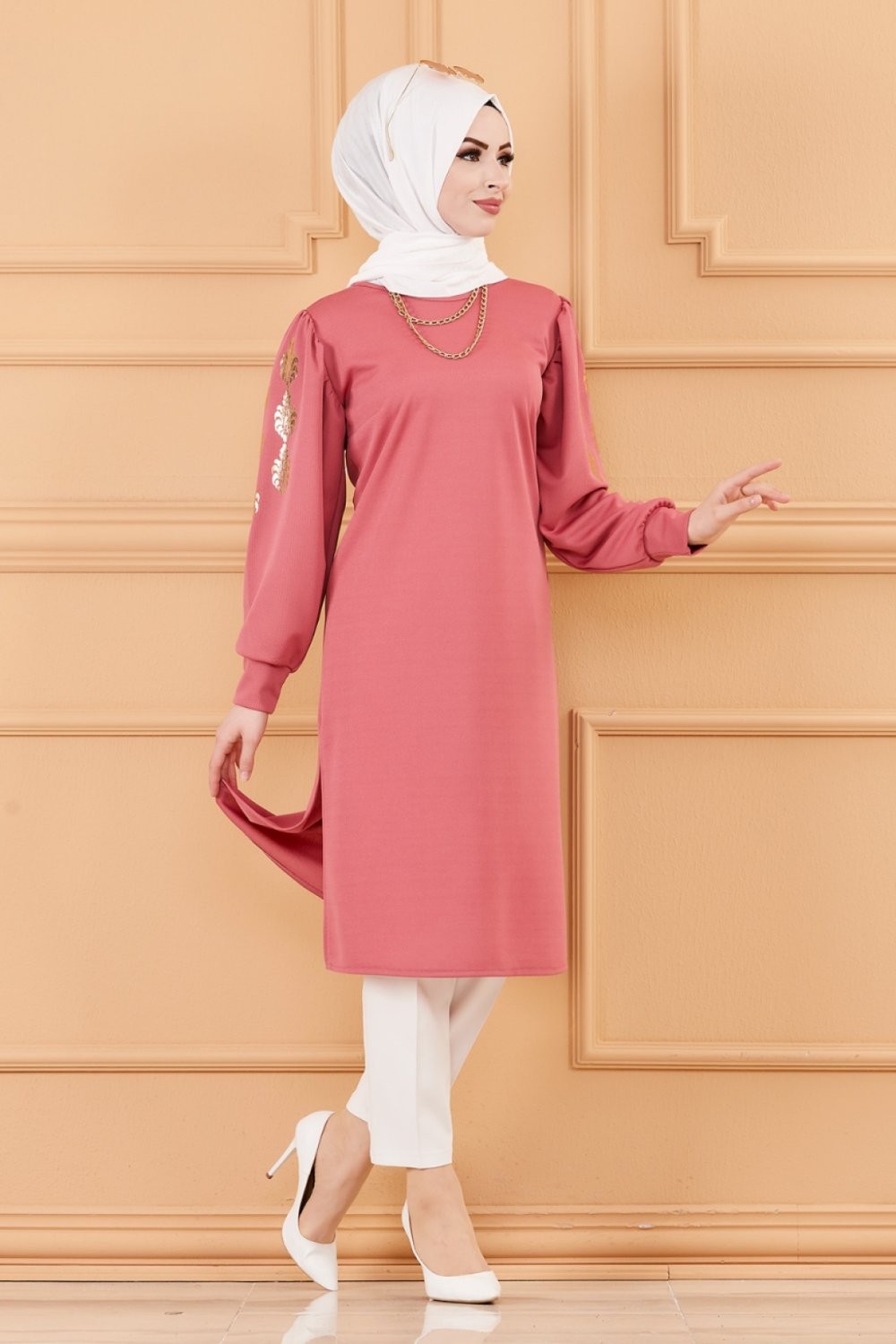 Tunique longue avec dorure (Vêtement femme voilée chic) - Couleur rose Vetement & Accessoire