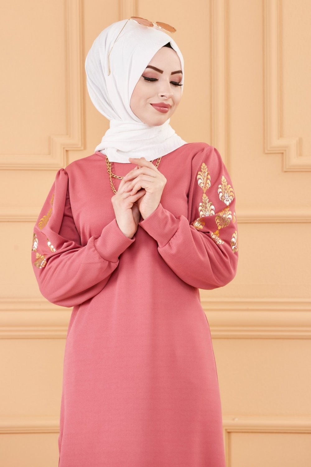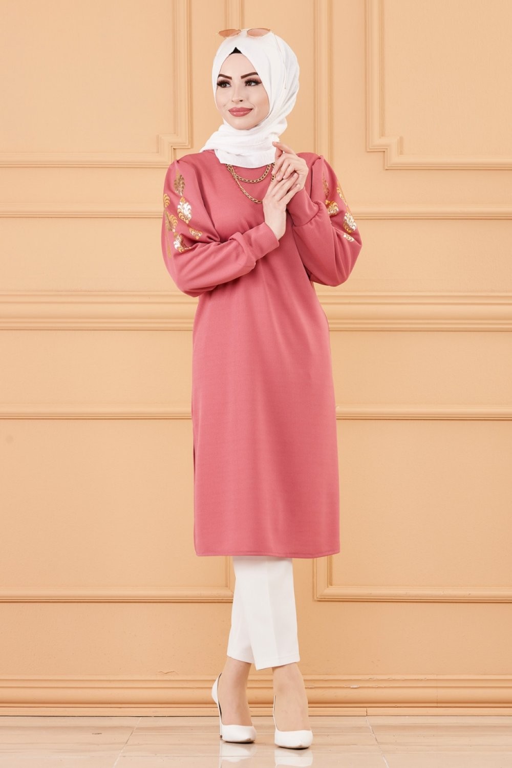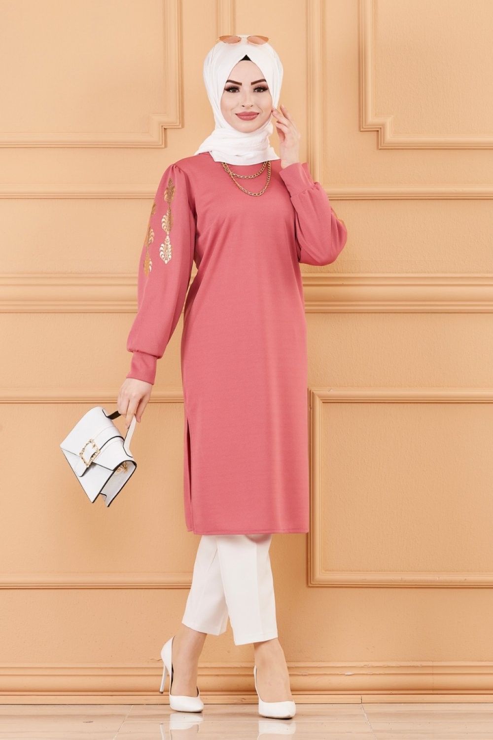 Tunique longue avec dorure (Vêtement femme voilée chic) - Couleur rose Vetement & Accessoire