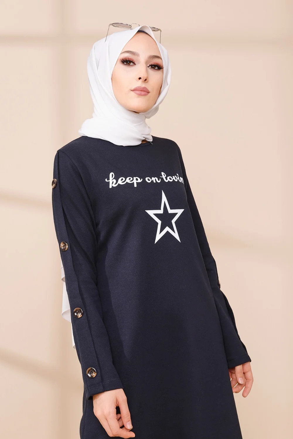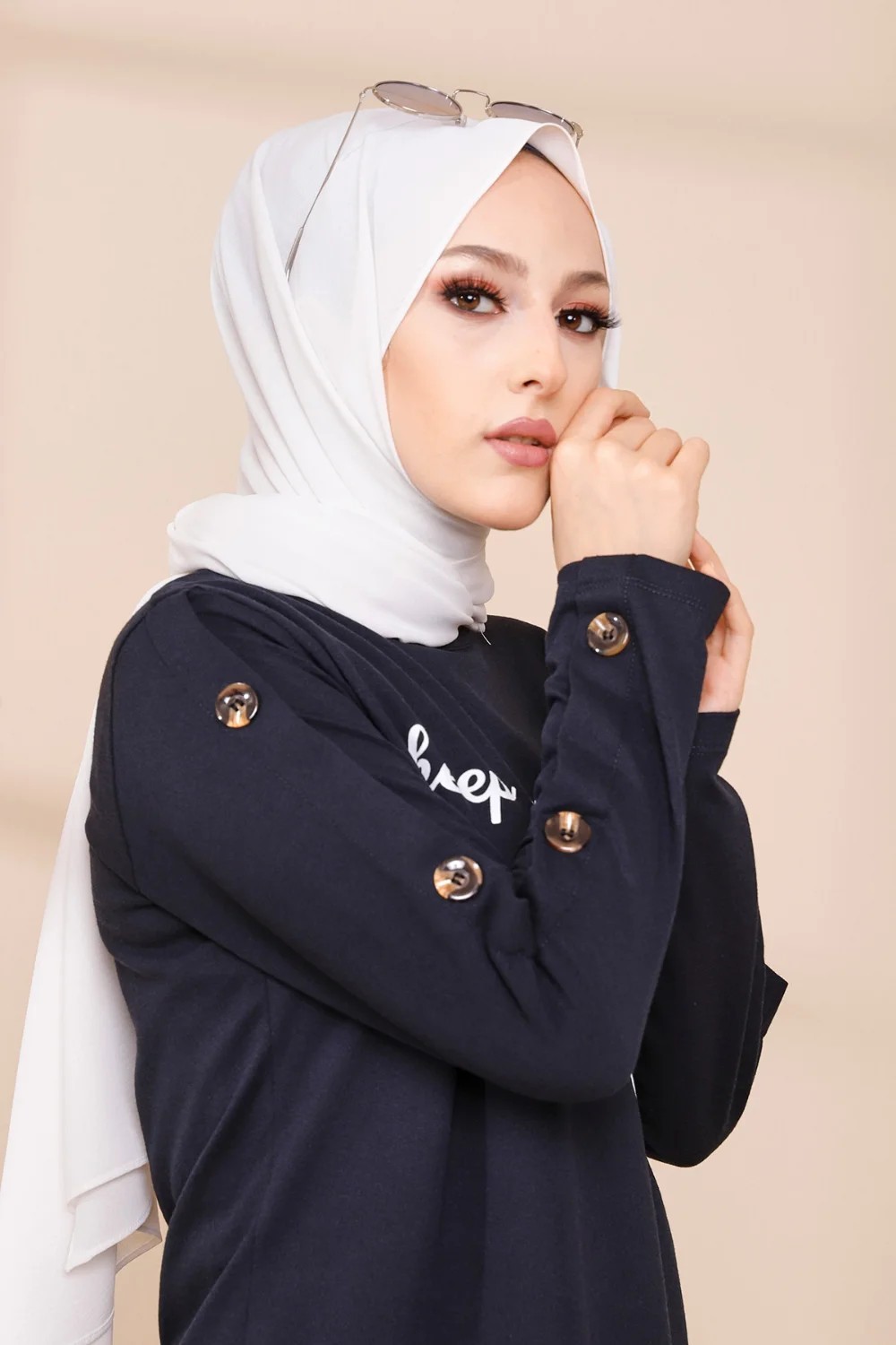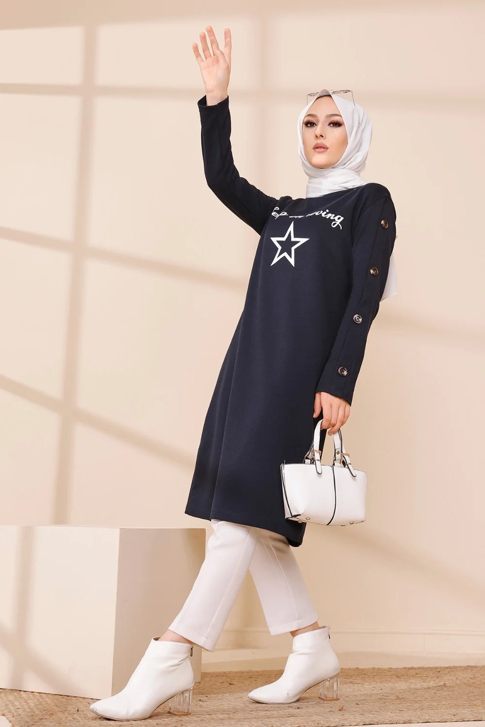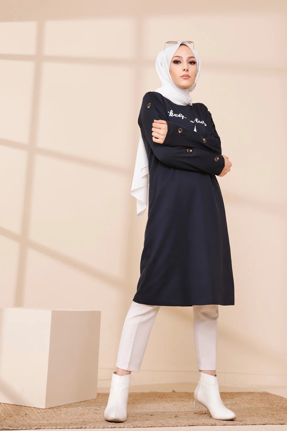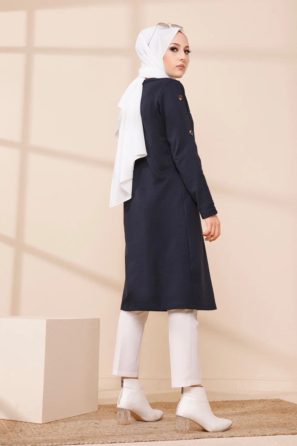 Tunique-Cardigan moderne pour femme (Vêtements Hijab - Saison Automne Hiver) - Couleur bleu marine - REF. 35539 (19.90 €)