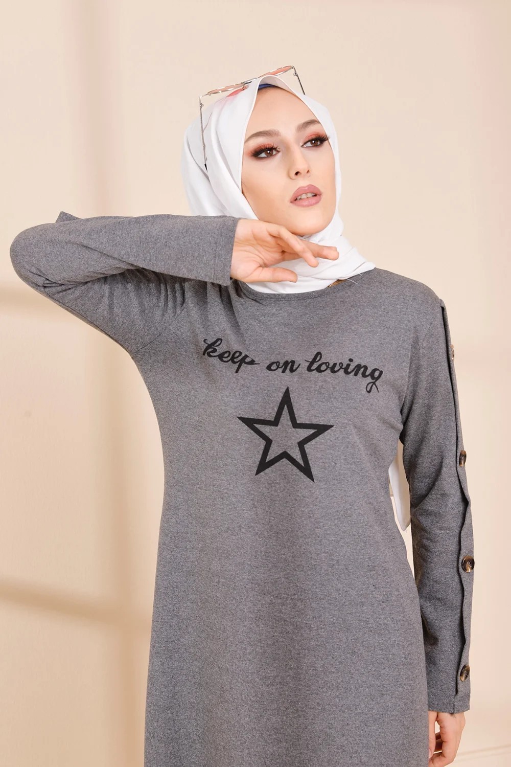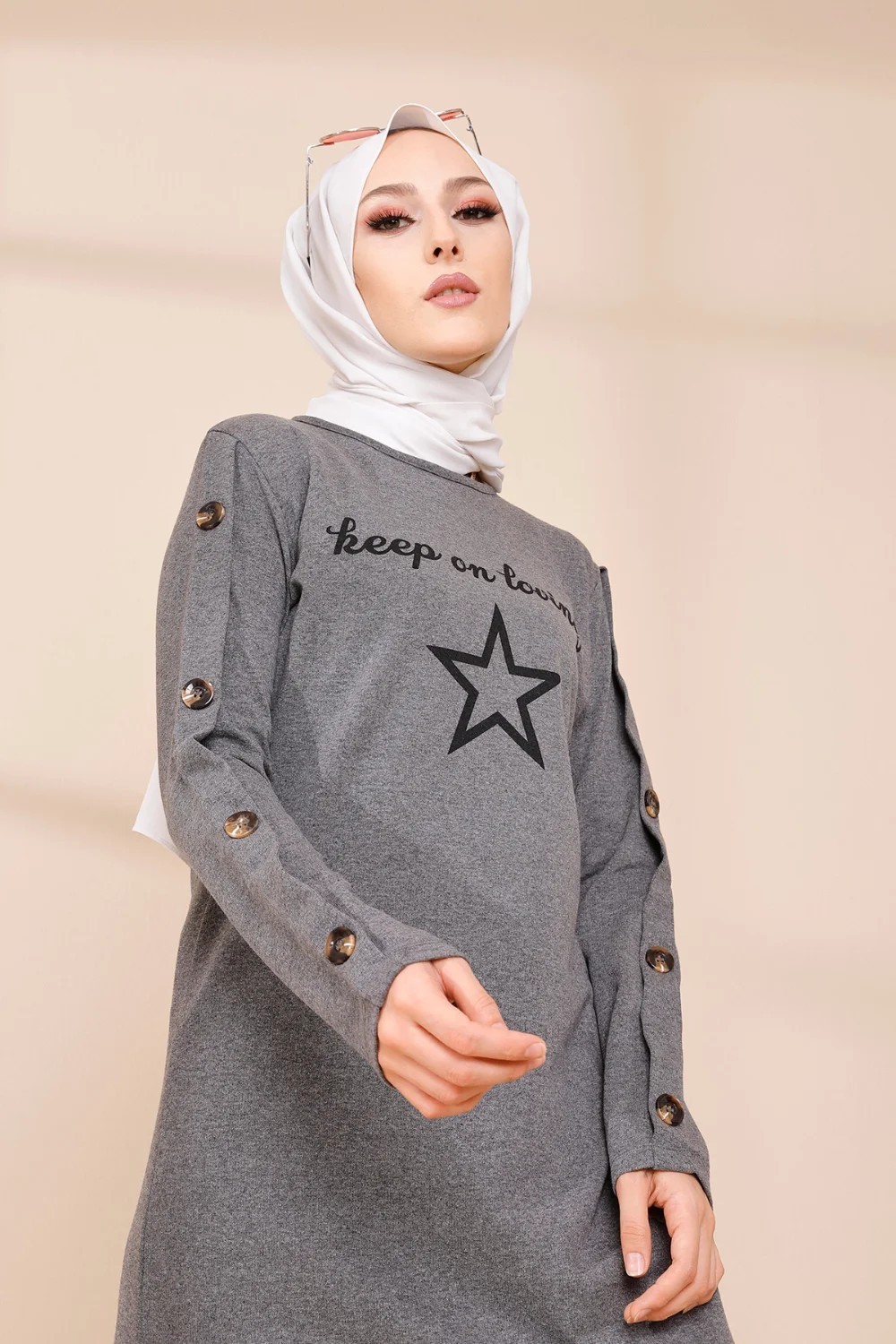 Tunique longue avec boutons imprimée étoile et "Keep on loving" - Couleur anthracite - REF. 35681 (22.00 €)