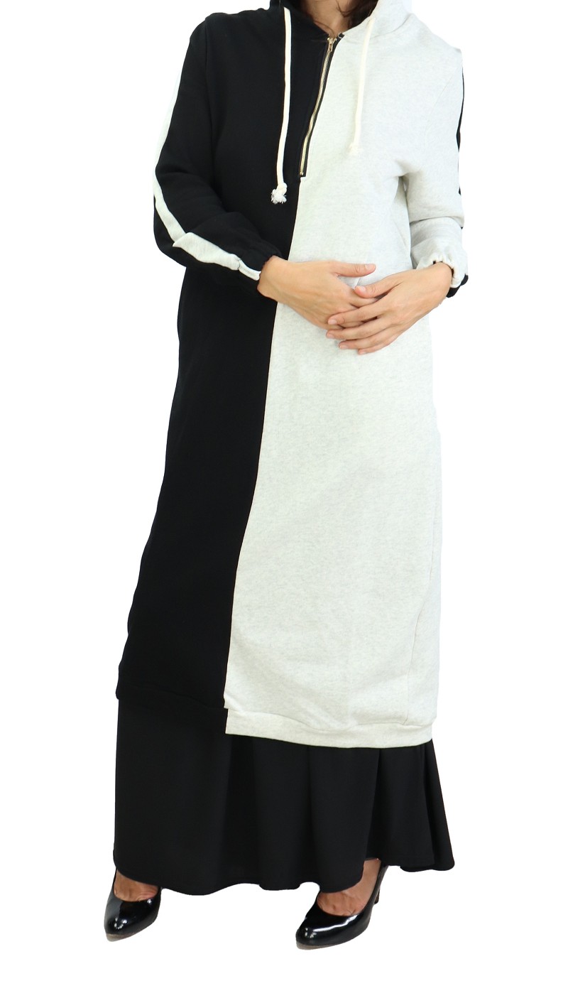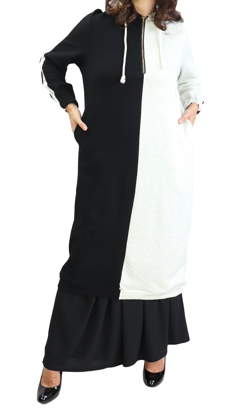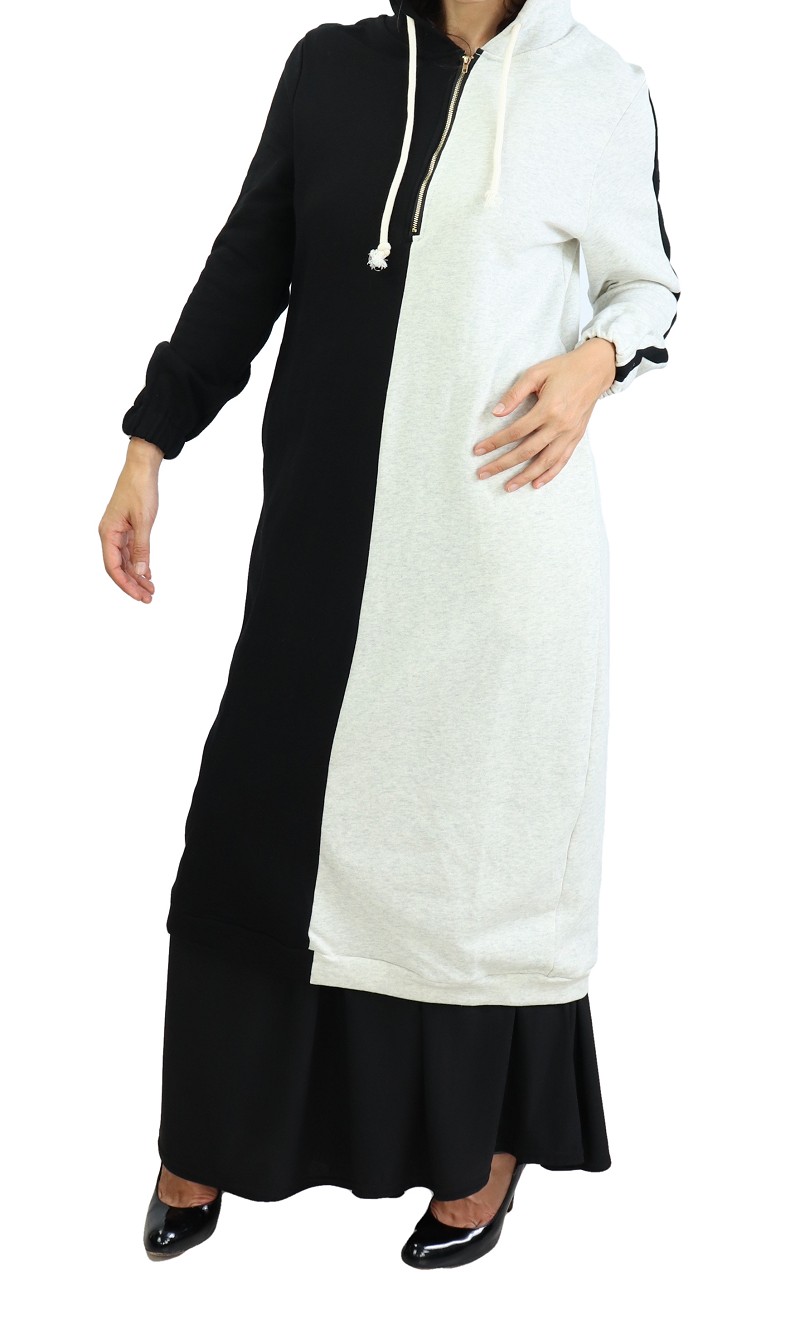 Robe longue à capuche fermeture éclair (Tenue mastour sportswear pour femme voilée) - Couleur Noir et Kaki clair - REF. 32821 (29.90 €) - En Promotion à 21.90 €