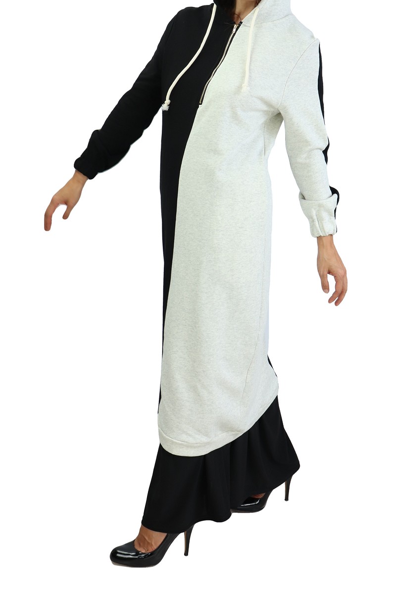 Robe longue moderne bi-couleur (Vetement hijab pas cher de Turquie pour femme voilée) - Couleur gris anthracite et blanc - REF. 32193 (19.90 €) - En Promotion à 16.90 €