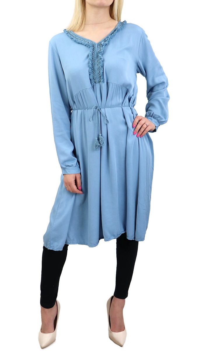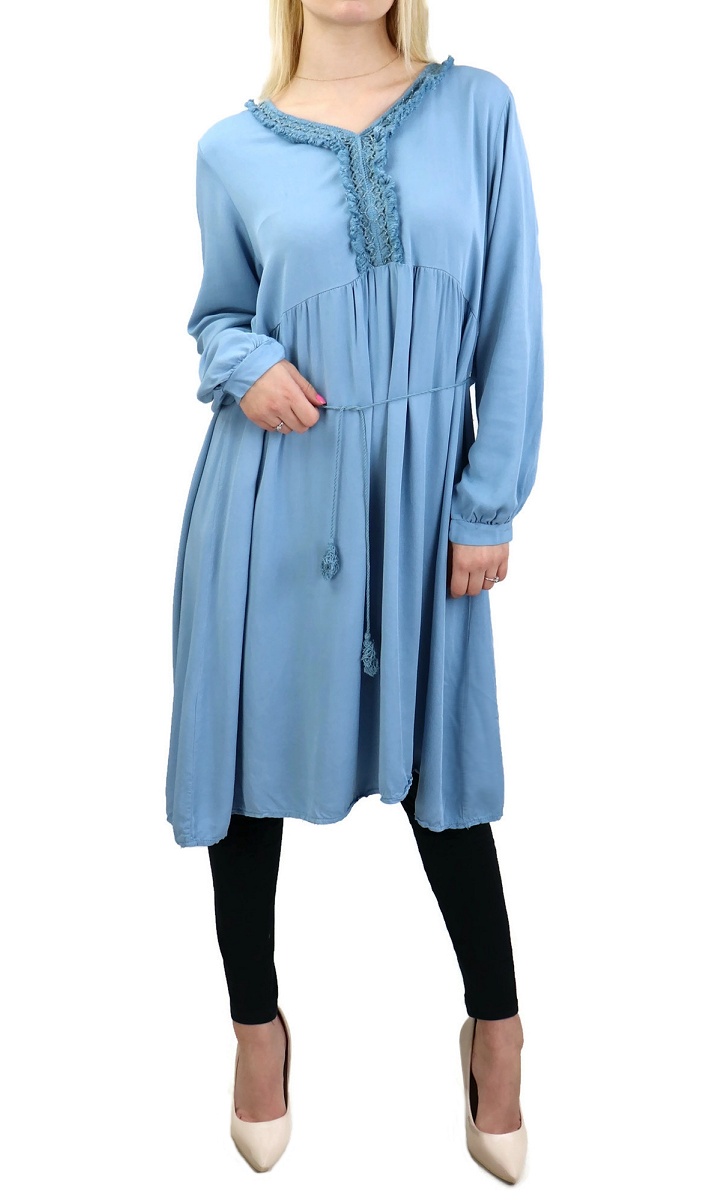 Tunique longue style boheme - Taille Unique - Couleur bleu ciel