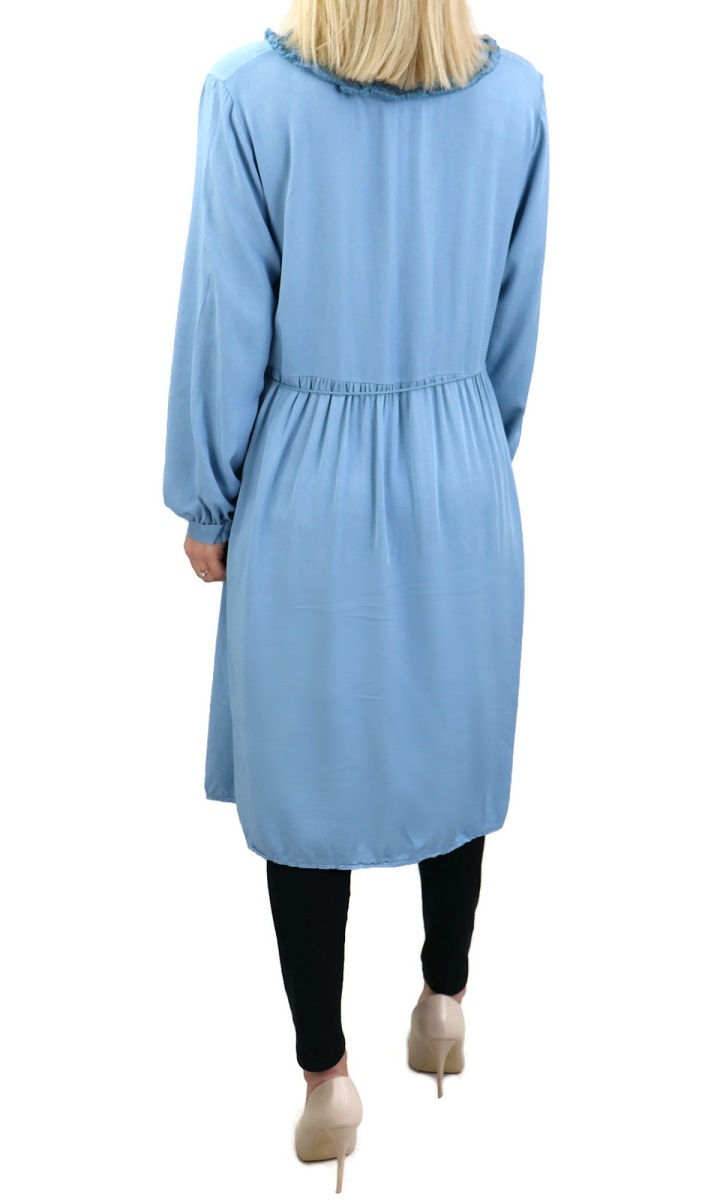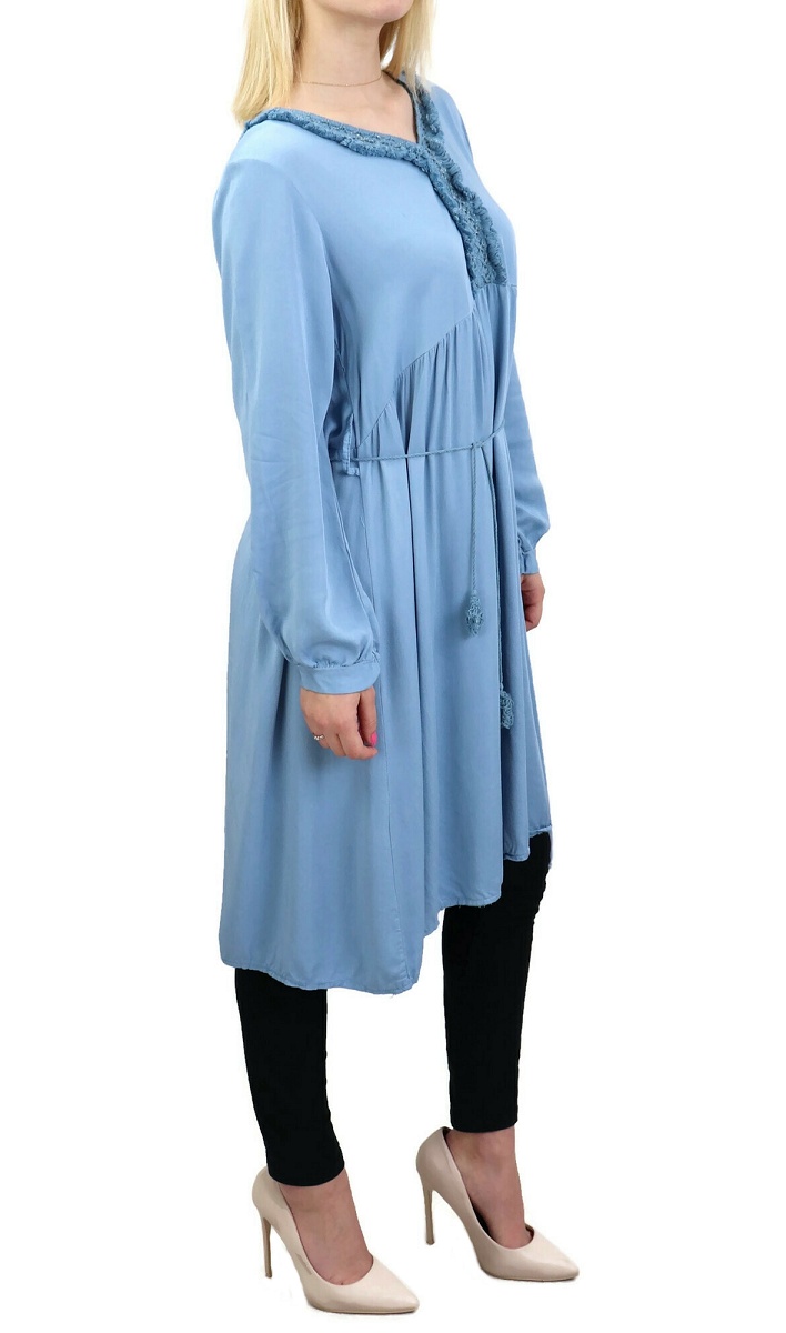 Tunique chemise longue avec cordon et boutons tout au long - Couleur Bleu ciel - REF. 30602 (25.00 €) - En Promotion à 19.90 €