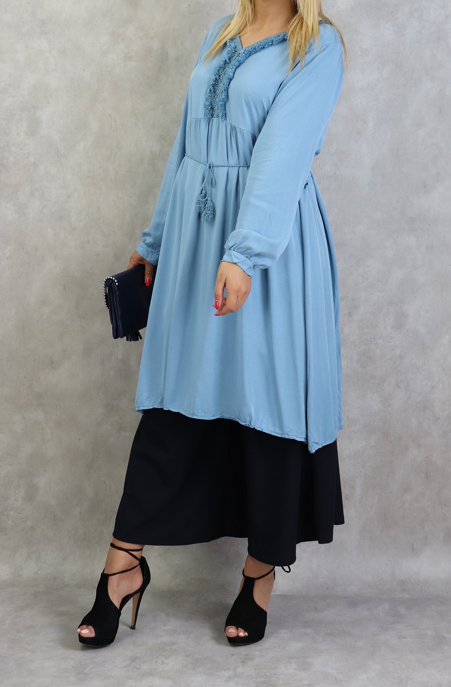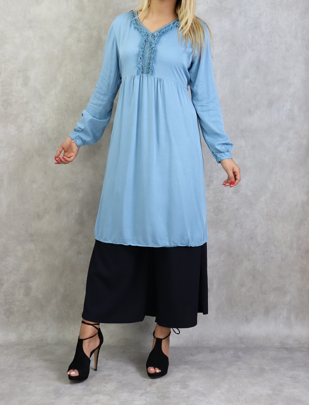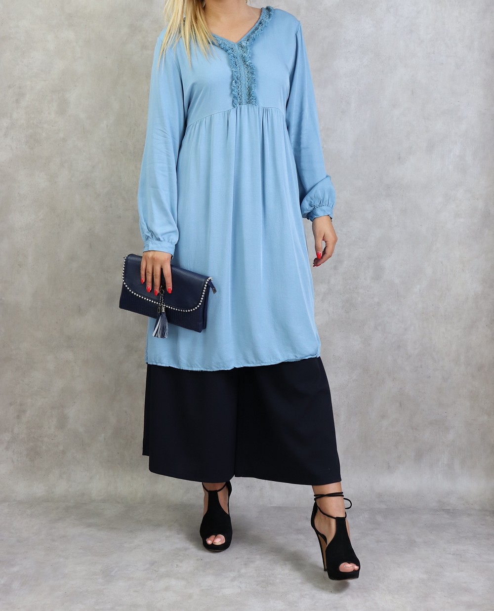 Tunique longue style boheme - Taille standard - Couleur bleu