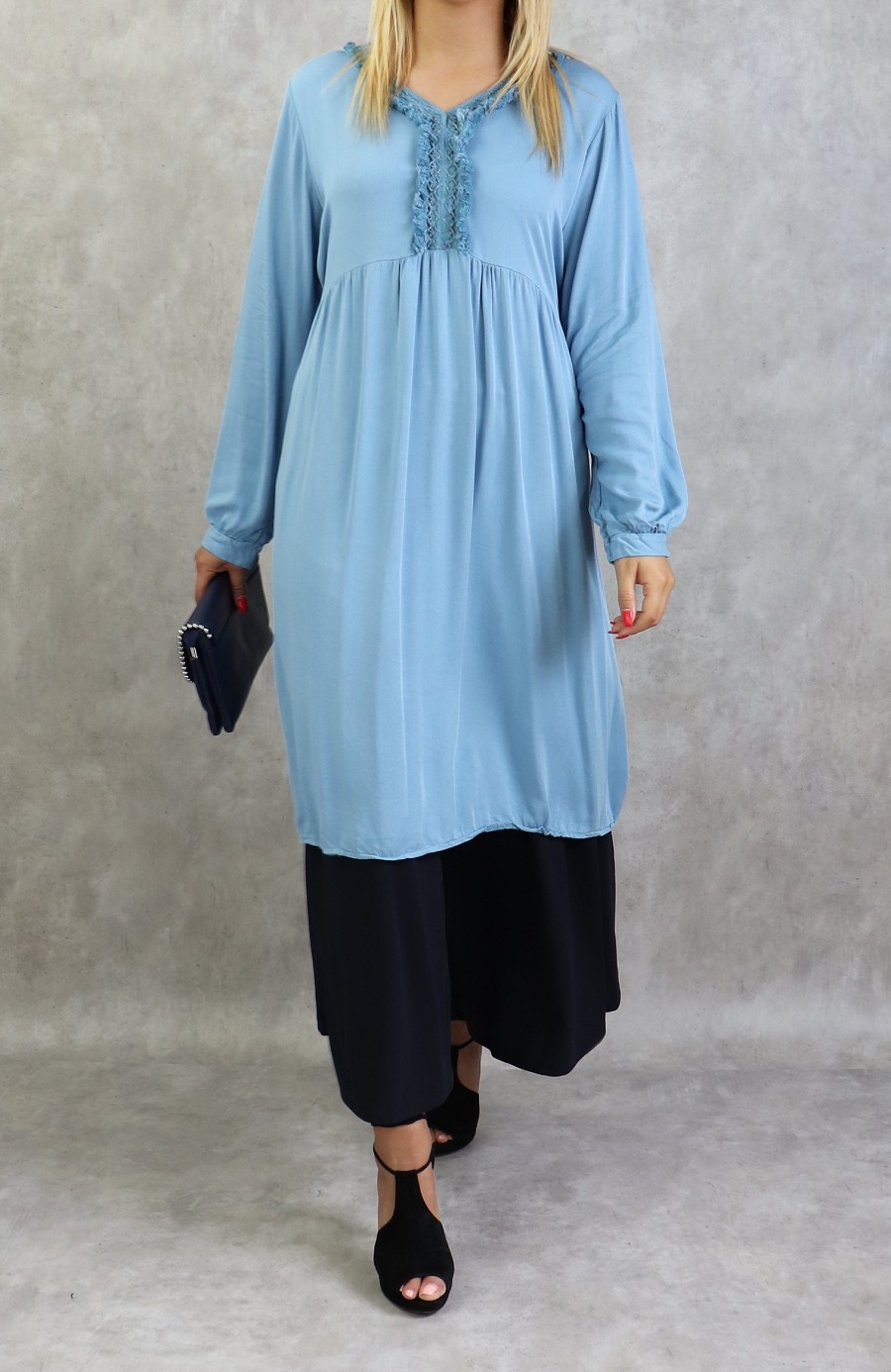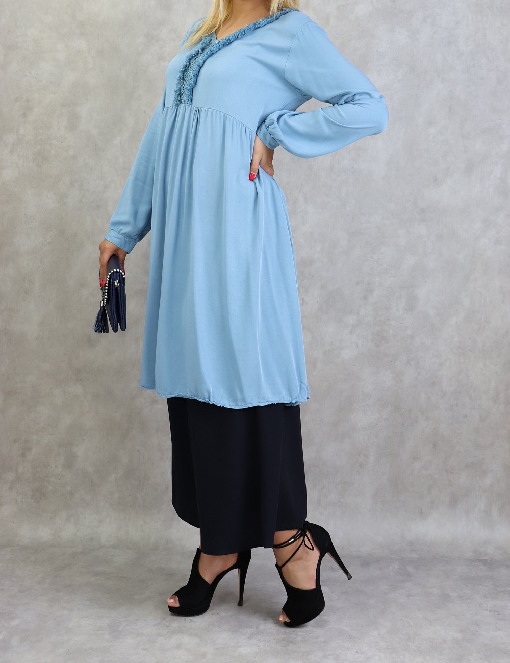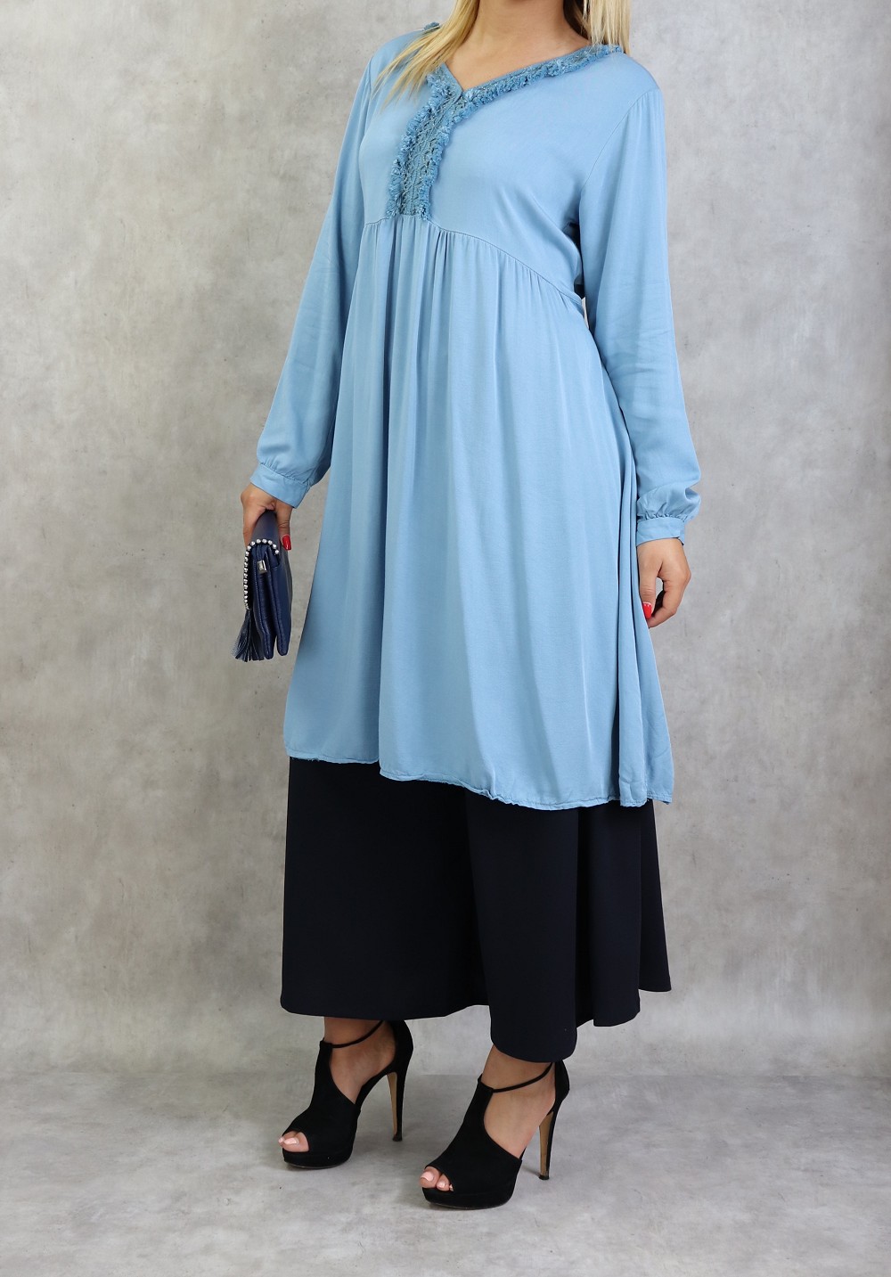 Tunique longue style boheme - Taille standard - Couleur bleu