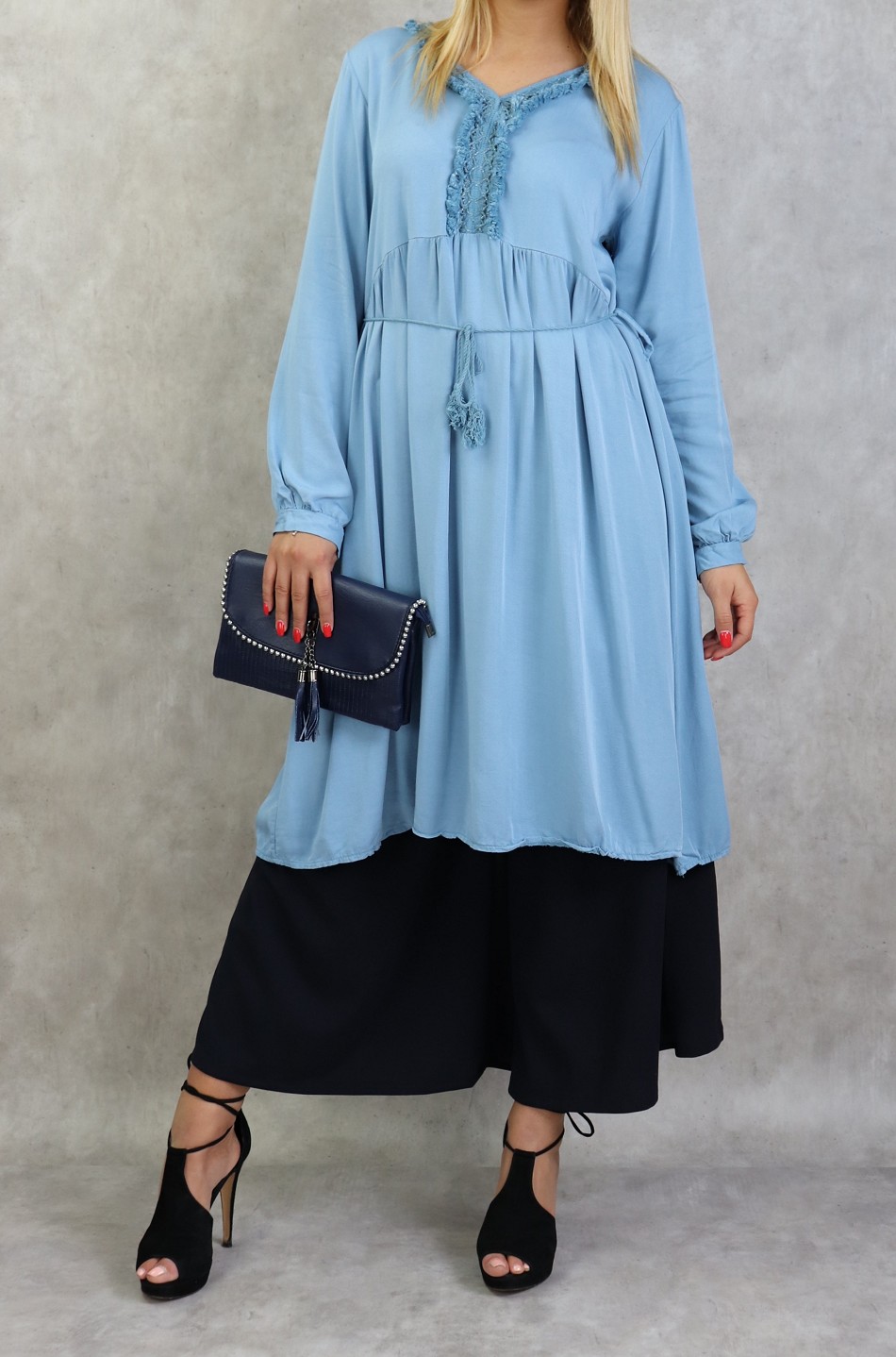 Tunique longue style bohème - Taille standard - Couleur bleu Vetement & Accessoire