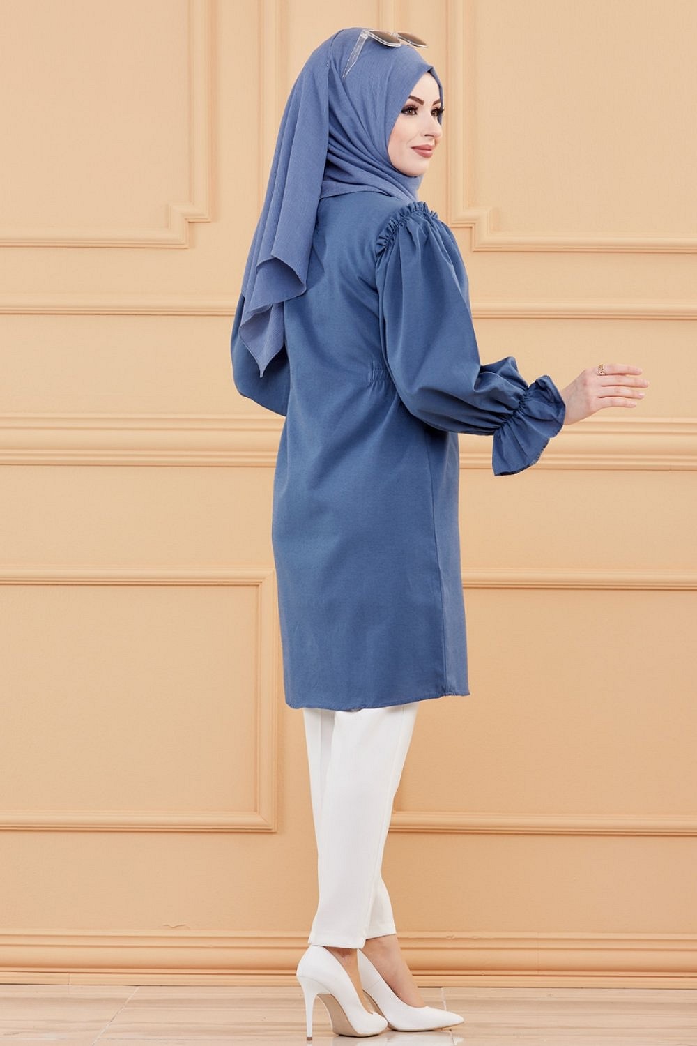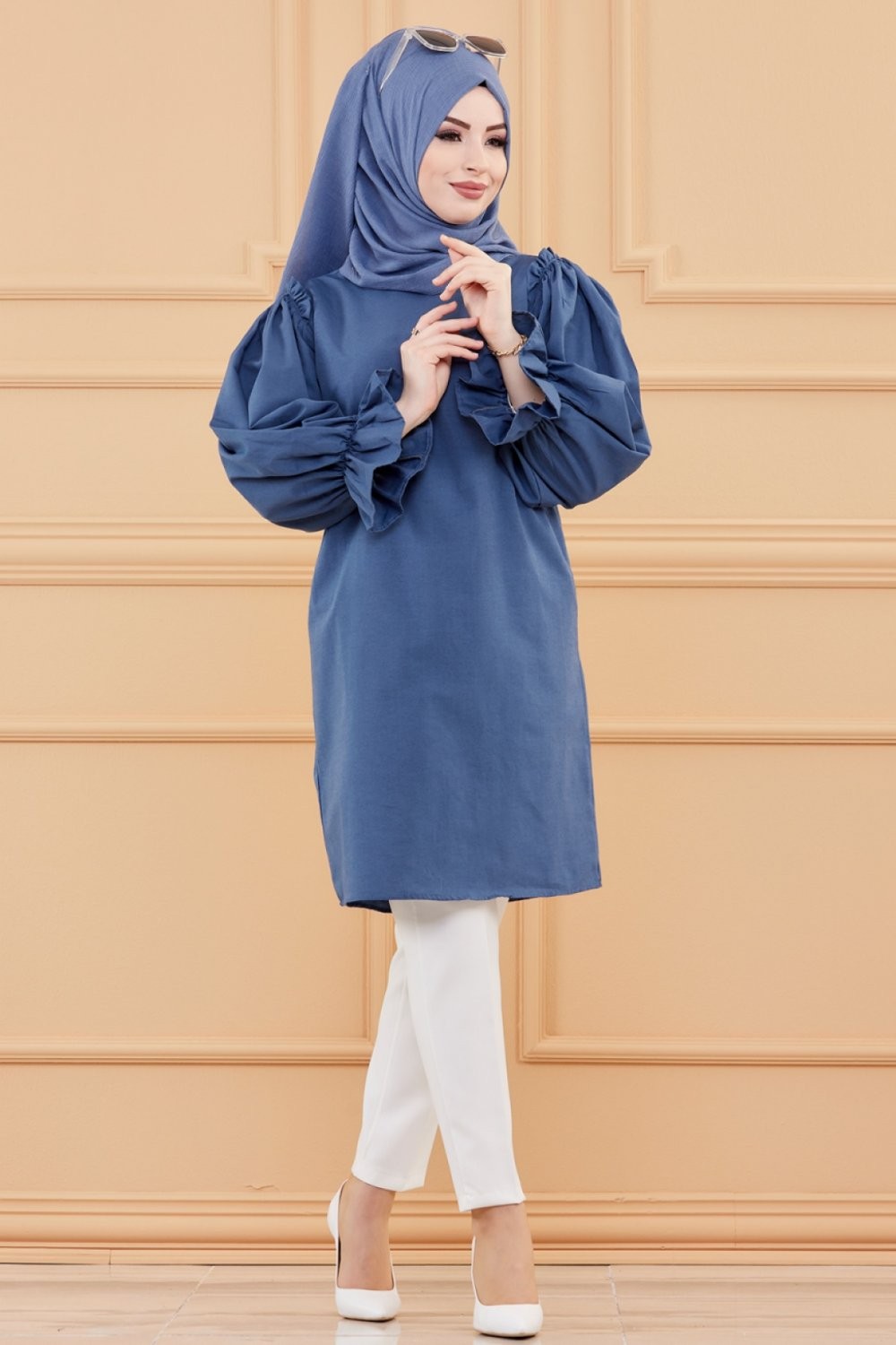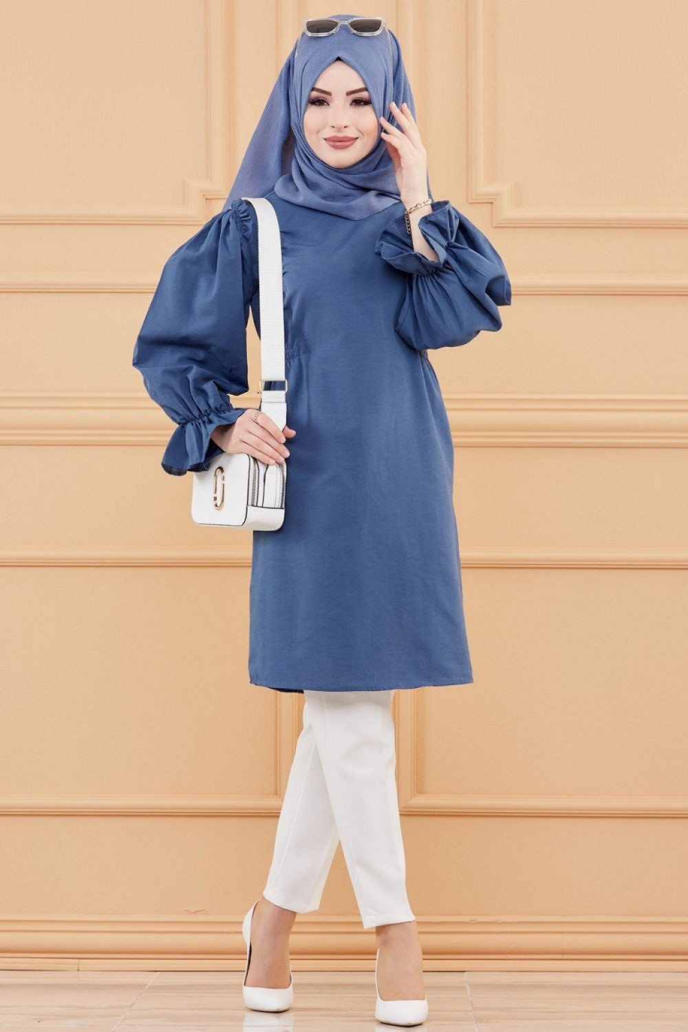 Tunique manches ballon (Vetement hijab habille pour femme) - Couleur bleu petrole