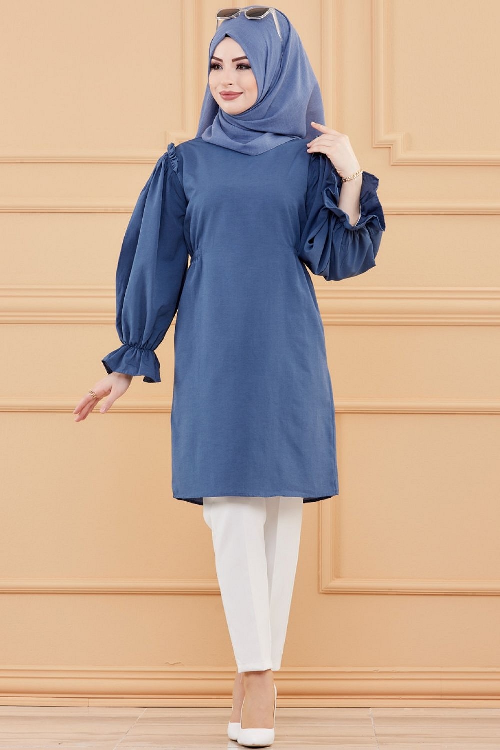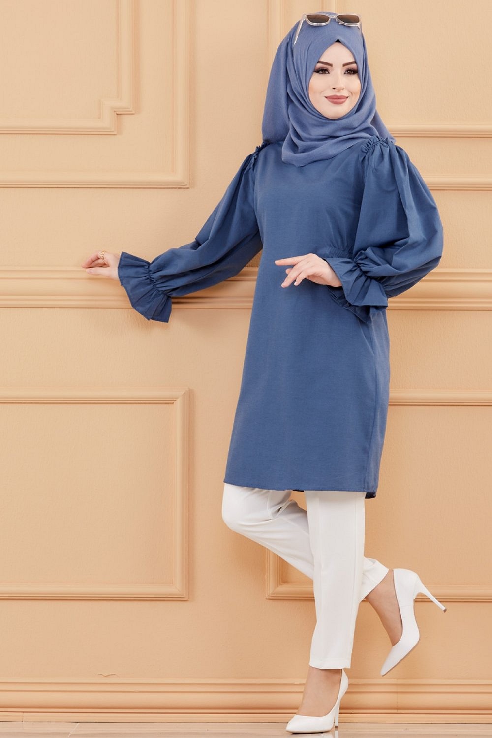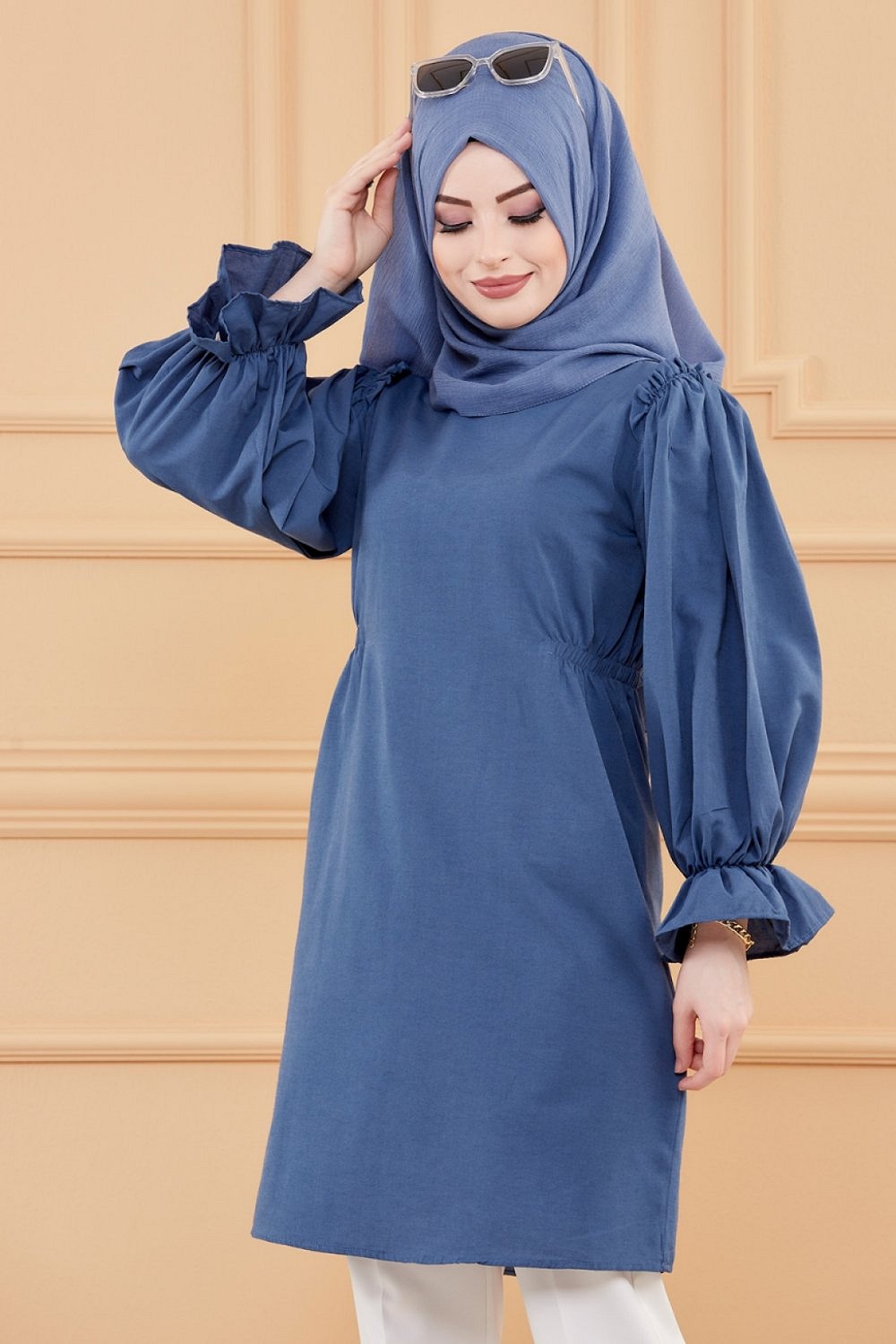 Tunique manches ballon (Vetement hijab habillé pour femme) - Couleur bleu pétrole Vetement & Accessoire