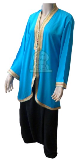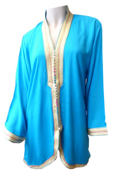 Tunique marocaine bleue turqoise courte avec noeuds multicouleurs Vetement & Accessoire