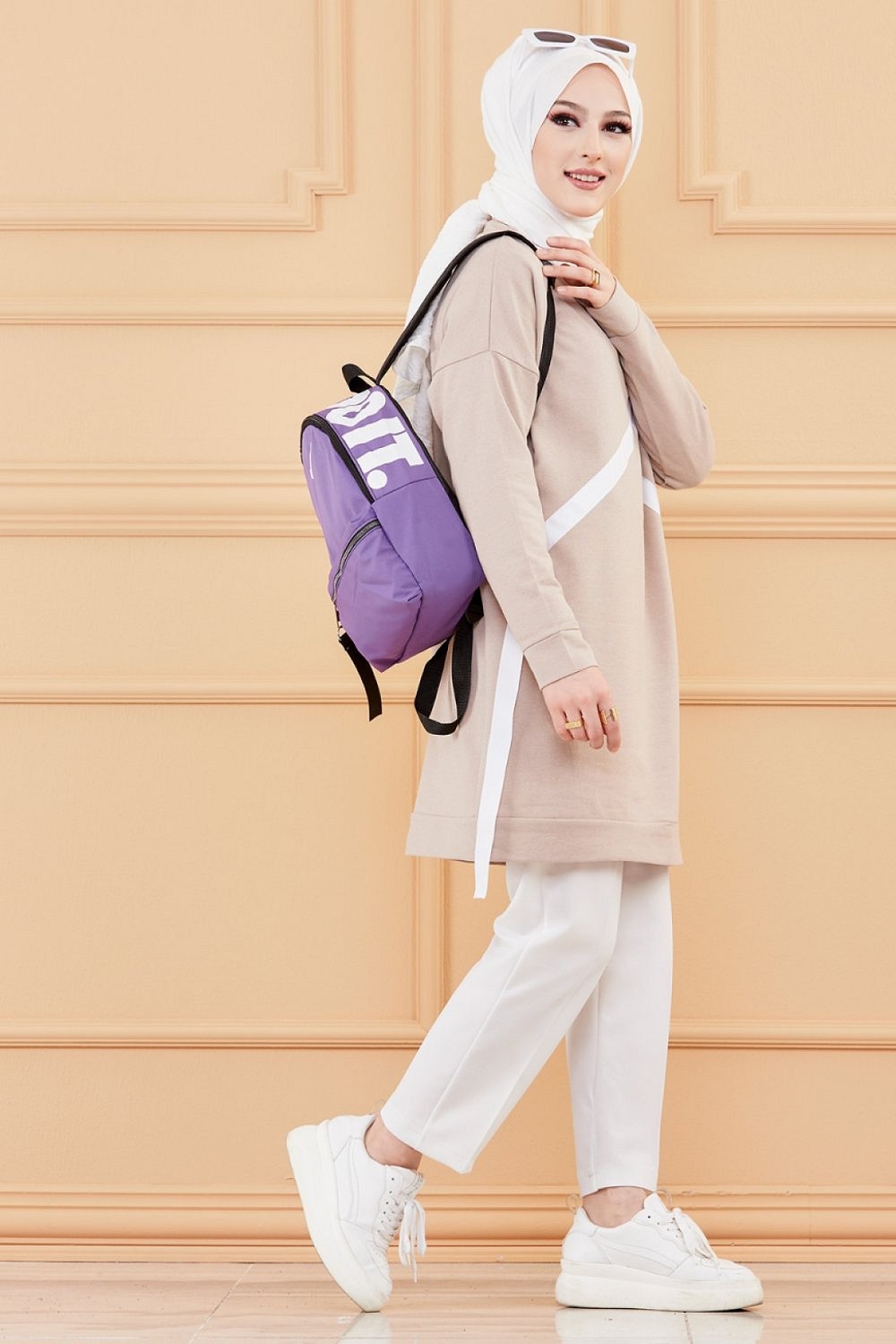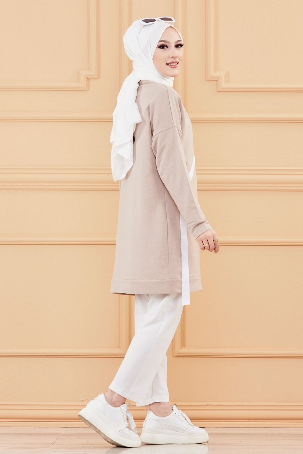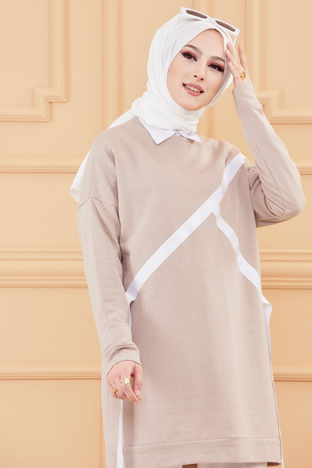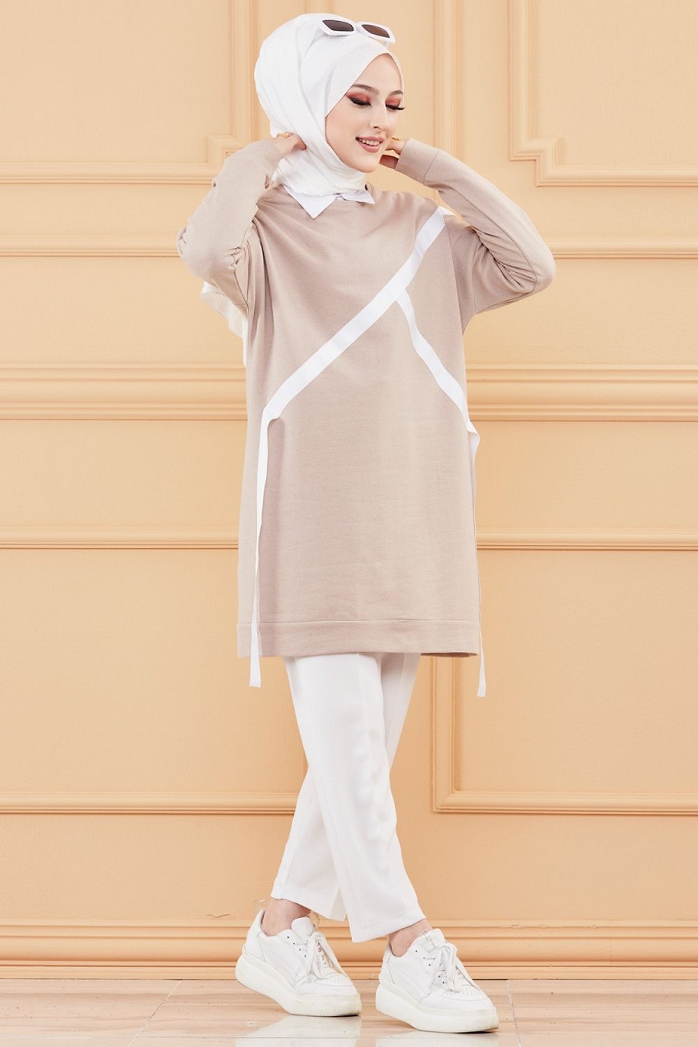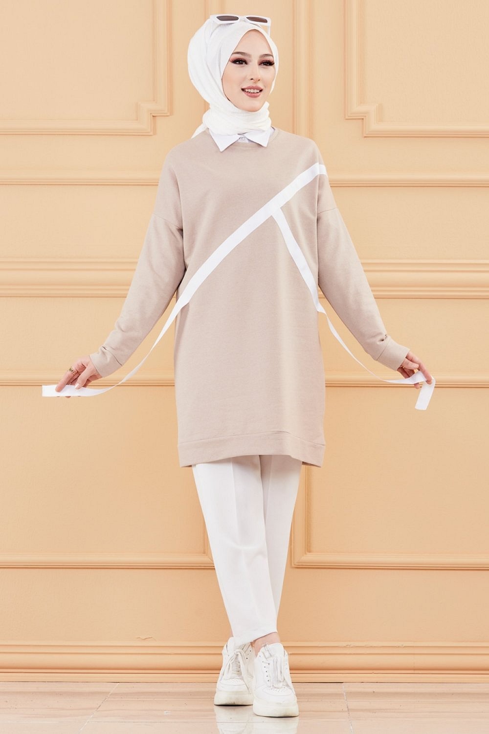 Tunique originale pour femme - Sweat moderne pour hijab - Couleur beige