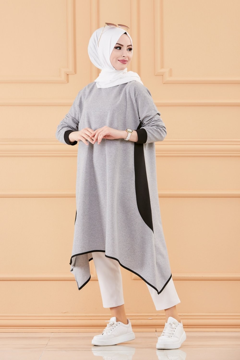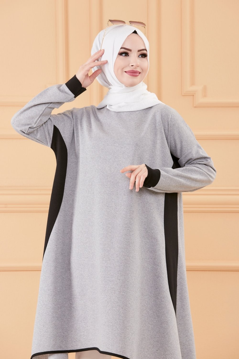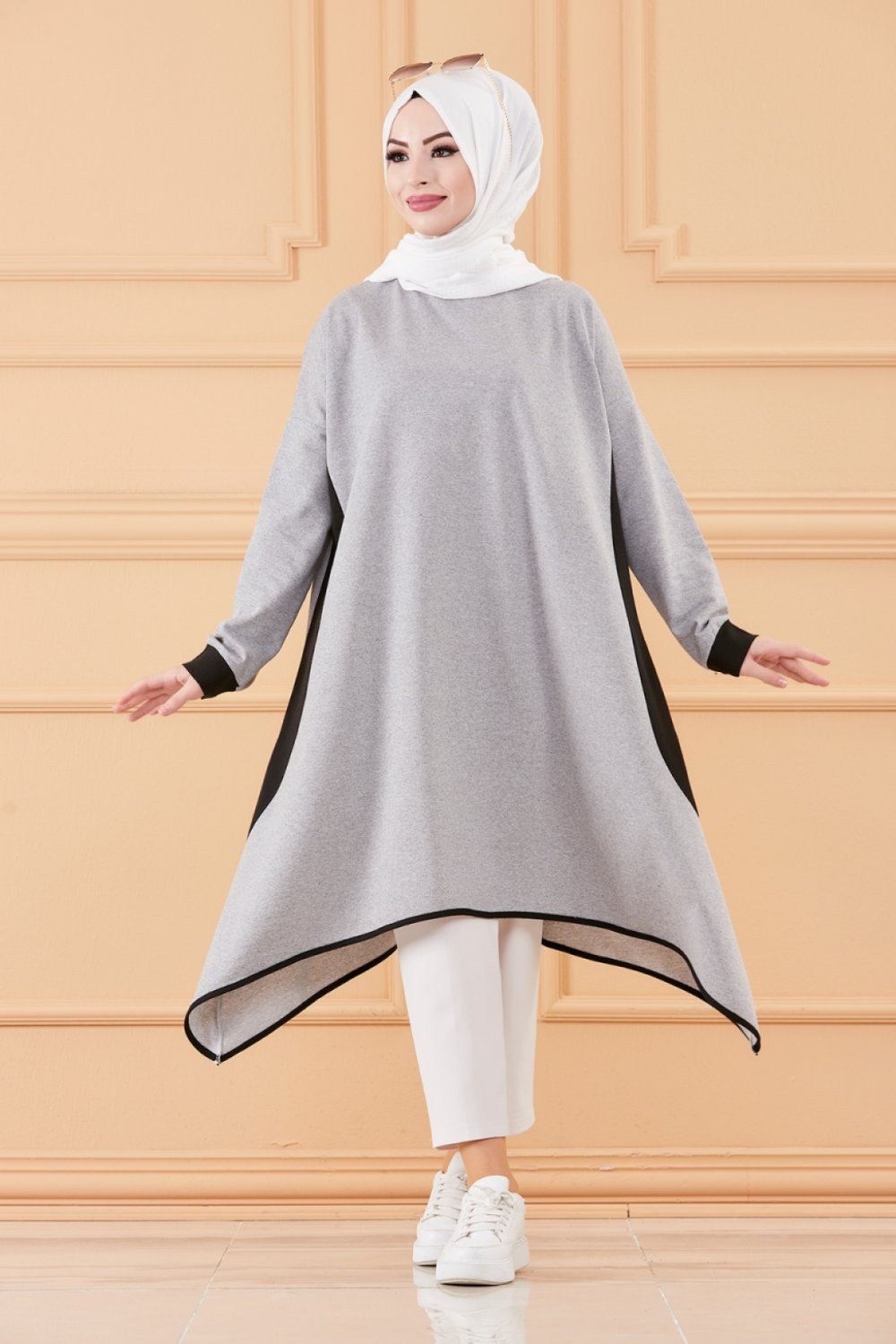 Tunique oversize (Vetement ample pour femme voilee) - Couleur Gris et noir