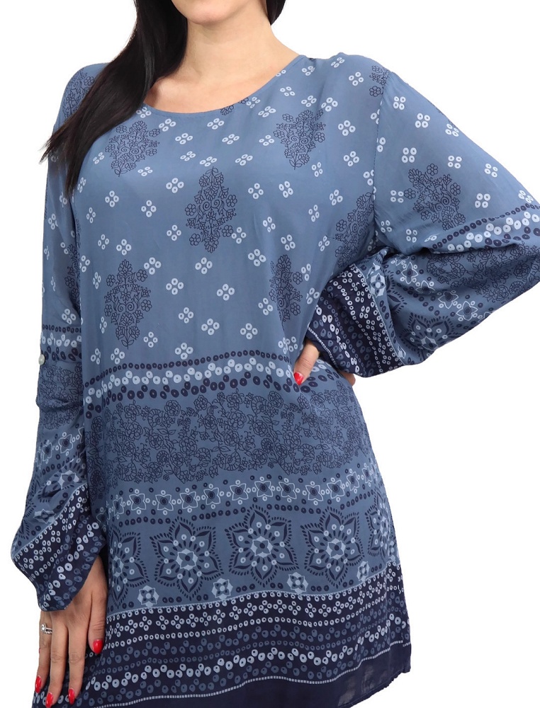 Tunique pour femme a motifs de couleur bleu et bleu clair