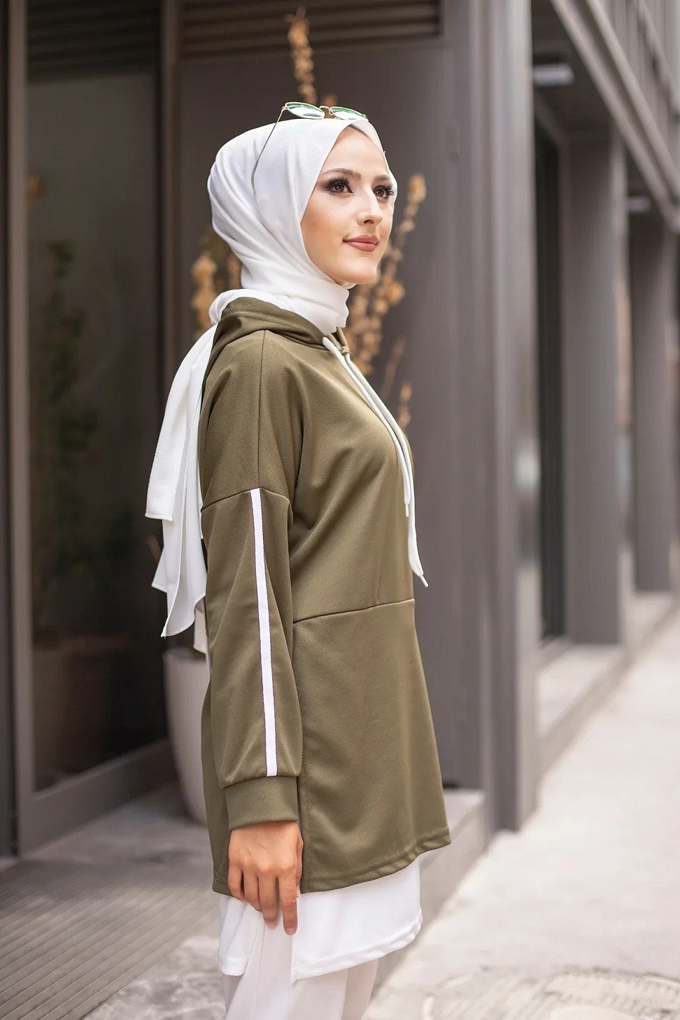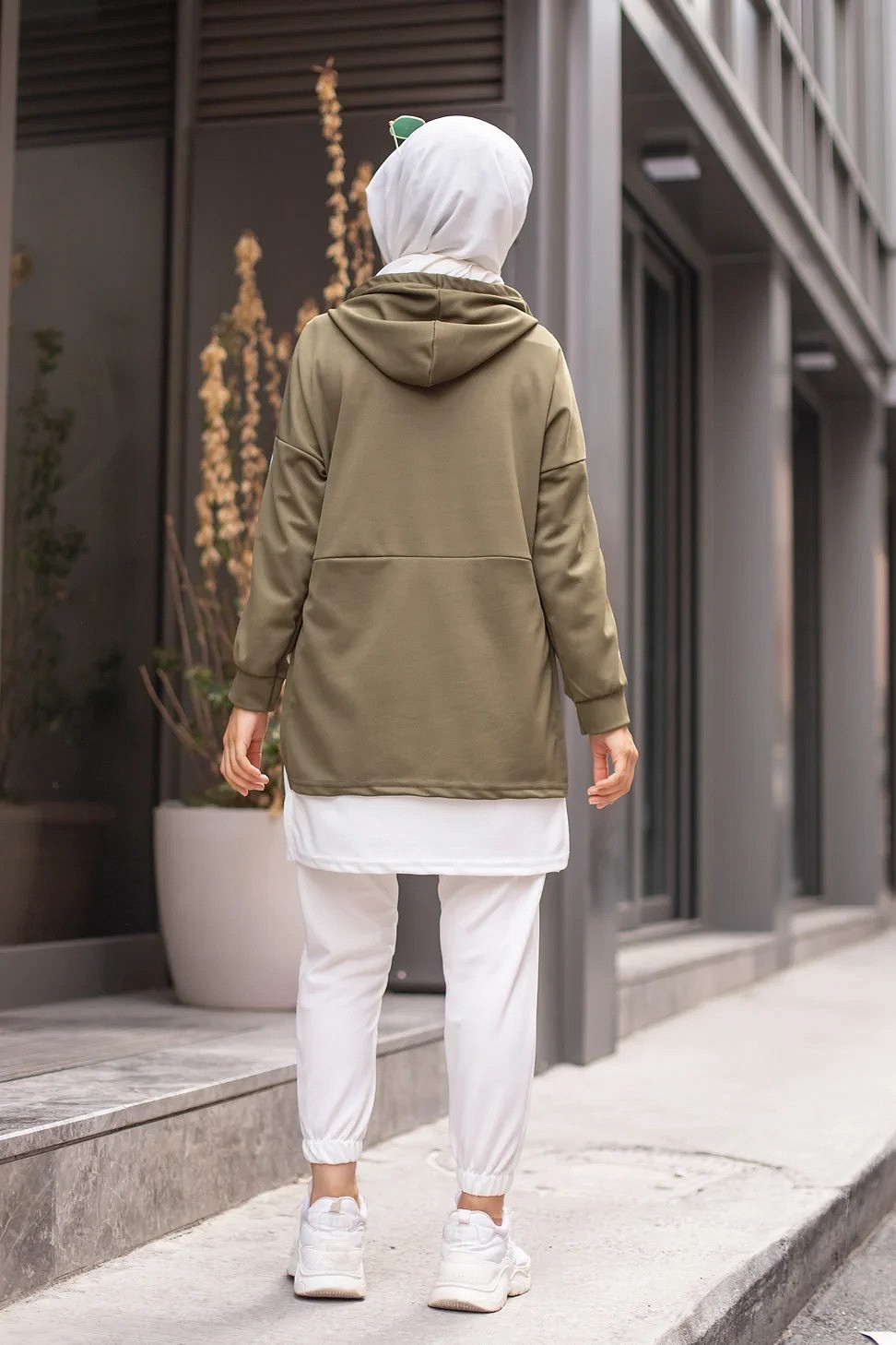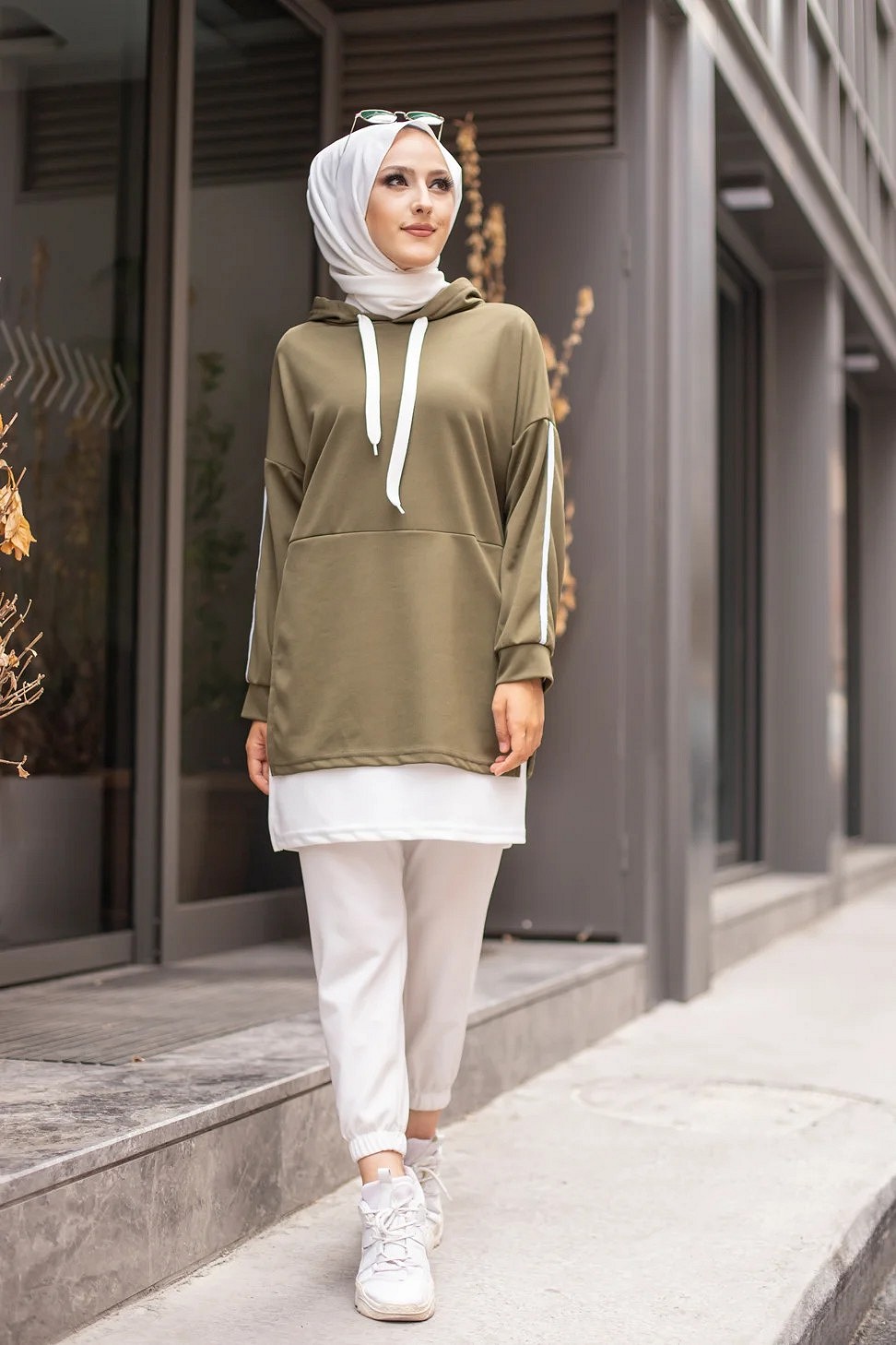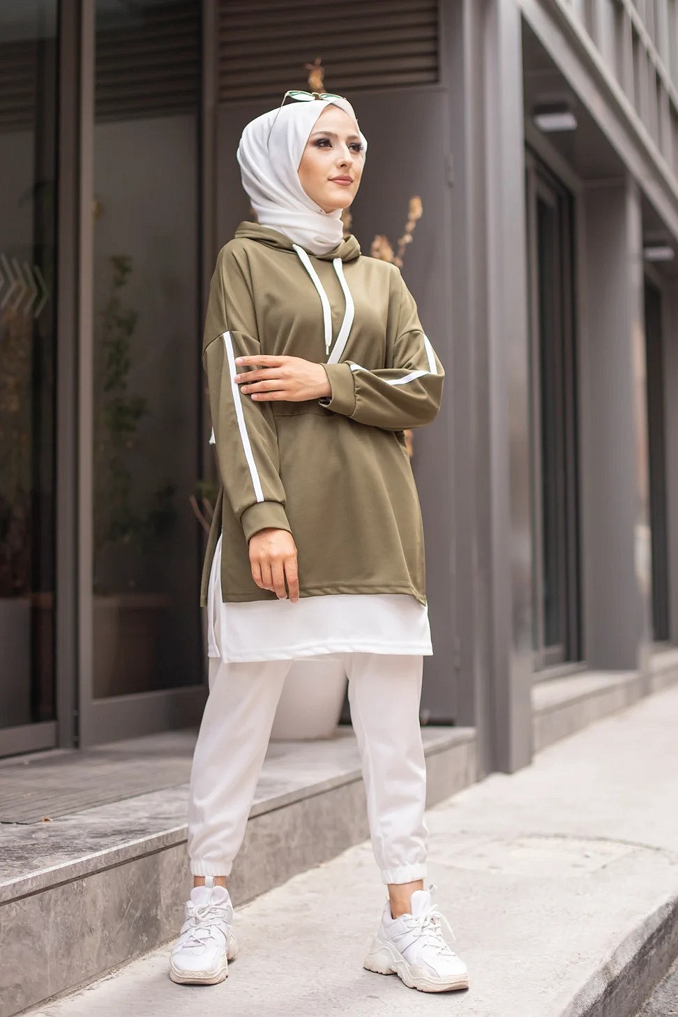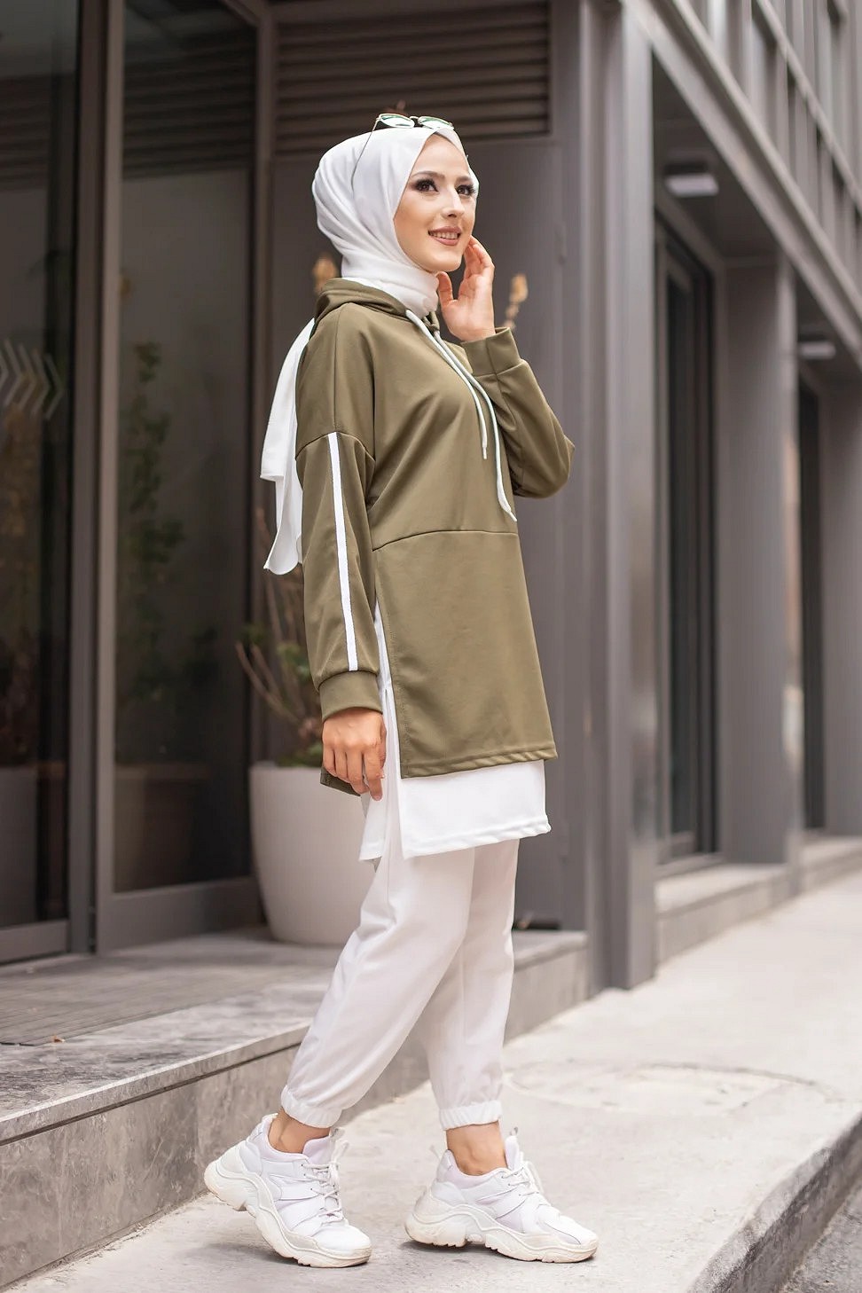 Tunique sport bicolore pour femme musulmane (Tenue Hijab sportswear) - Couleur blanc et kaki Vetement & Accessoire