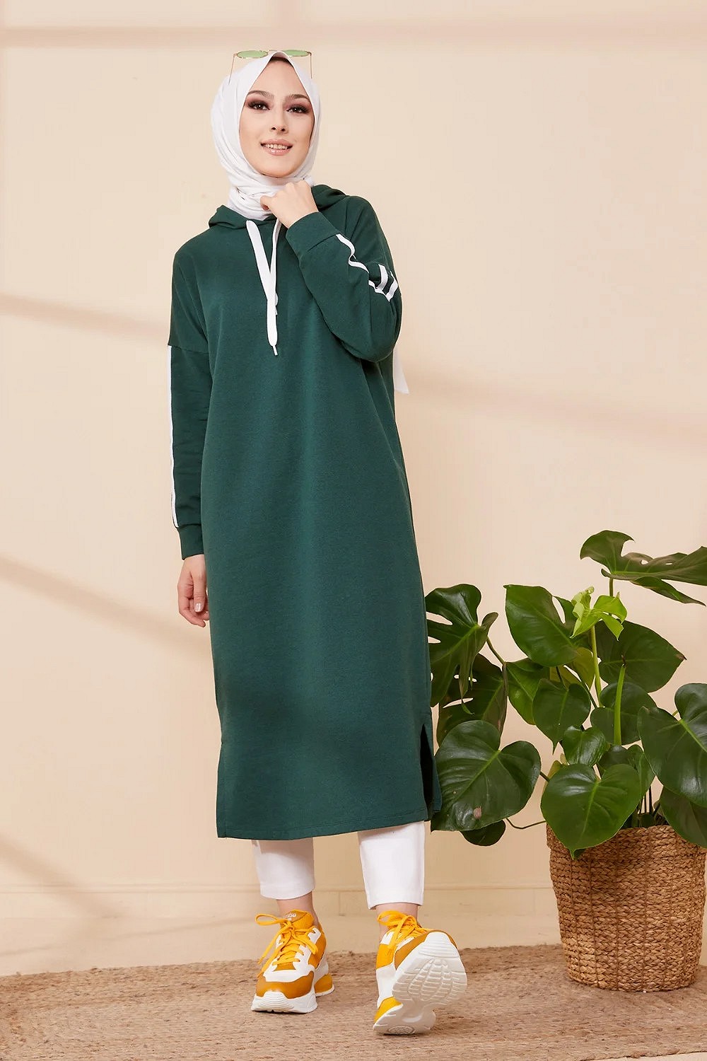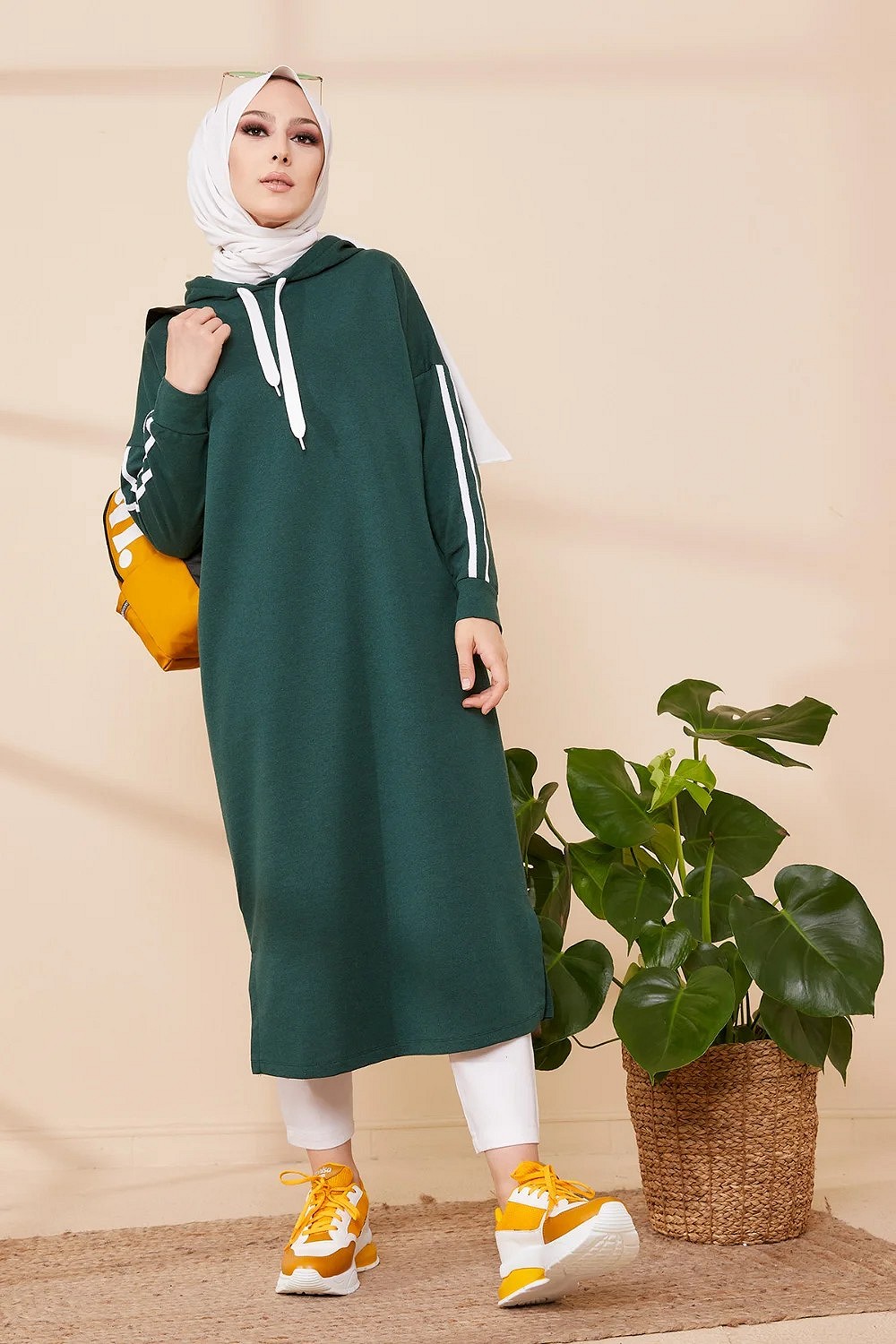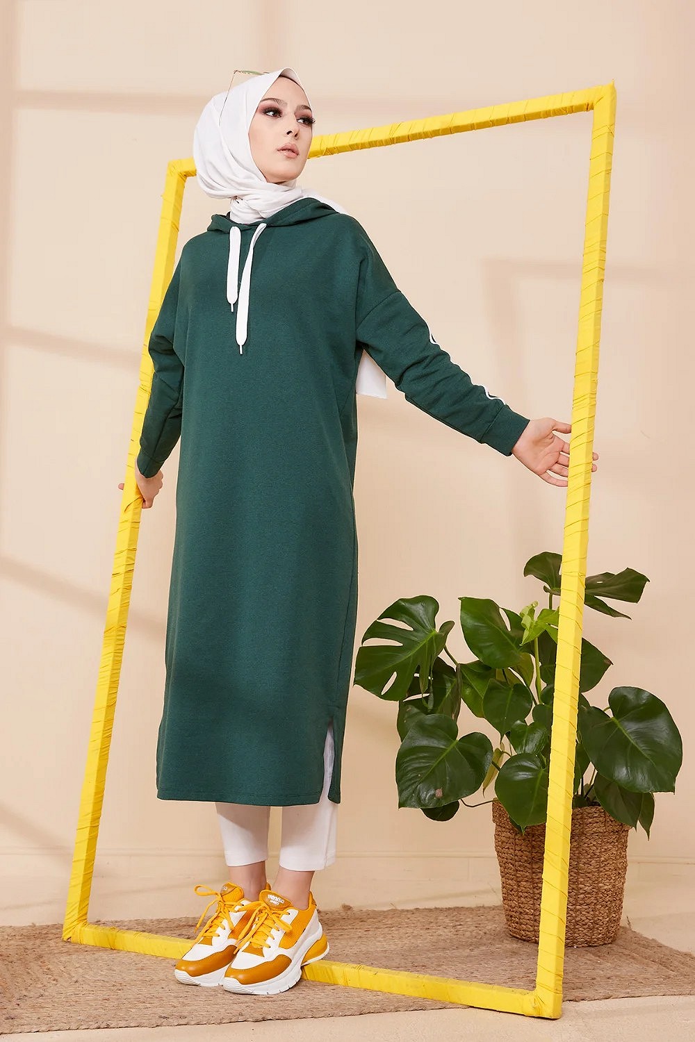 Tunique style decontracte avec capuche pour femme (Vetement hijab moderne et sport) - Couleur vert emeraude