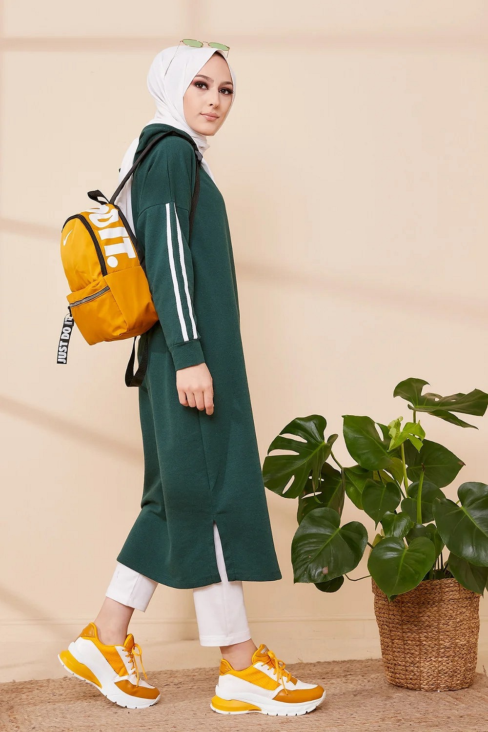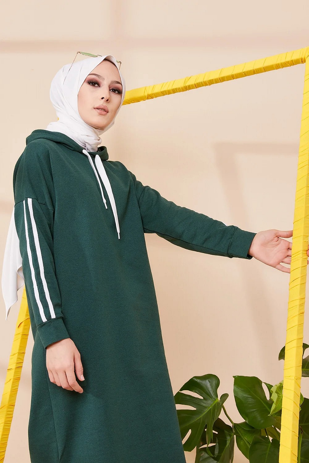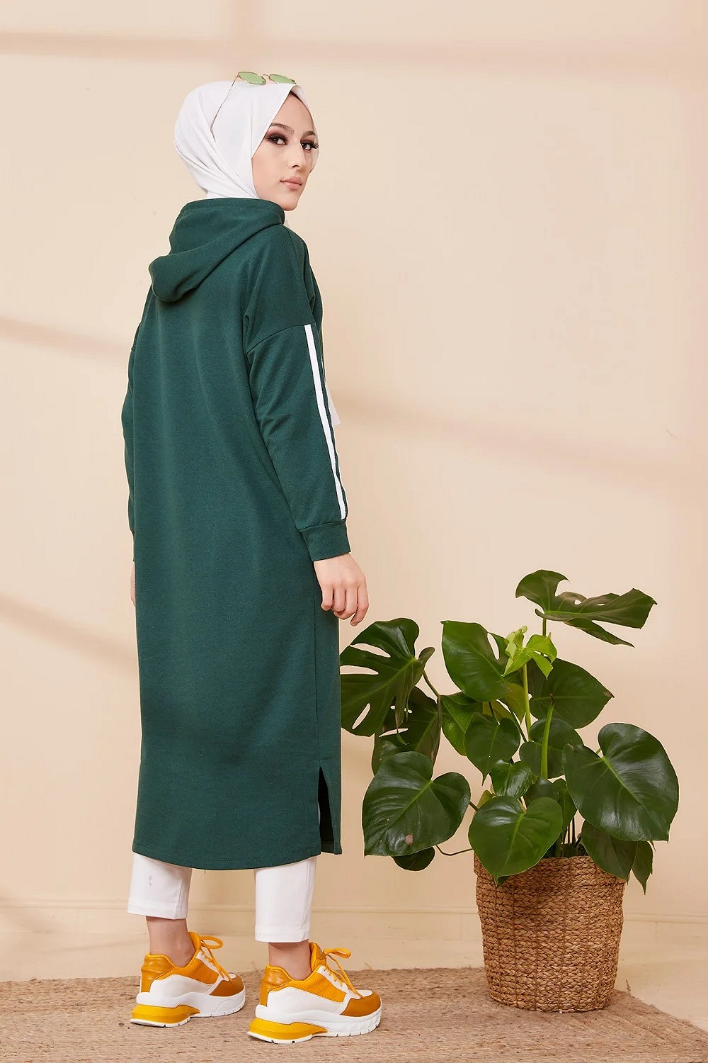 Tunique style decontracte avec capuche pour femme (Vetement hijab moderne et sport) - Couleur vert emeraude
