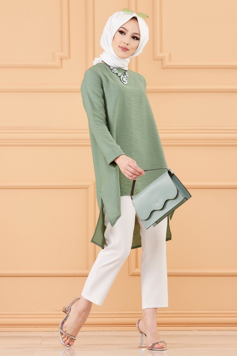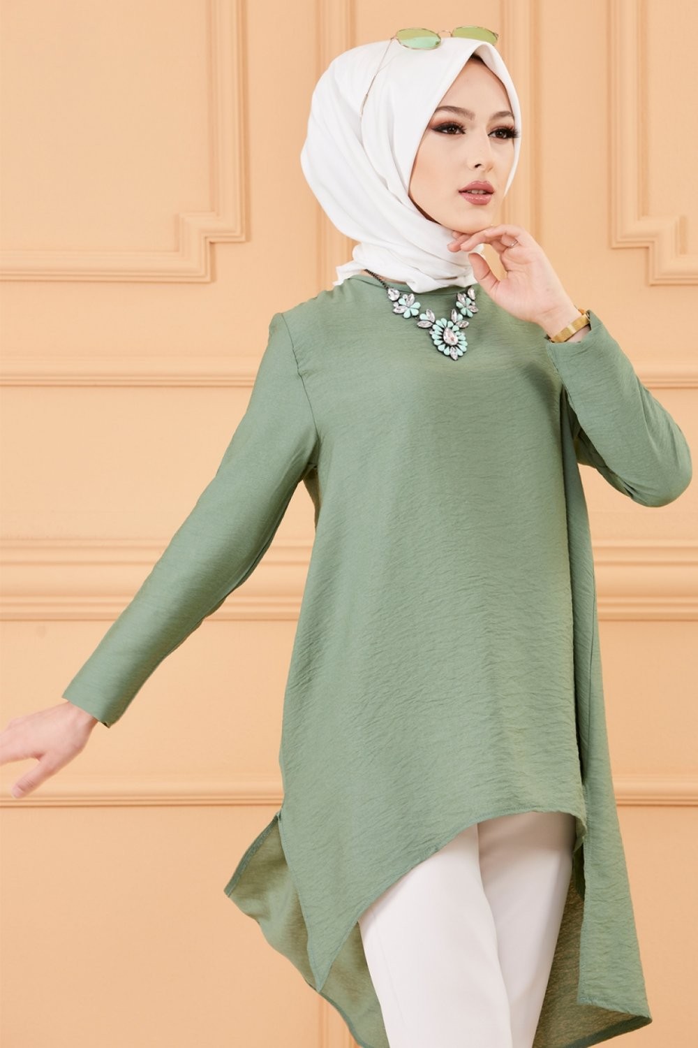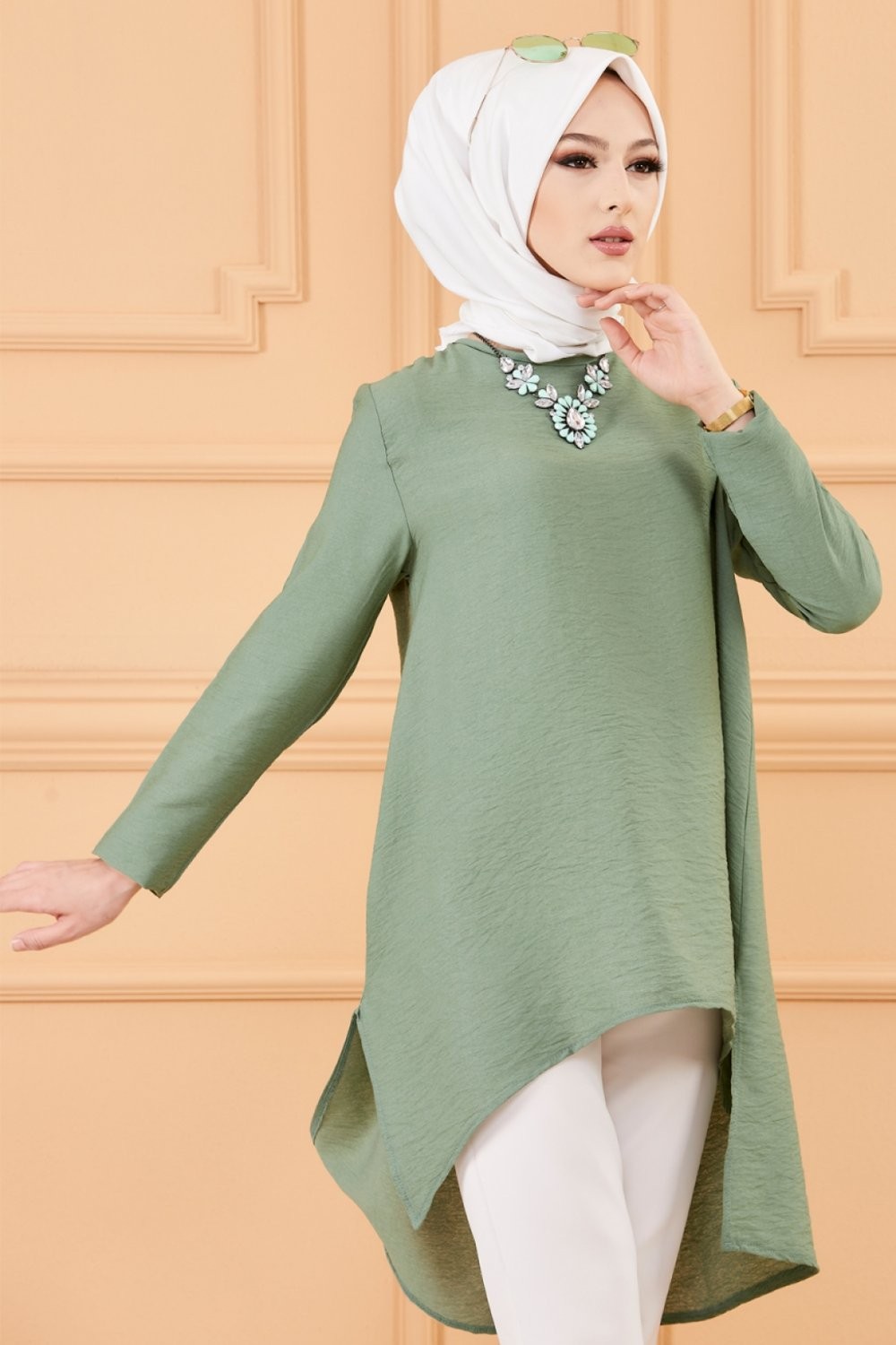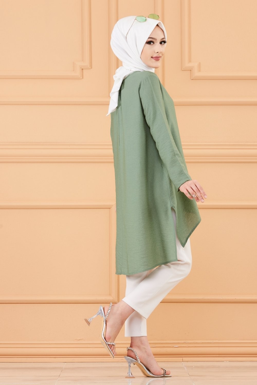 Tunique chemise habillée pour femme (Vêtements Mode Musulmane) - Couleur vert amande - REF. 36680 (26.00 €)