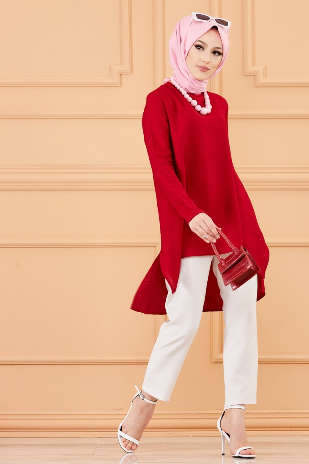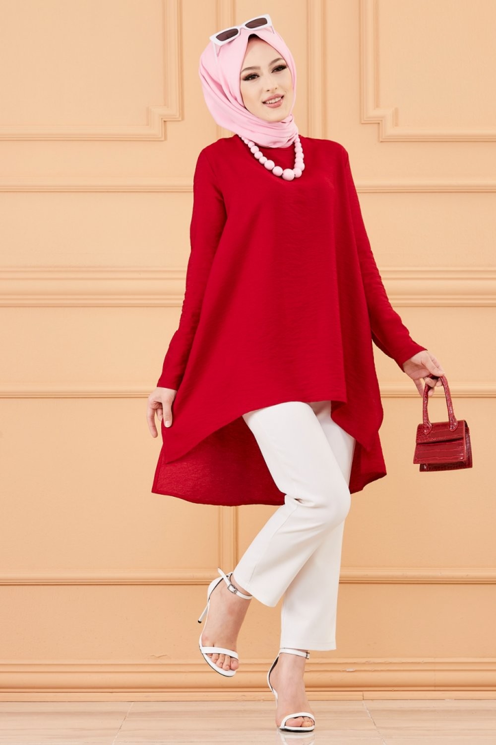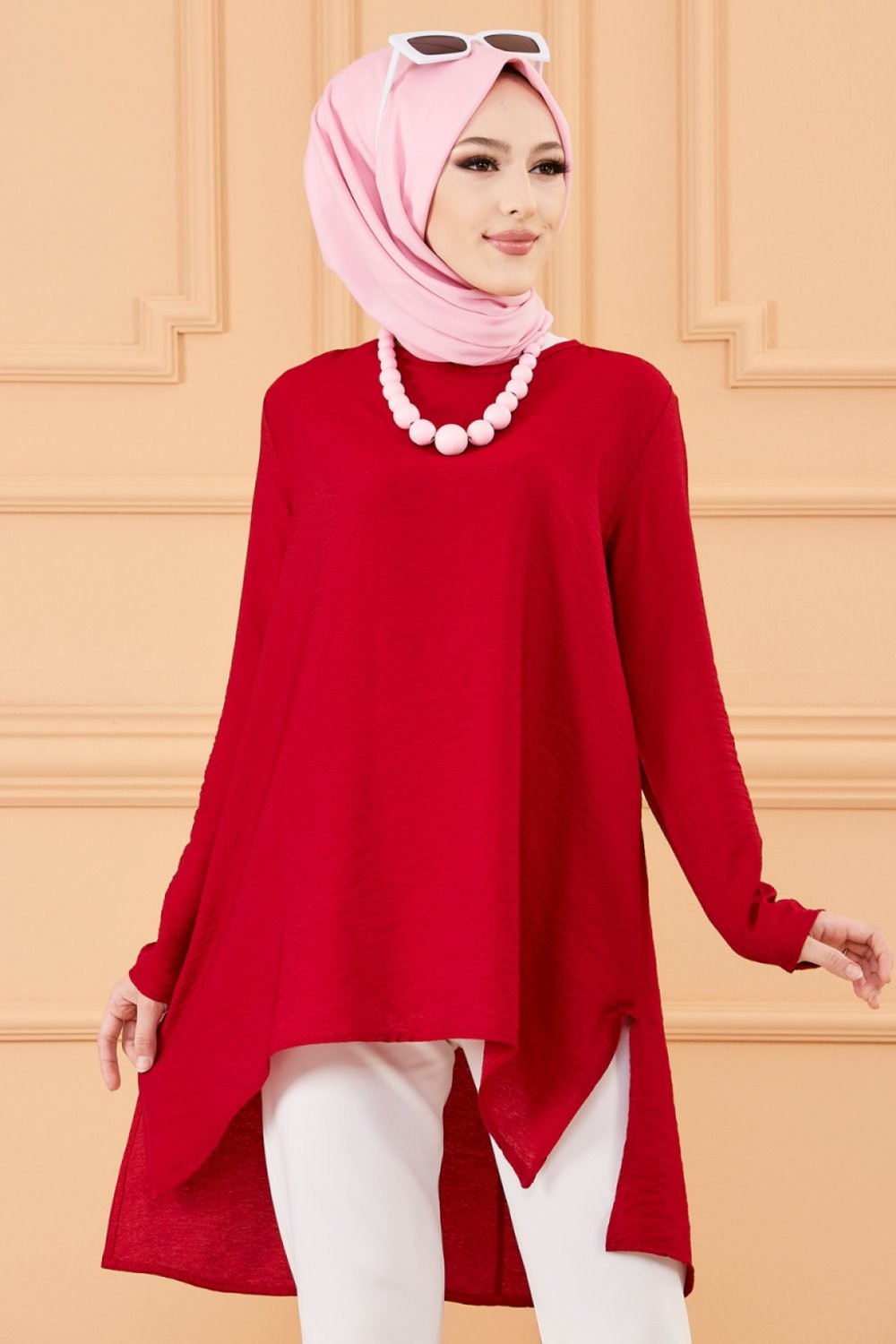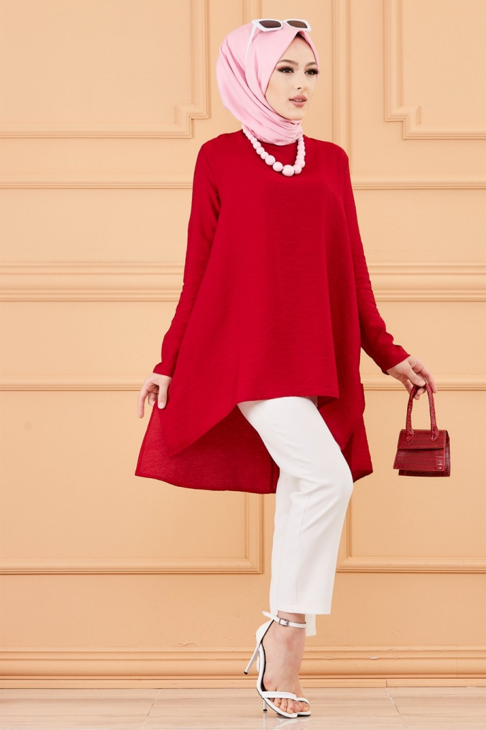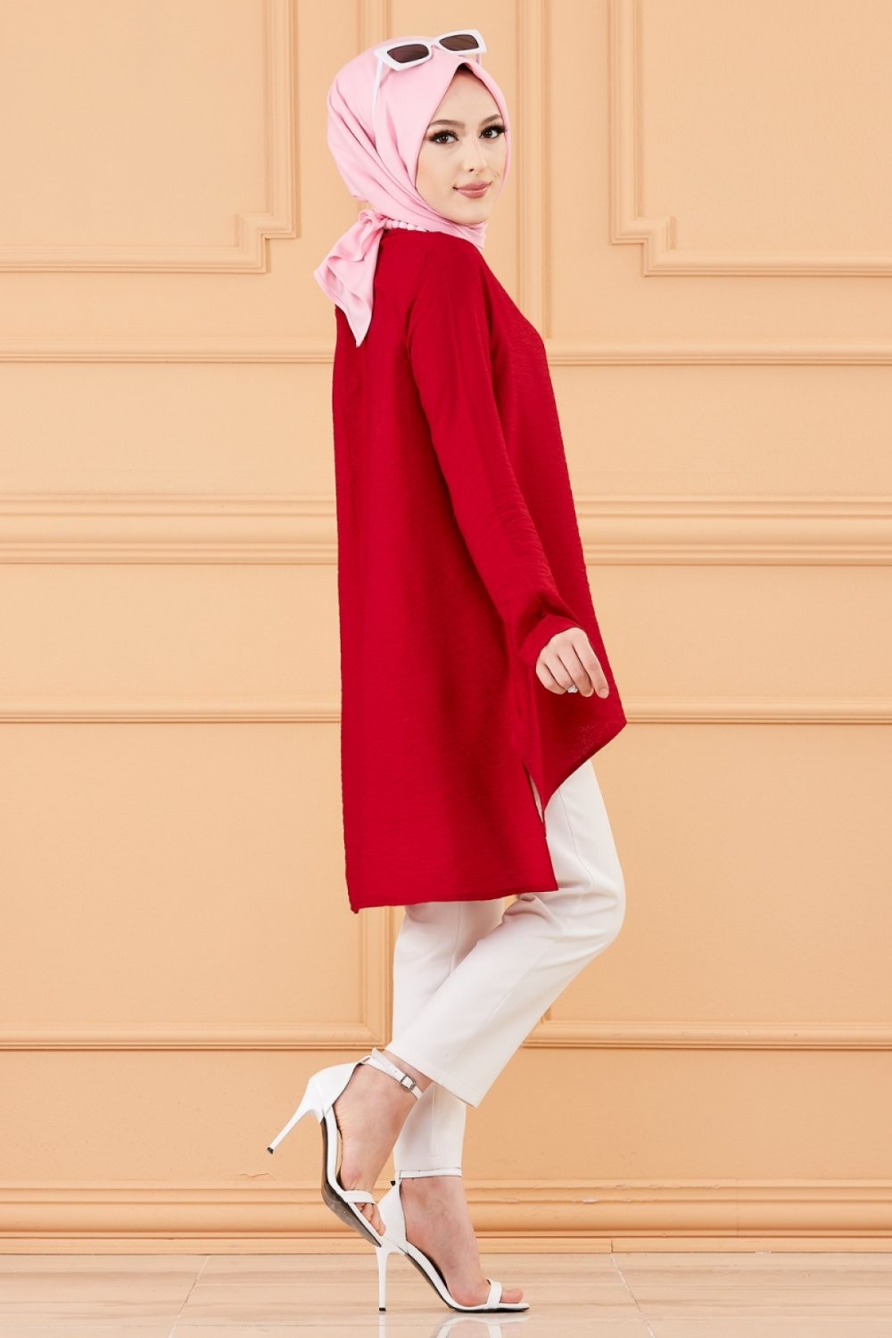Tunique ample évasée boutonnée pour femme (Nouveauté Modest Fashion) - Couleur Grenade - REF. 33820 (22.00 €)