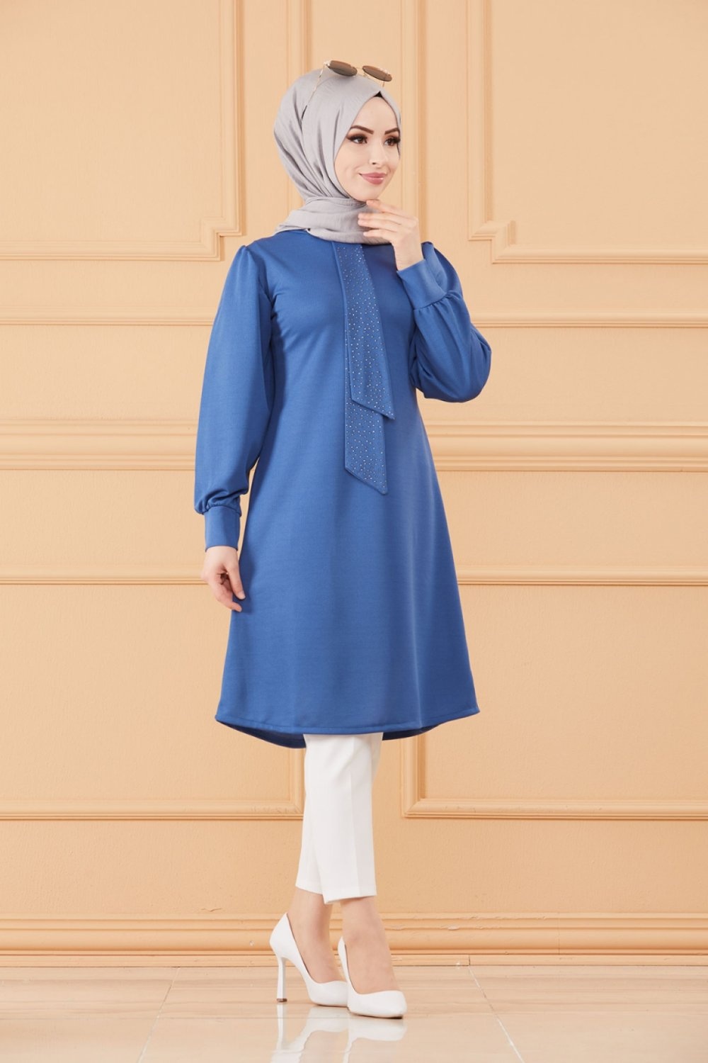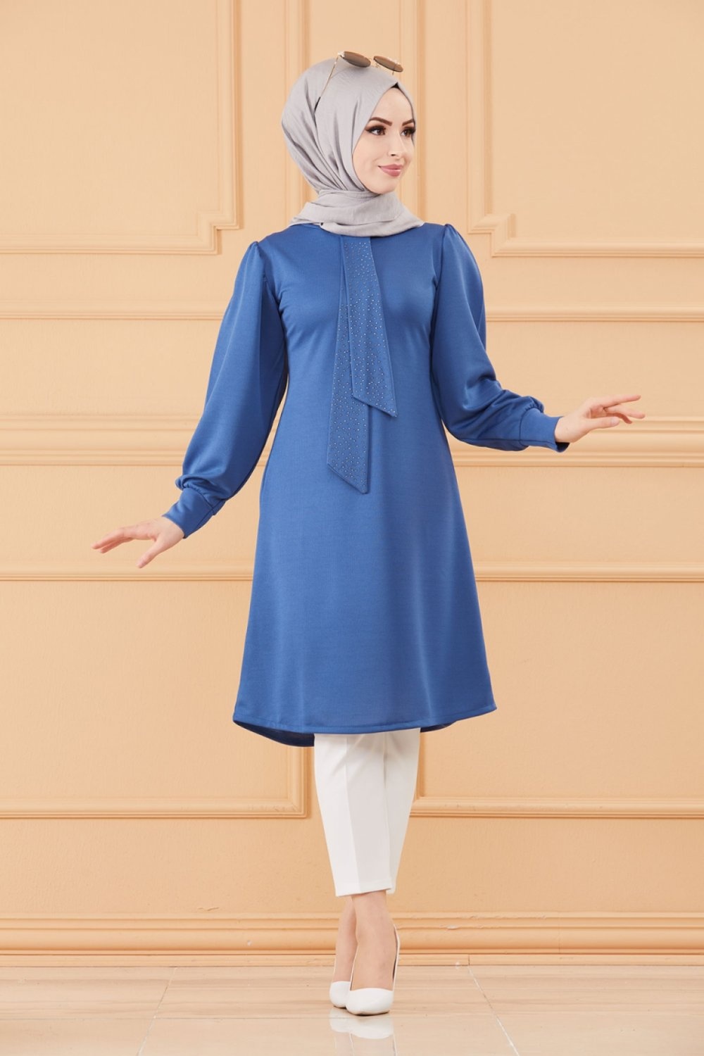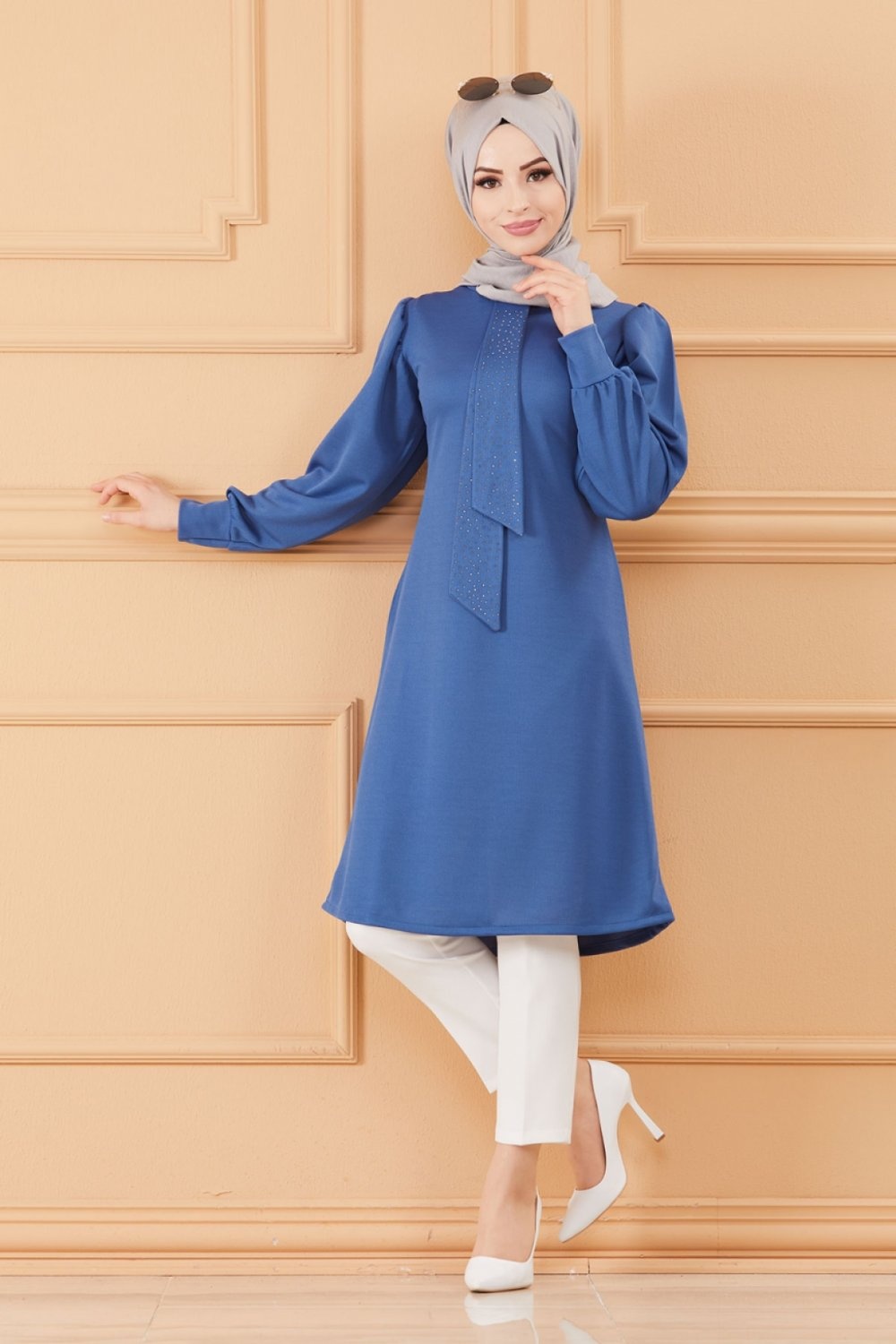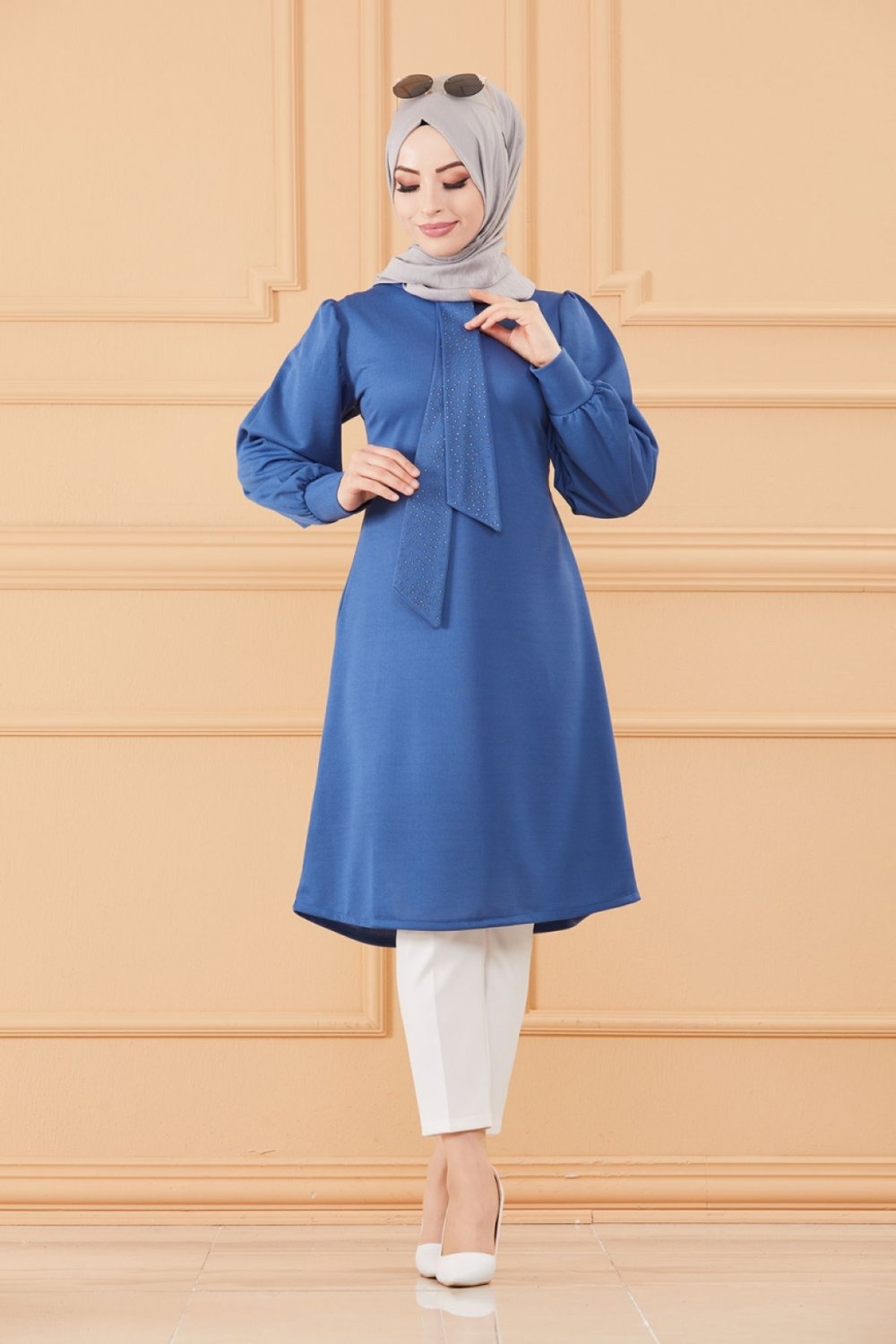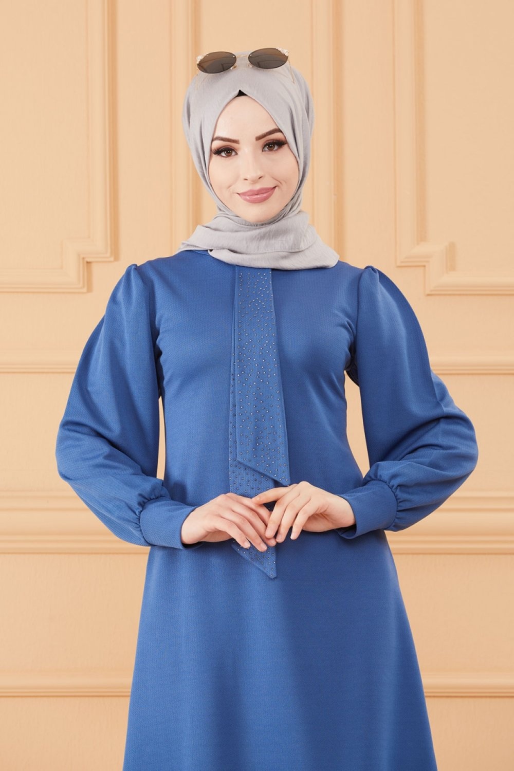 Tunique style habillé pour femme (Tenue hijab classique) - Couleur bleu indigo Vetement & Accessoire