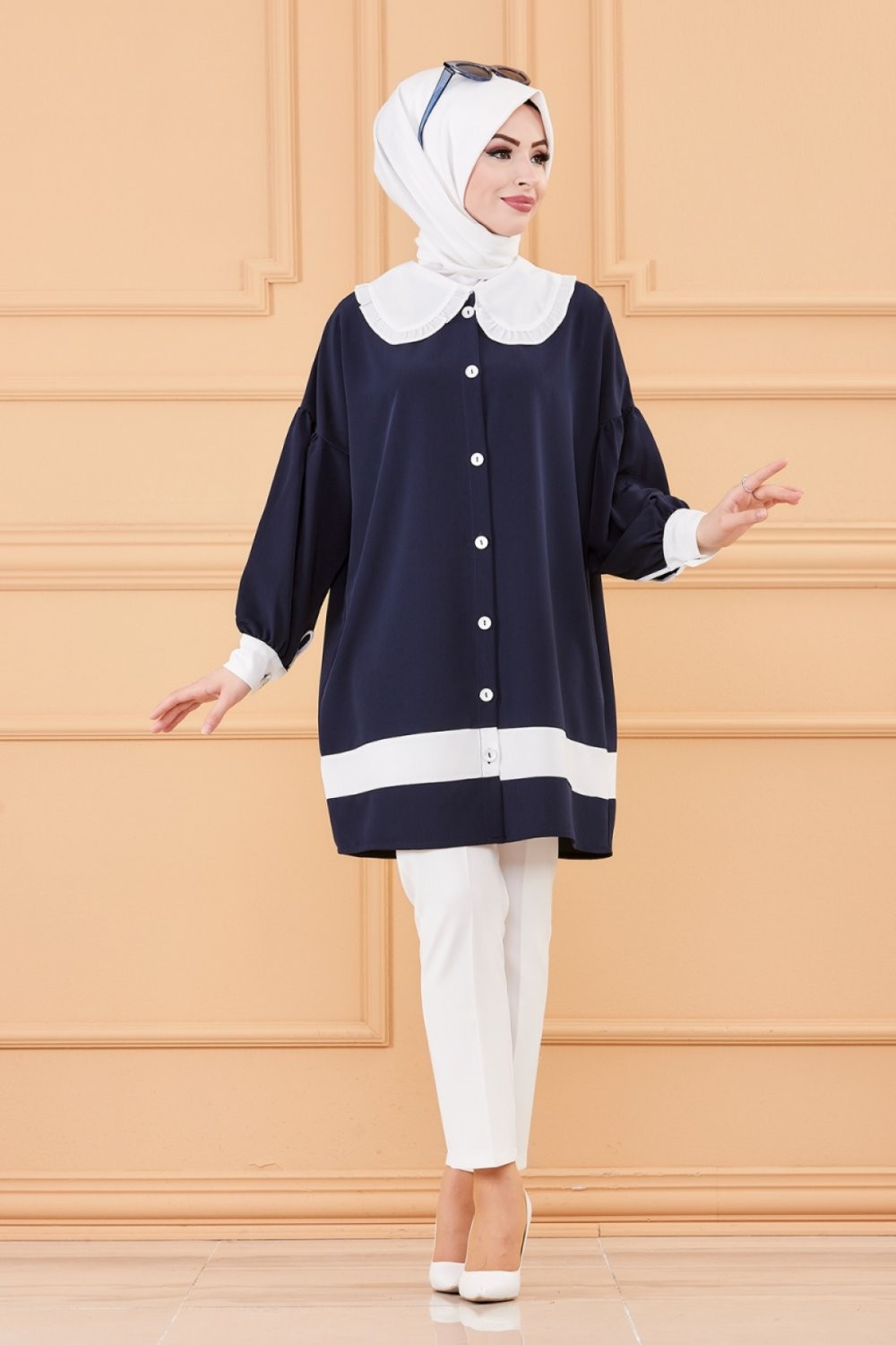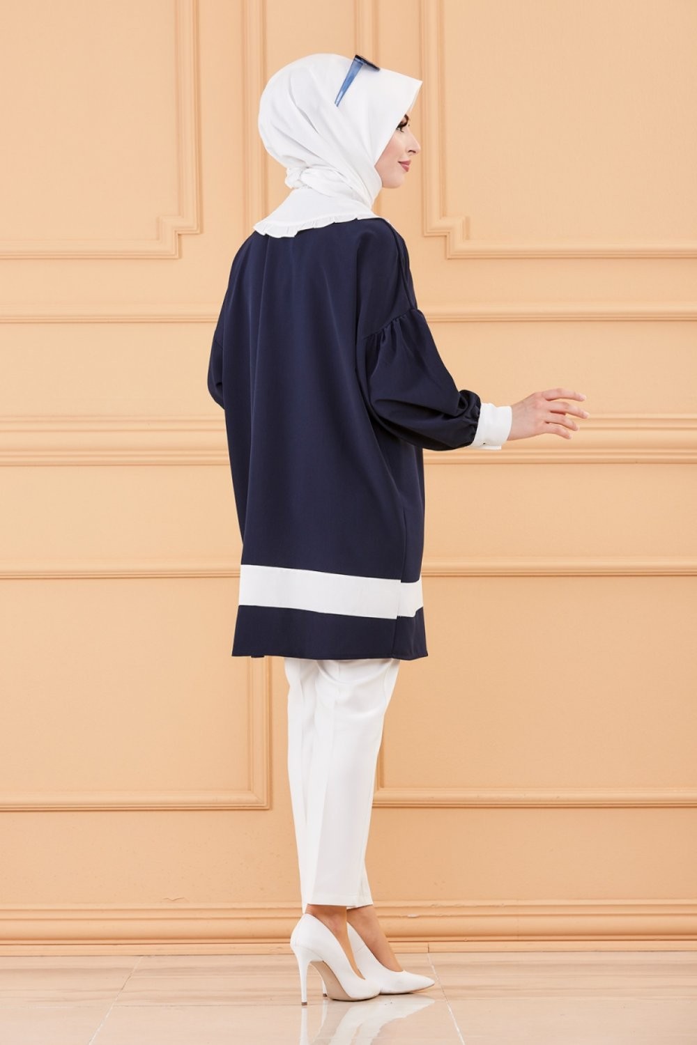 Tunique style habillé pour femme (Vêtement chic pour hijab) - Couleur bleu marine et blanc Vetement & Accessoire