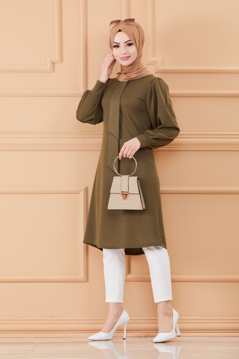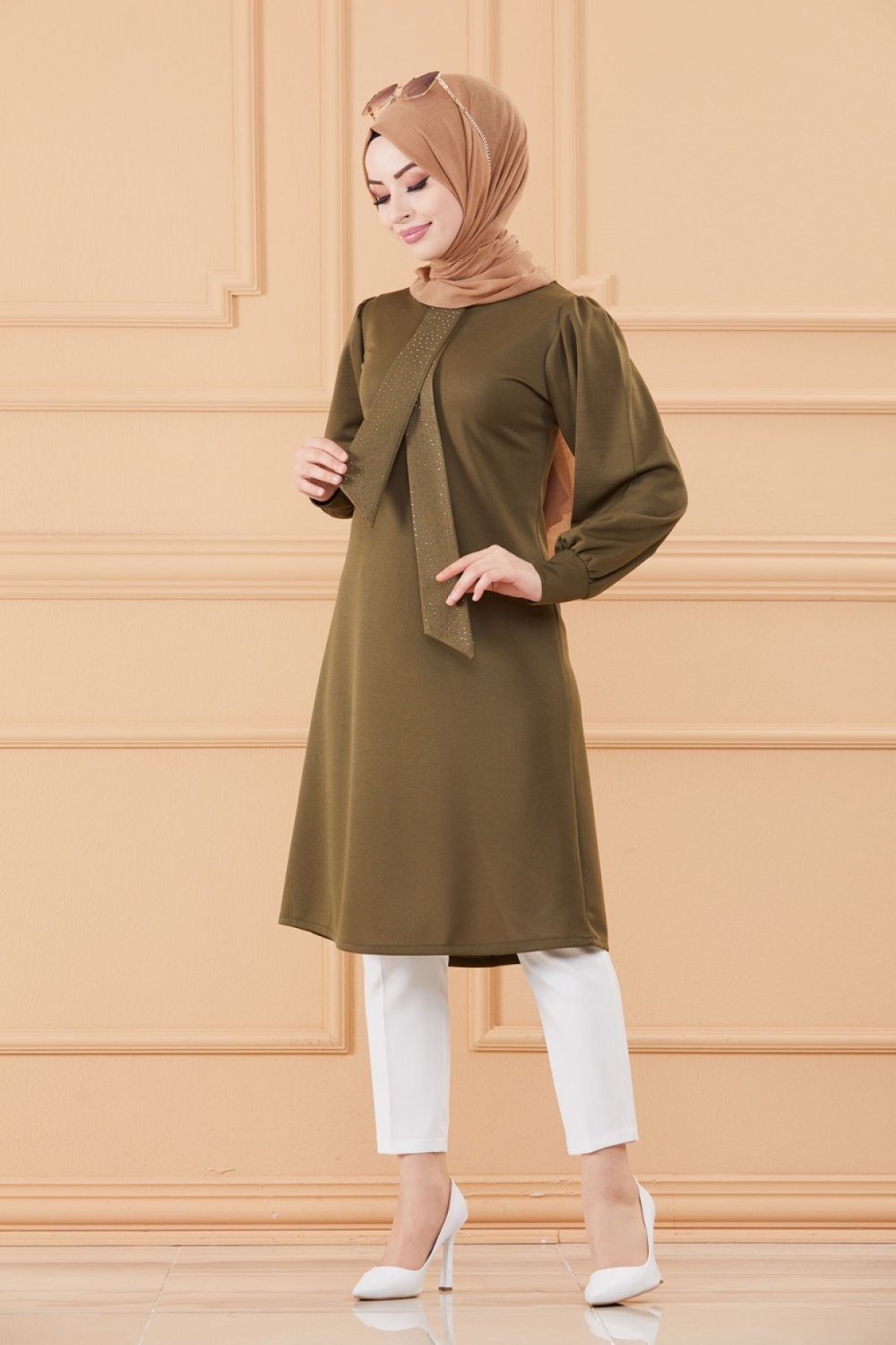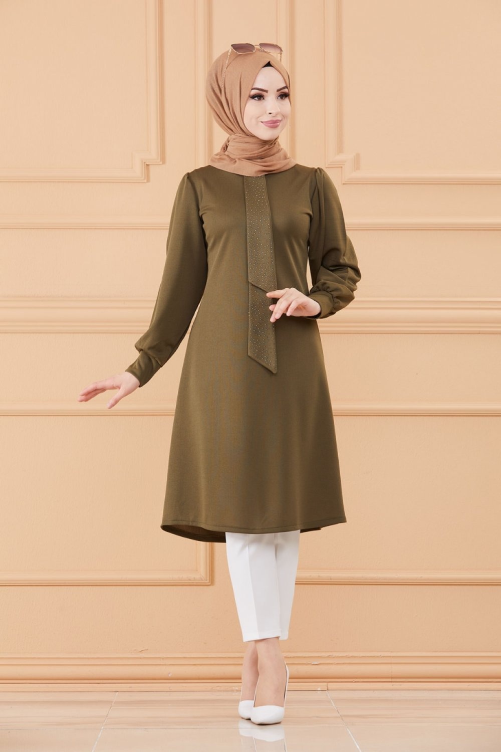 Tunique style habillé pour femme (Vêtement hijab classique) - Couleur kaki Vetement & Accessoire