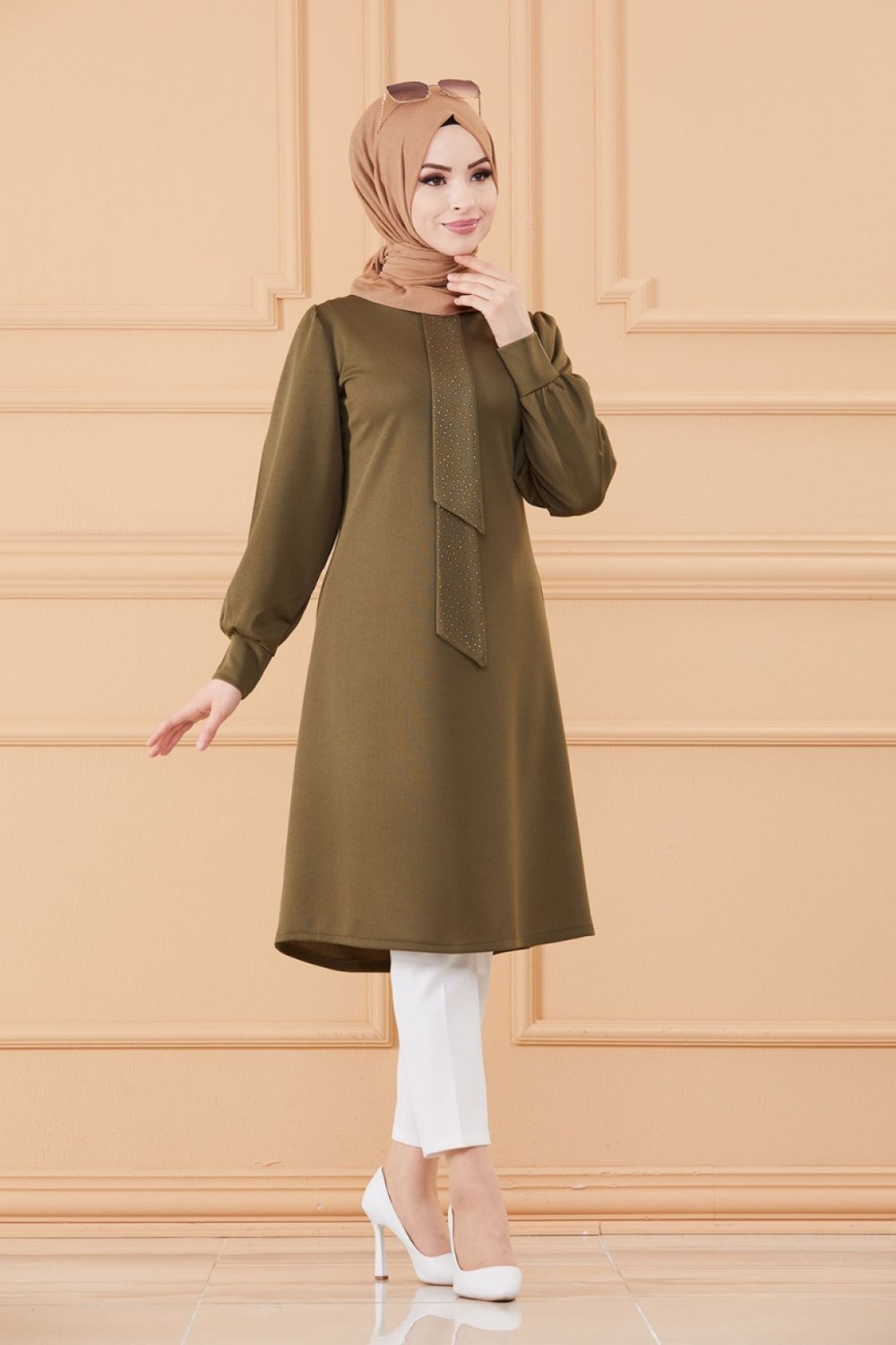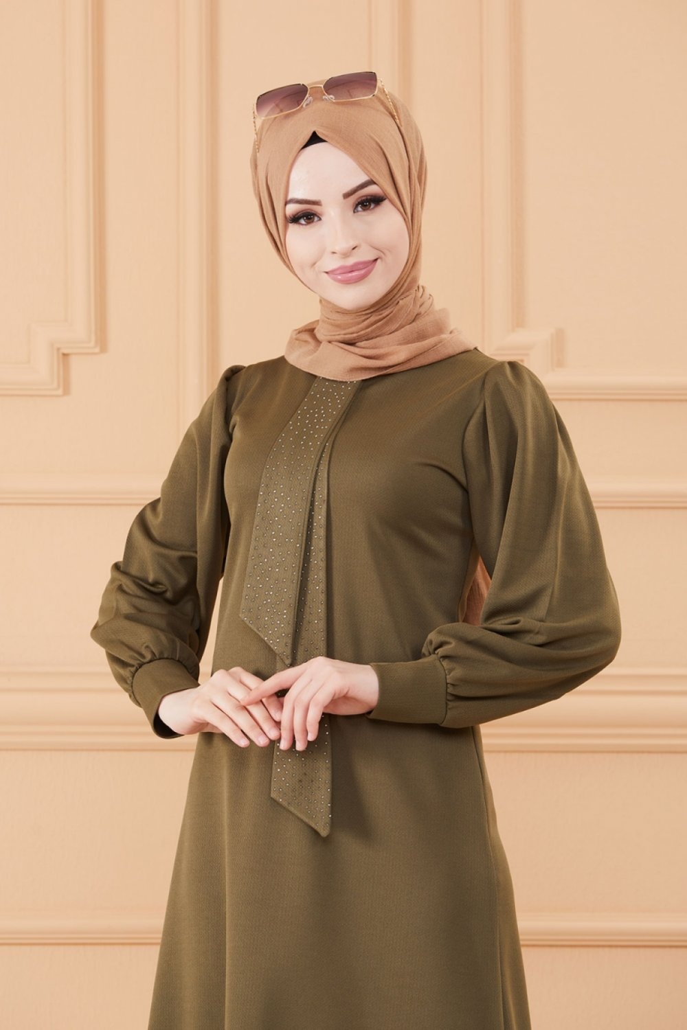 Tunique style habille pour femme (Vetement hijab classique) - Couleur kaki