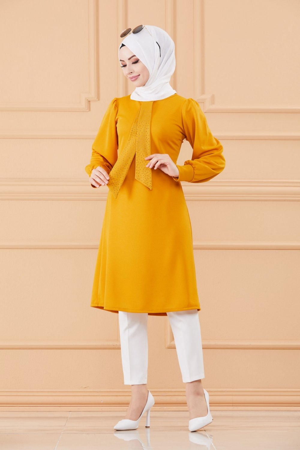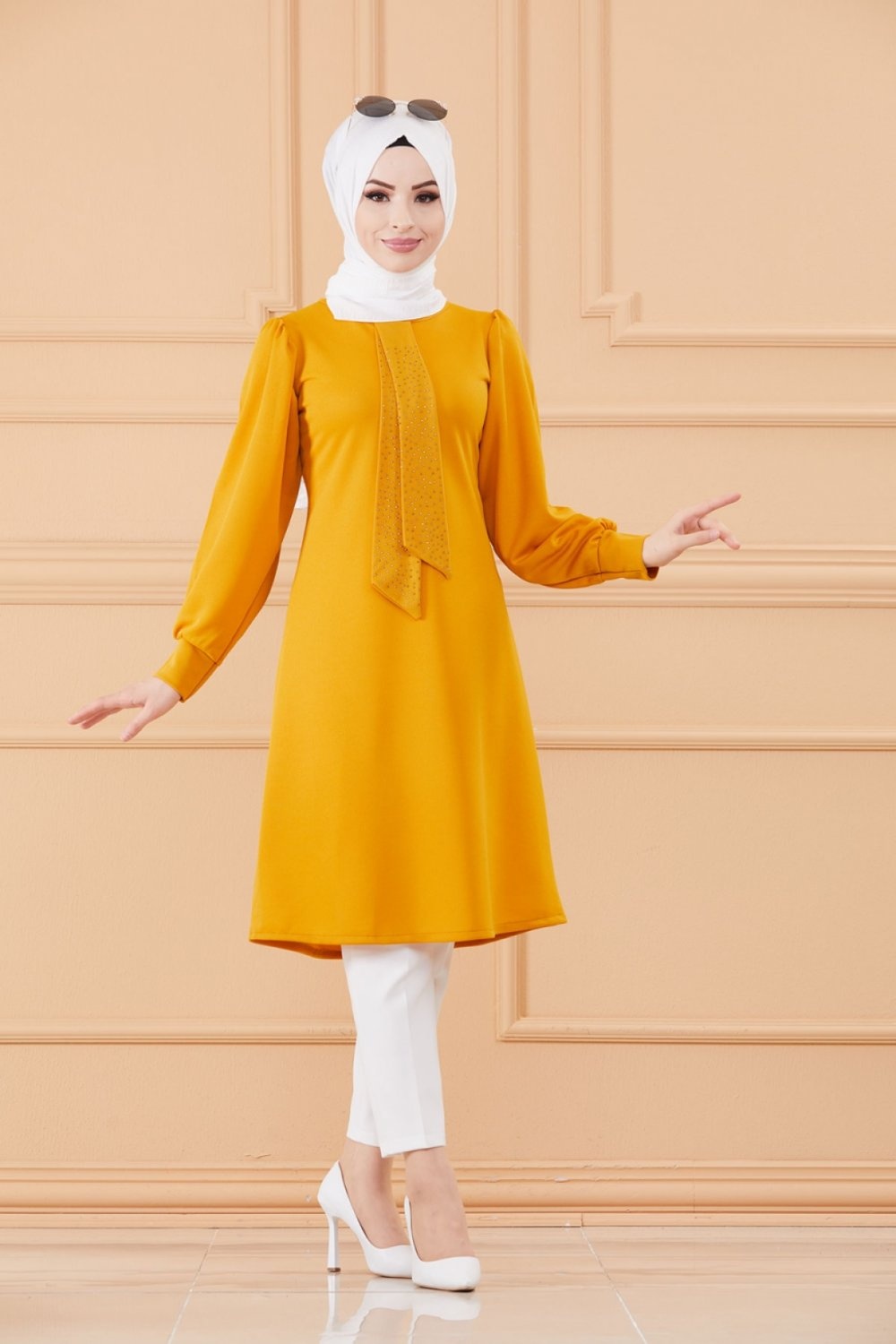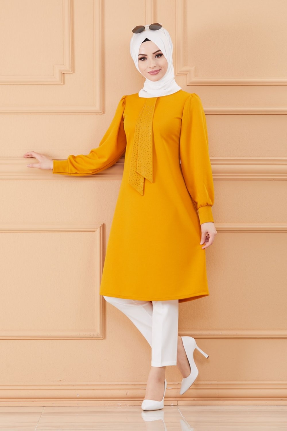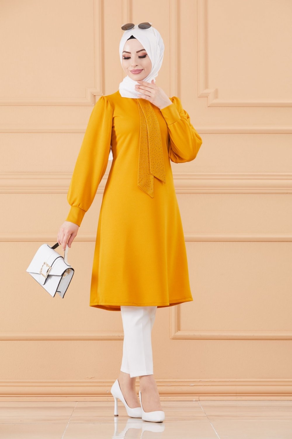 Tunique style habille pour femme (Vetement hijab classique) - Couleur moutarde