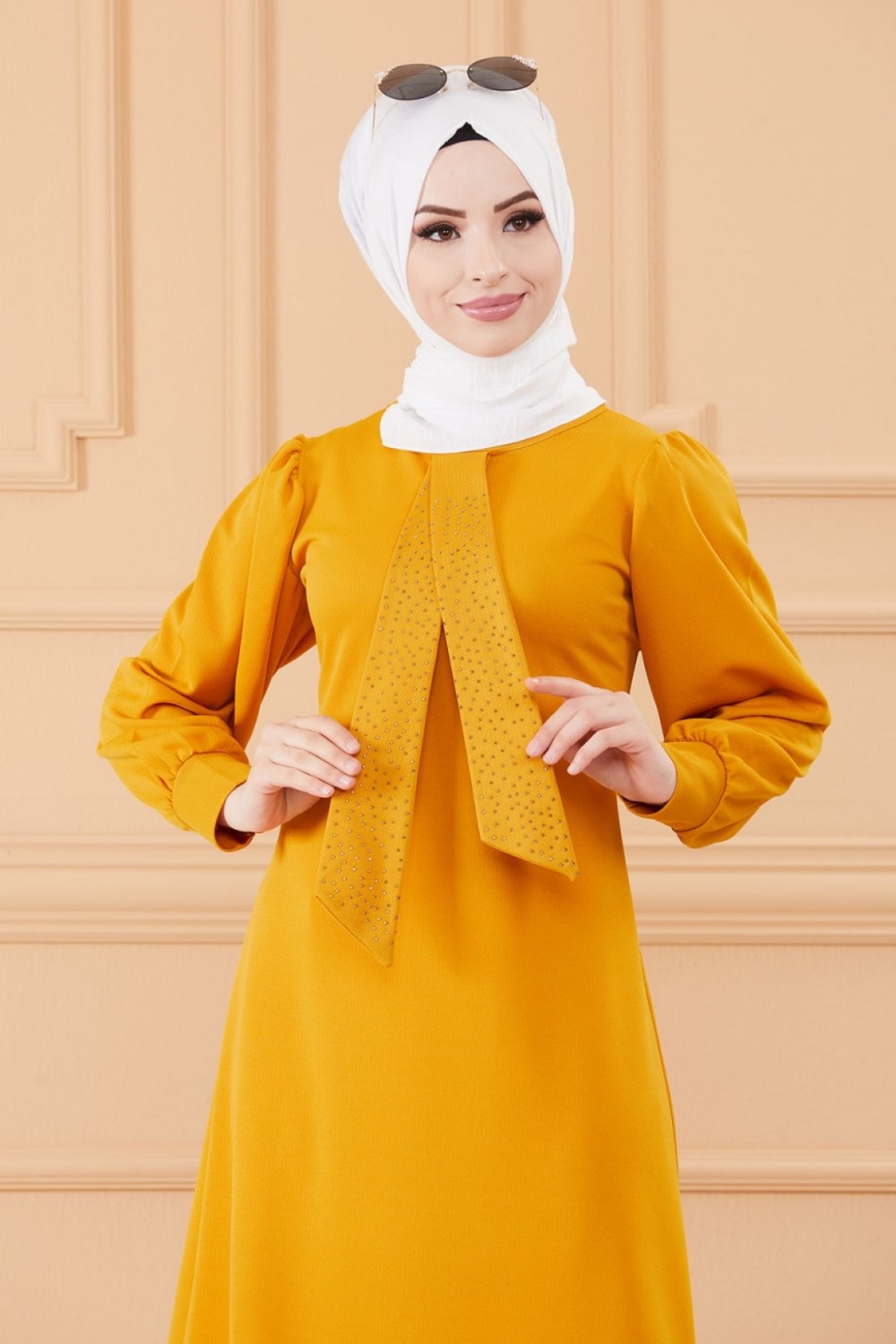 Tunique style habillé pour femme (Vêtement hijab classique) - Couleur moutarde Vetement & Accessoire