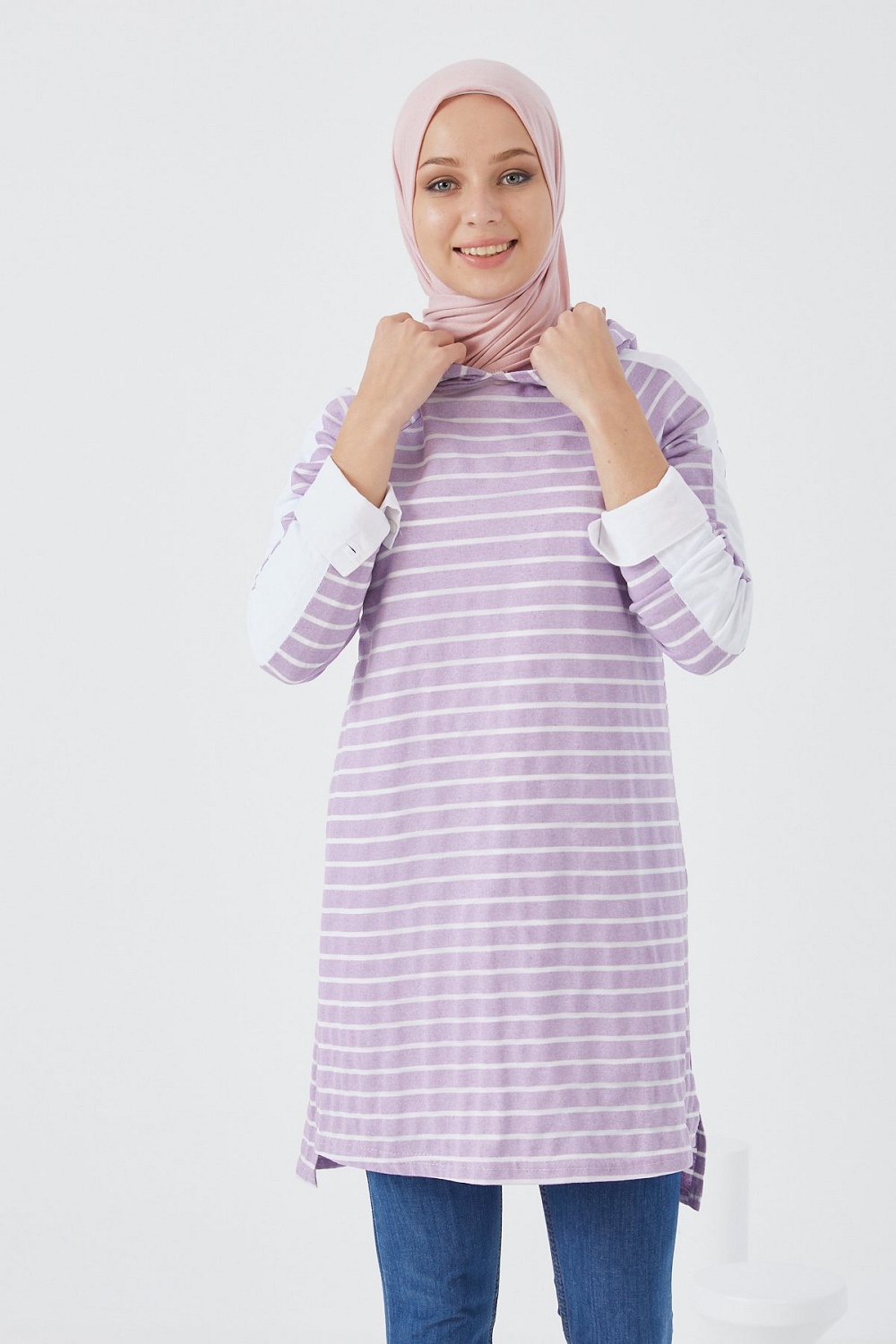 Tunique style moderne et decontracte pour femme - Rayures de couleur lilas