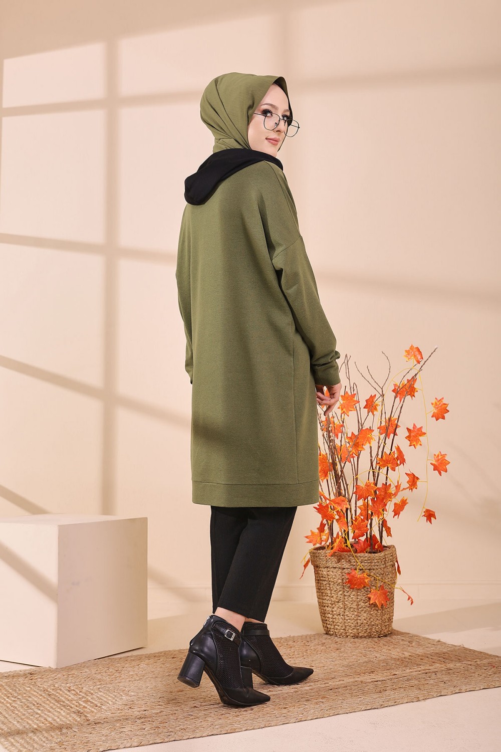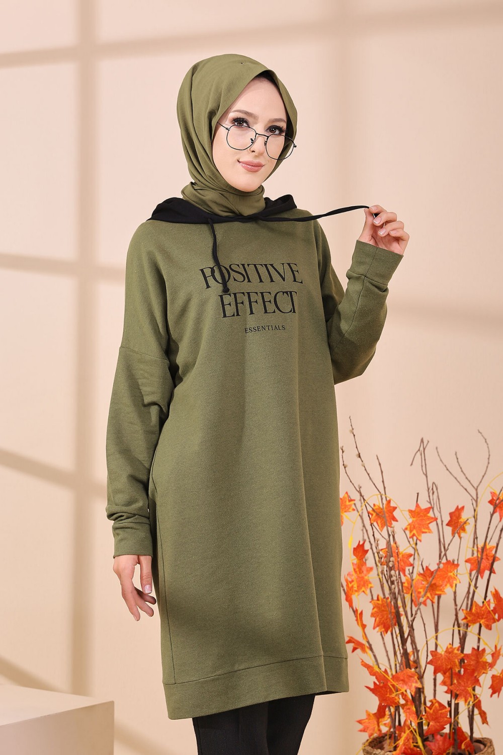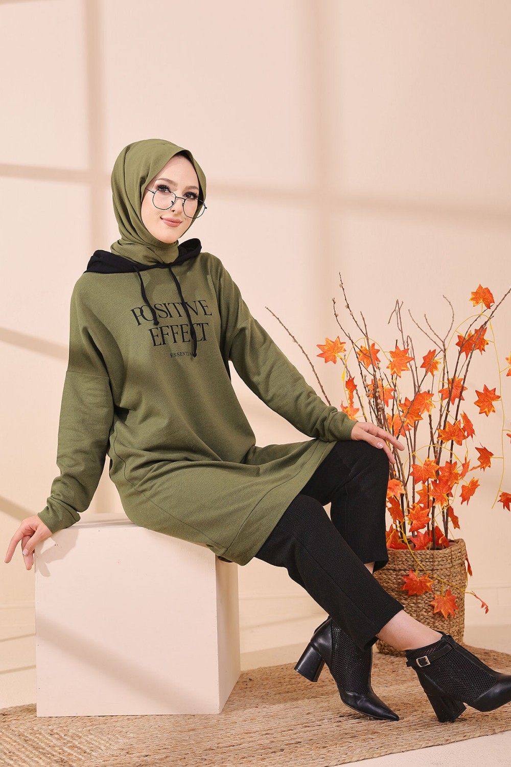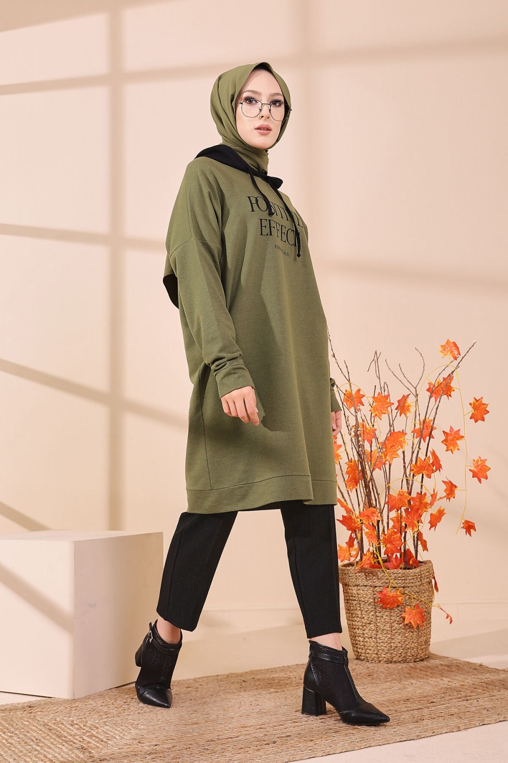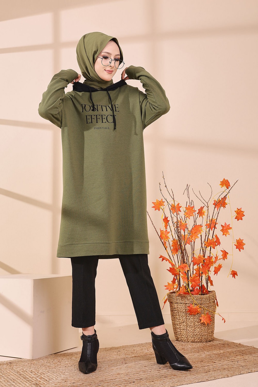 Tunique type sweat-shirt a capuche (Vetement decontracte et sport pour hijab) - Couleur kaki