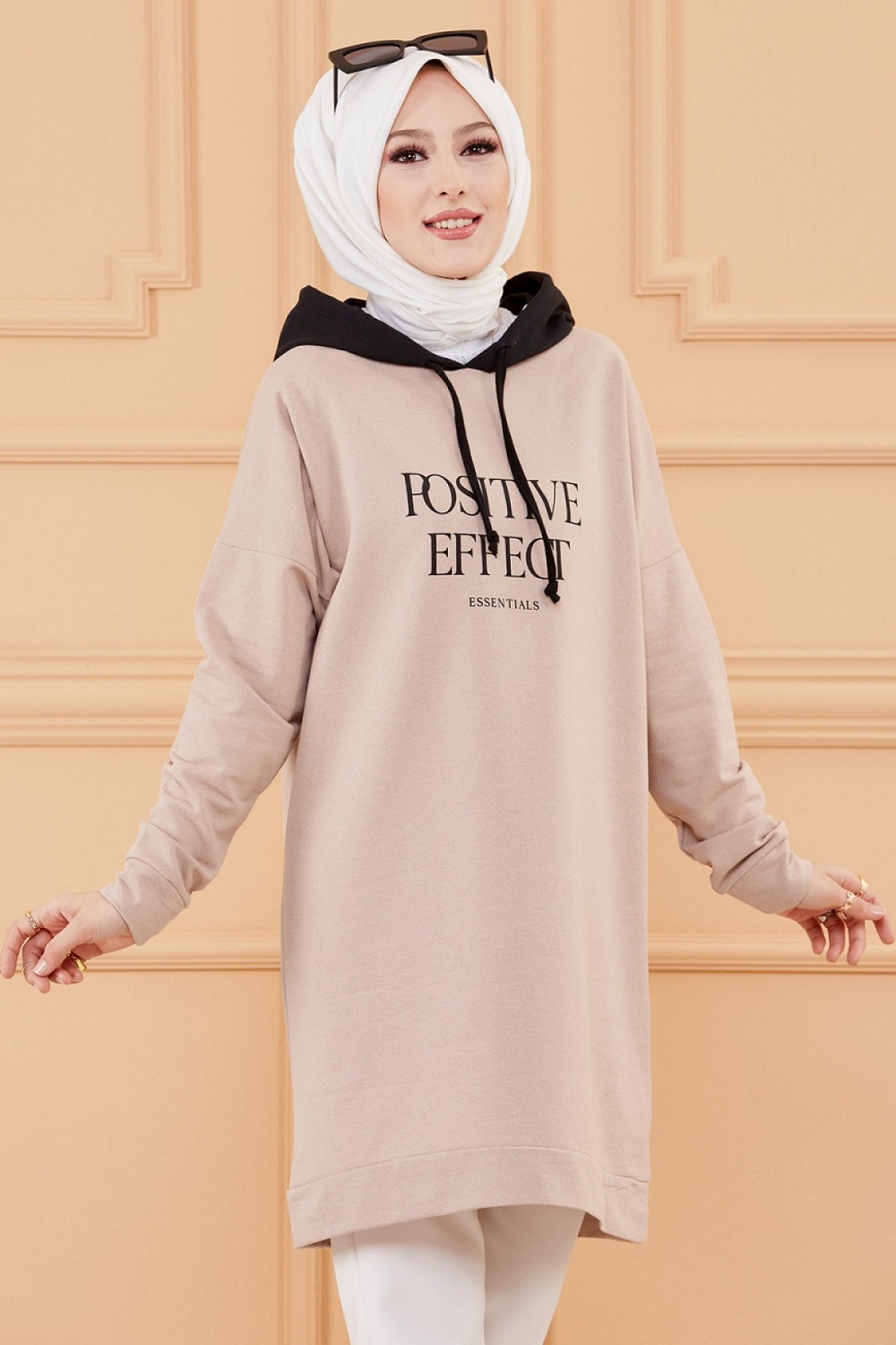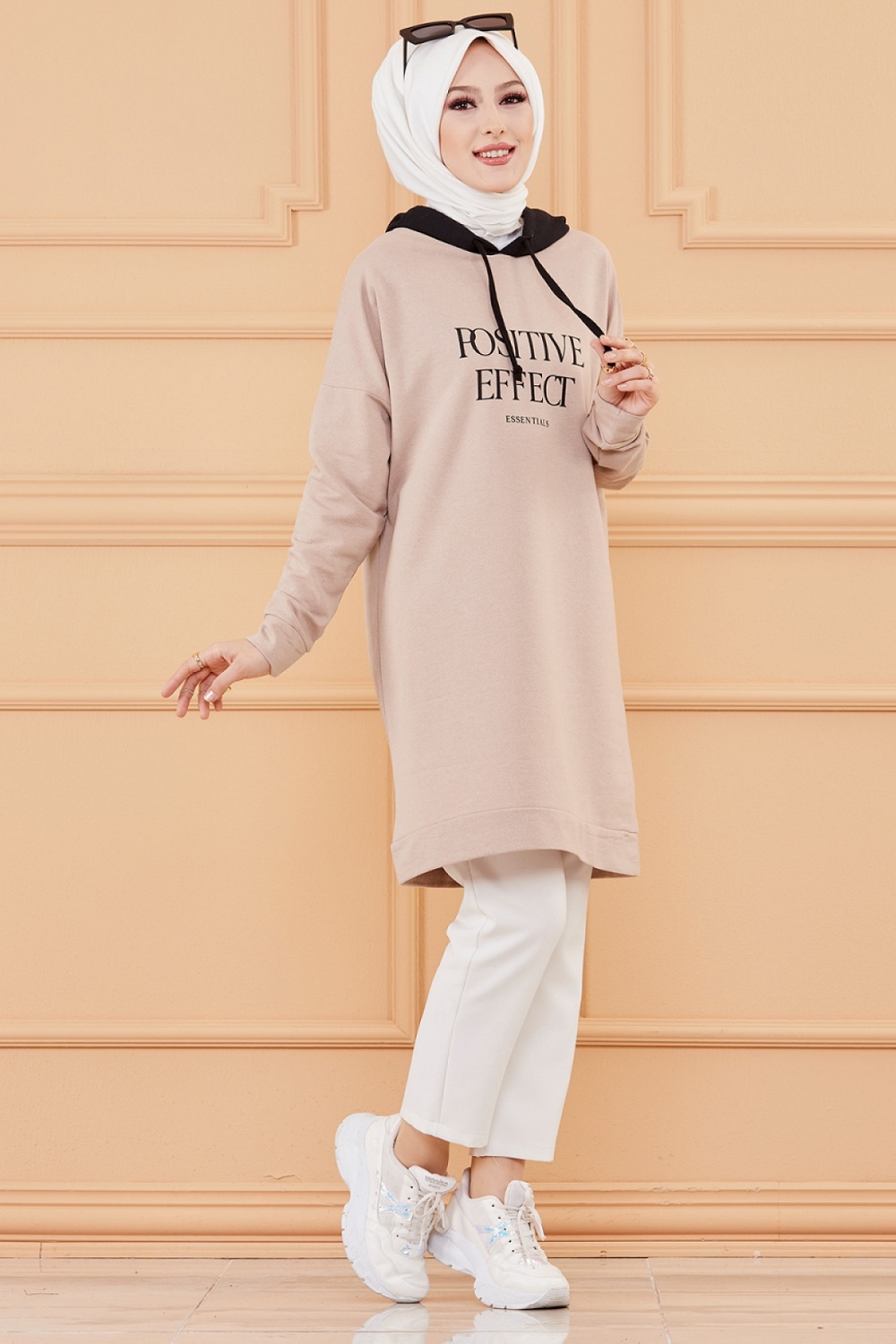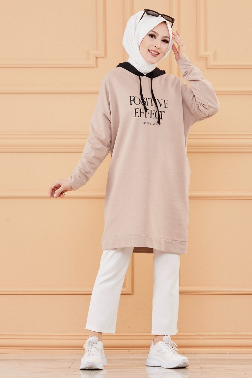 Tunique type sweat-shirt à capuche pur femme (Tenue Hijab décontracté et moderne) - Couleur beige Vetement & Accessoire