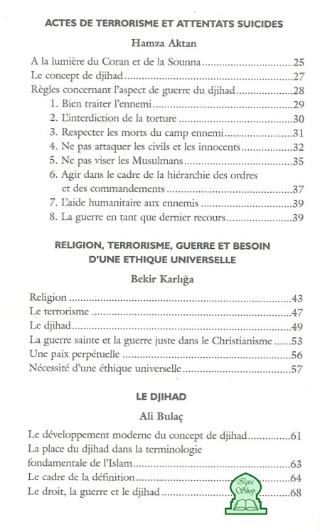 Ce livre a été écrit par différents auteurs tous aussi compétents !es uns que les autres.Il présente de façon claire et précise et à partir d'un point de vue islamique, les réfutations de la violence, du terrorisme, du meurtre, des attentats suicides et des assassinats. C'est pourquoi cet ouvrage aurait très bien pu avoir comme titre: «Perspectives sur la recherche de la paix en Islam. » Ce livre qui a été préparé en tout honneur et fierté,il n'est pas le fruit d'un réflexe de défense.Cet ouvrage a la qualité d'une offre de dialogue interreligieux et interculturel que je croyais quasiment irréalisable en Allemagne.