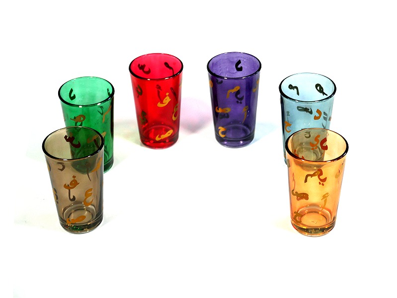 Verres à thé KHLALA colorés et ornés de motifs traditionnels dorés (Pack de 6 verres) - REF. 16005 (20.00 €)