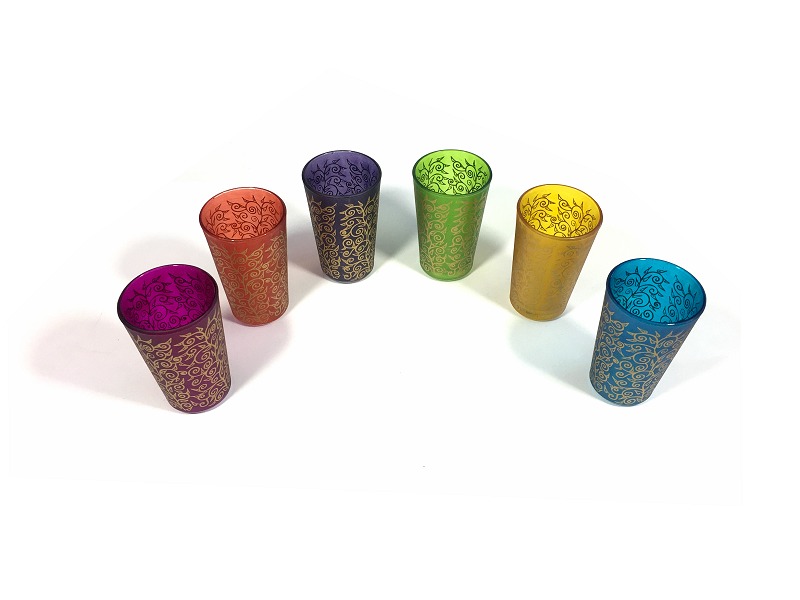 Verres a the marocain colores et ornes de motifs traditionnels dores (Pack de 6 verres)
