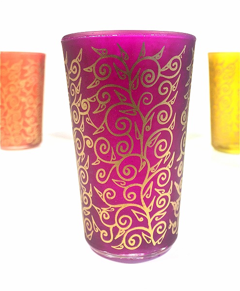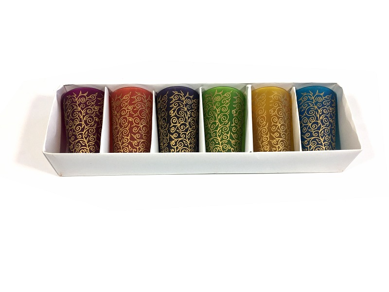Verres à thé CRISTAUX colorés et ornés de motifs traditionnels dorés (Pack de 6 verres) - REF. 16006 (20.00 €)